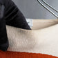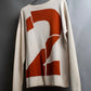 全体にあしらわれたオフホワイトのベースカラーが、ナチュラルな印象を生みつつ、深みのあるオレンジのグラフィックが洗練されたアクセントとなり、単なるプリントではなく、インターシャ編みで表現されている為、奥行きを感じさせる仕上がりとなっています。