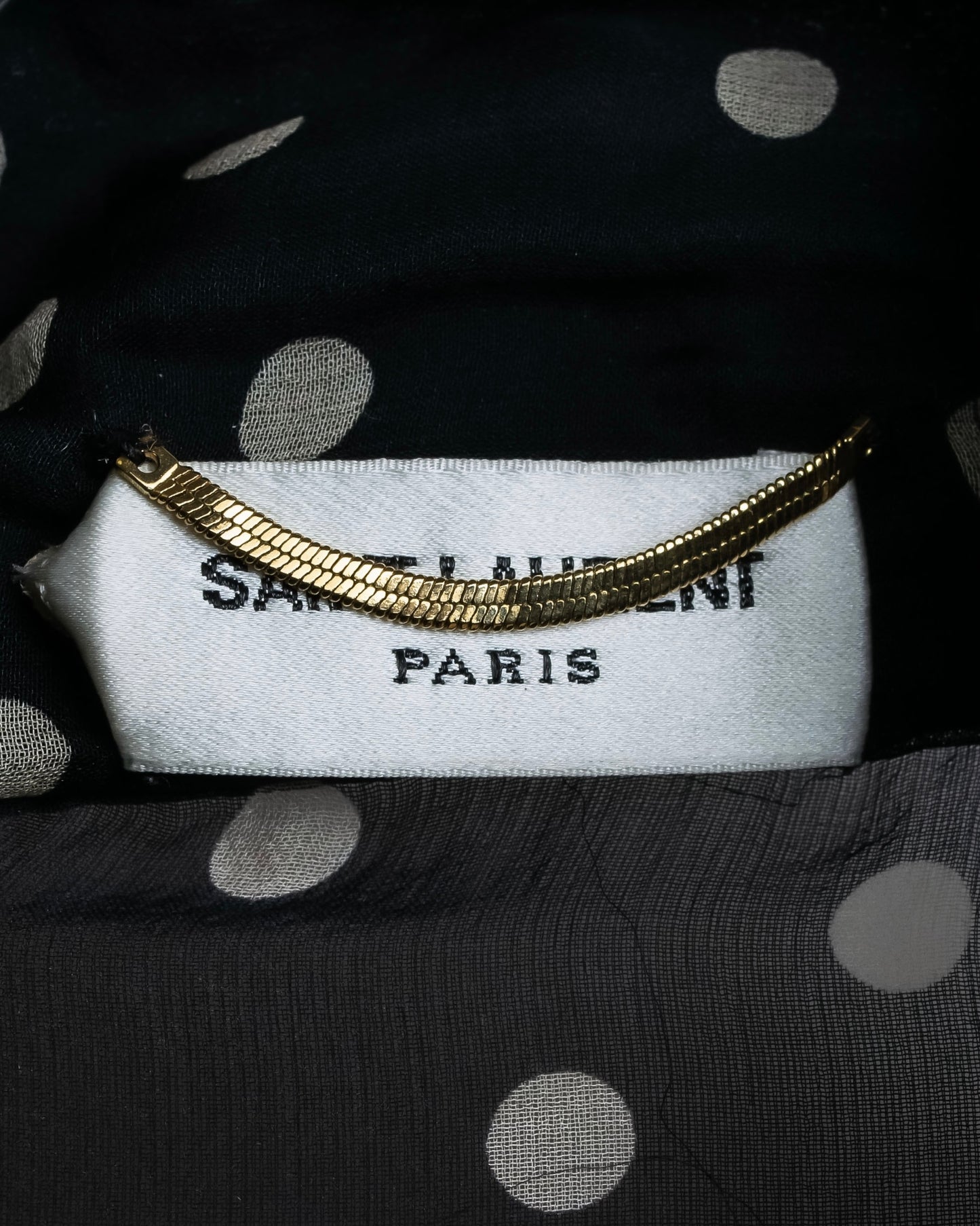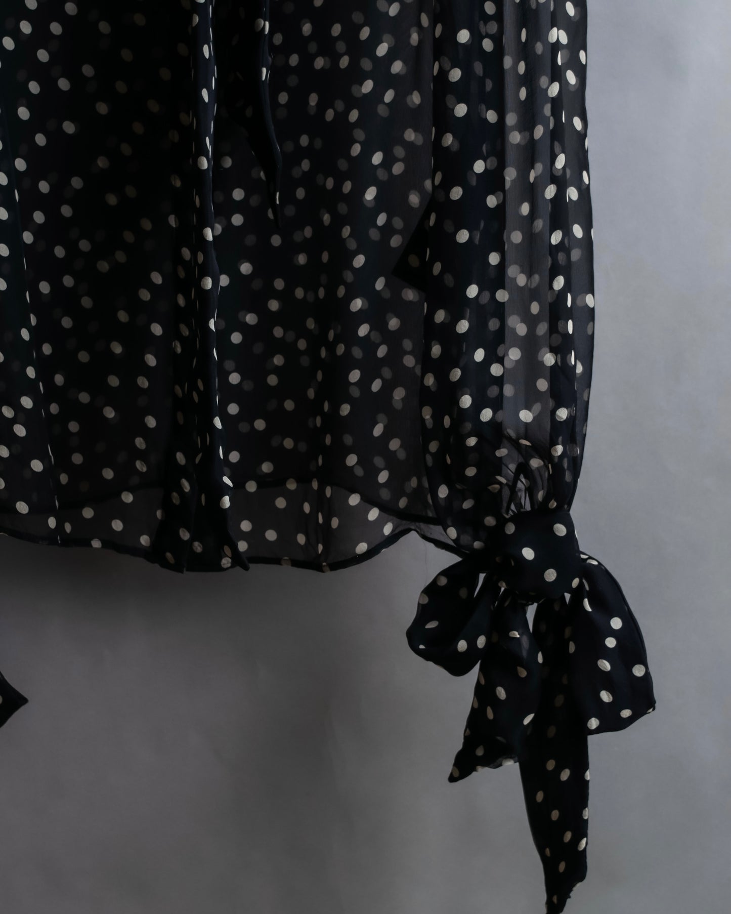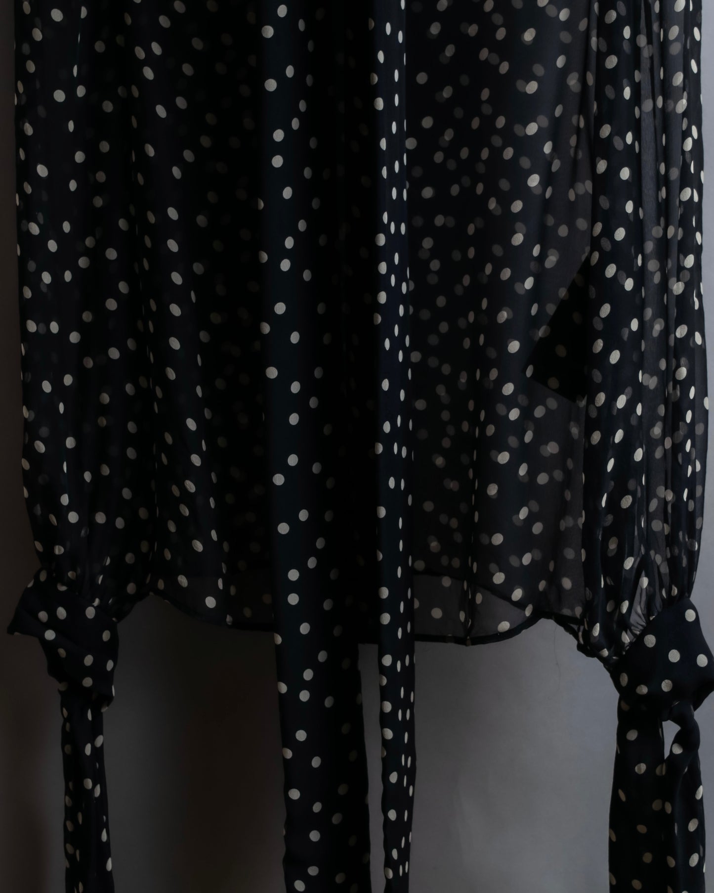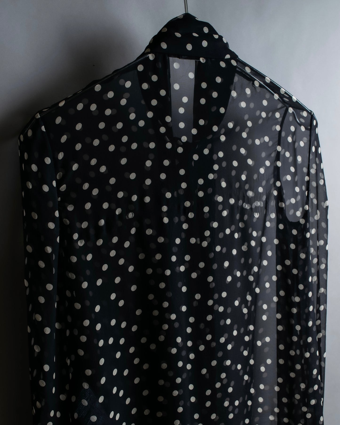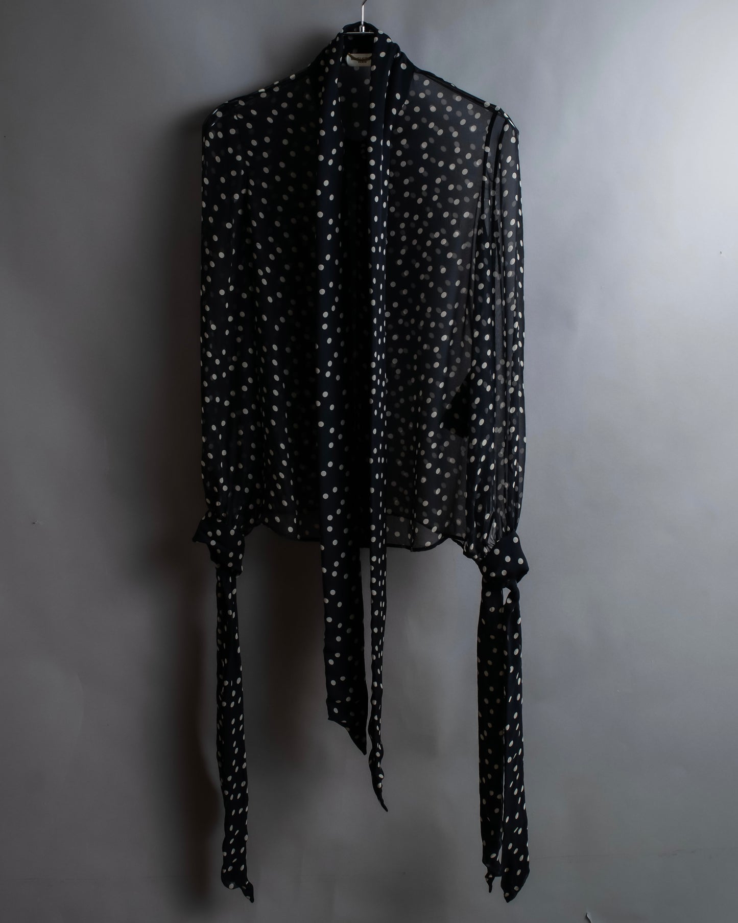 "Saint Laurent Paris 2020" Ribbon detail polka dot pattern sheer shirt