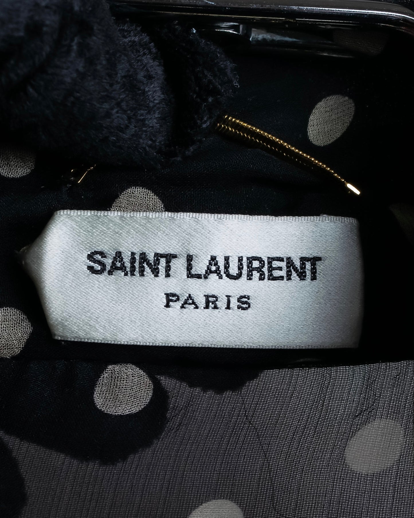 ベースはシックなブラックを使用し、ホワイトのポルカドット柄が全体に施されているクラシックなパターンにより、サンローランらしいエレガントさと遊び心を兼ね備えており、時代を問わず愛される逸品に仕上がっております。