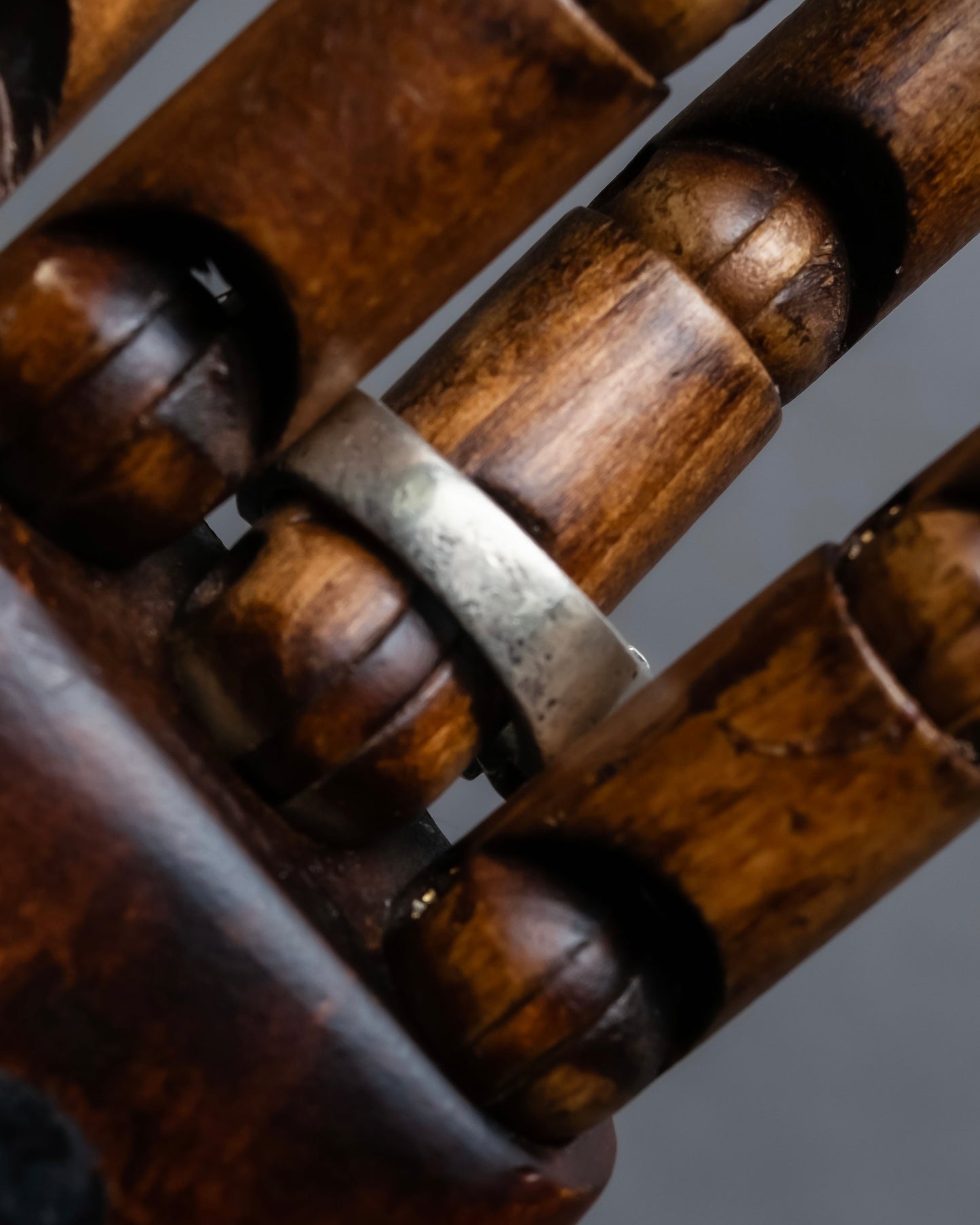 やや燻しのかかったシルバーの質感は、年月と共に育つ風合いも魅力のひとつとなっており、角度によって微妙に光を帯びる表情が、スタイリングに奥行きを加えてくれます。