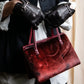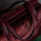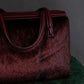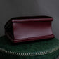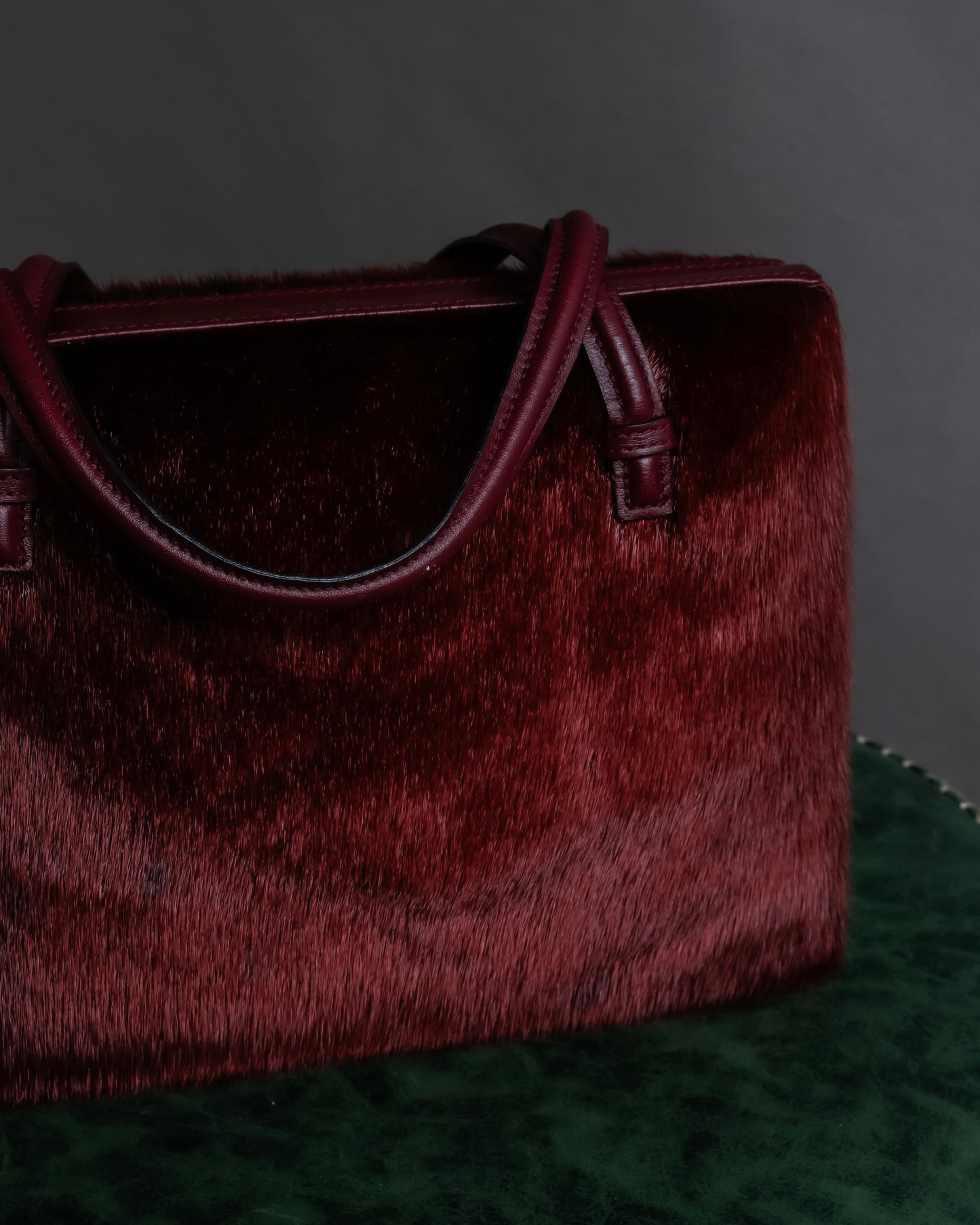 艶やかなバーガンディのヘアカーフを贅沢に使用し、クラシックなフォルムの中に色気と重厚さを内包した佇まいが印象的なこちらの逸品。
