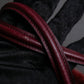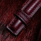 しっとりとした光沢を纏う毛並みは、見る角度や光の入り方によって陰影を変えながら、まるで織物のような立体感を演出し、そこに合わせられた深紅のレザーは、角や持ち手にかけて美しく縁取ることで、陰影の流れに品格を添えています。