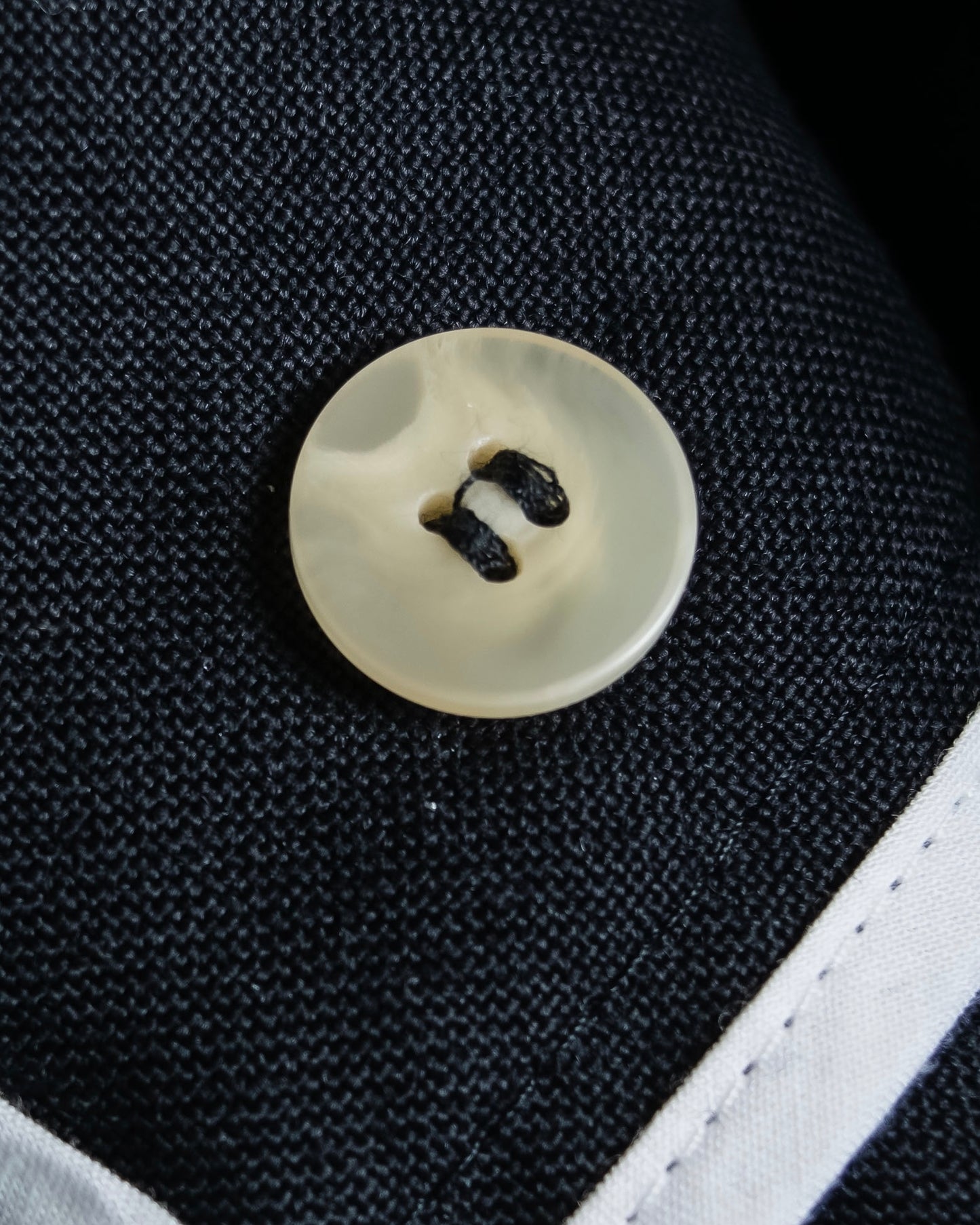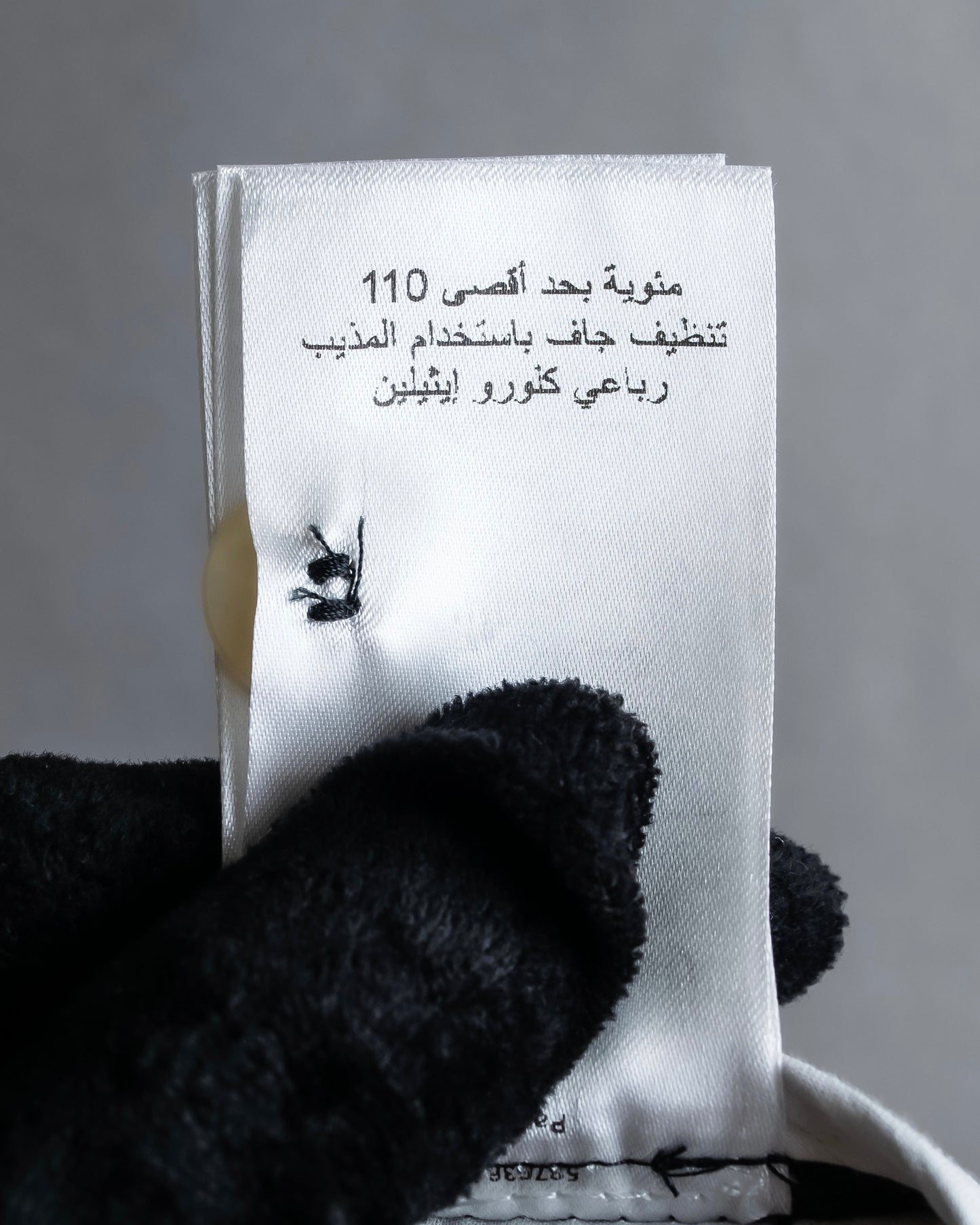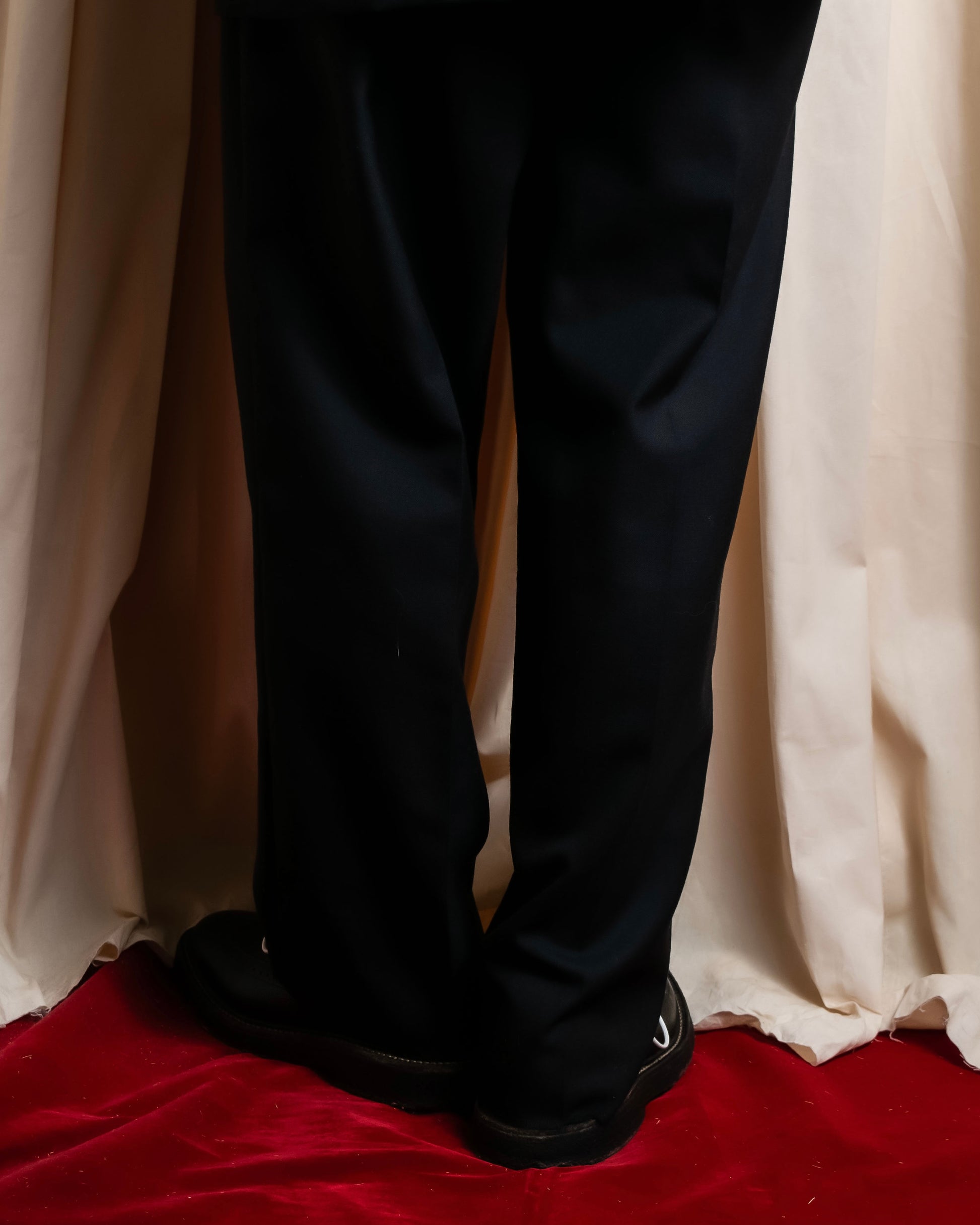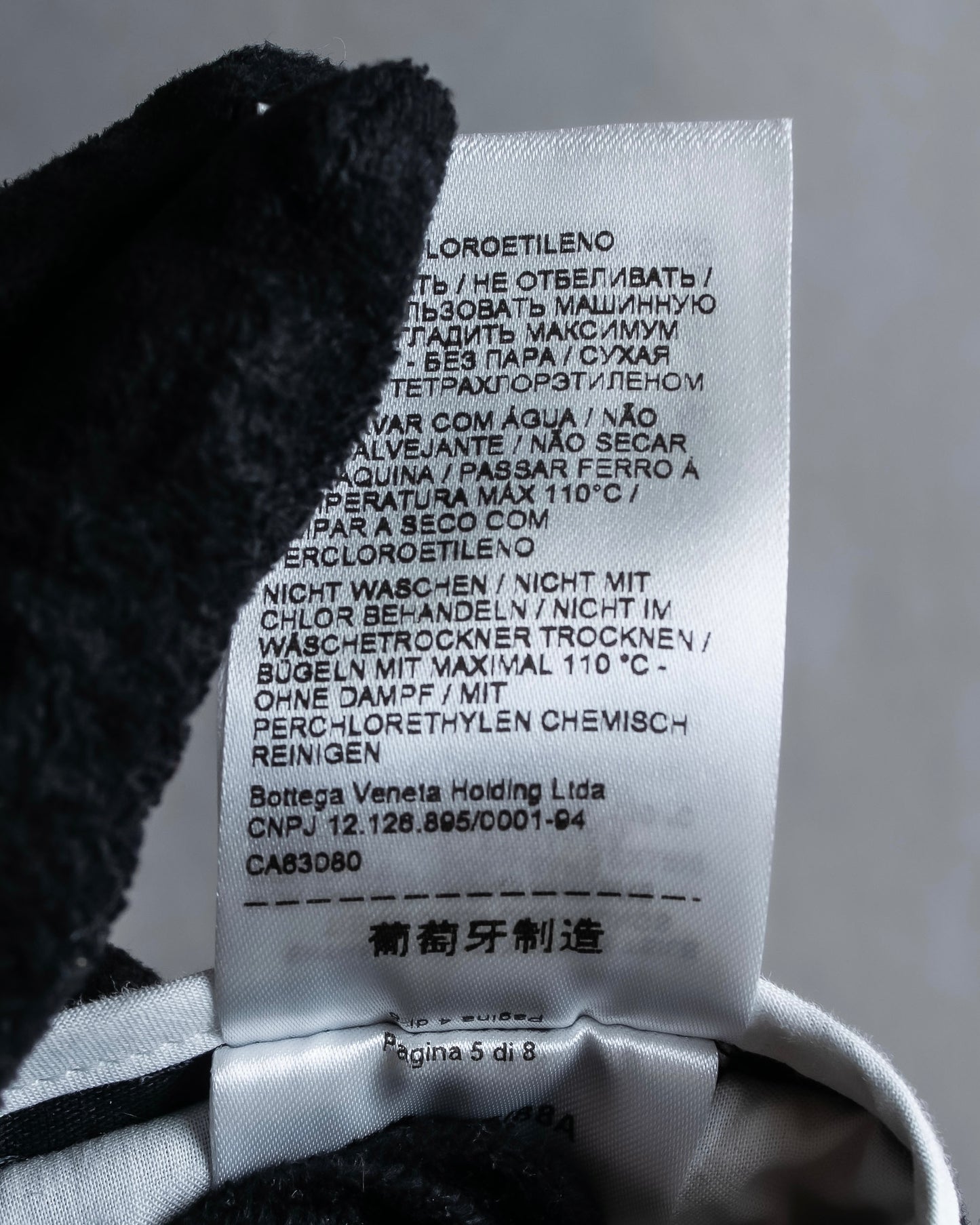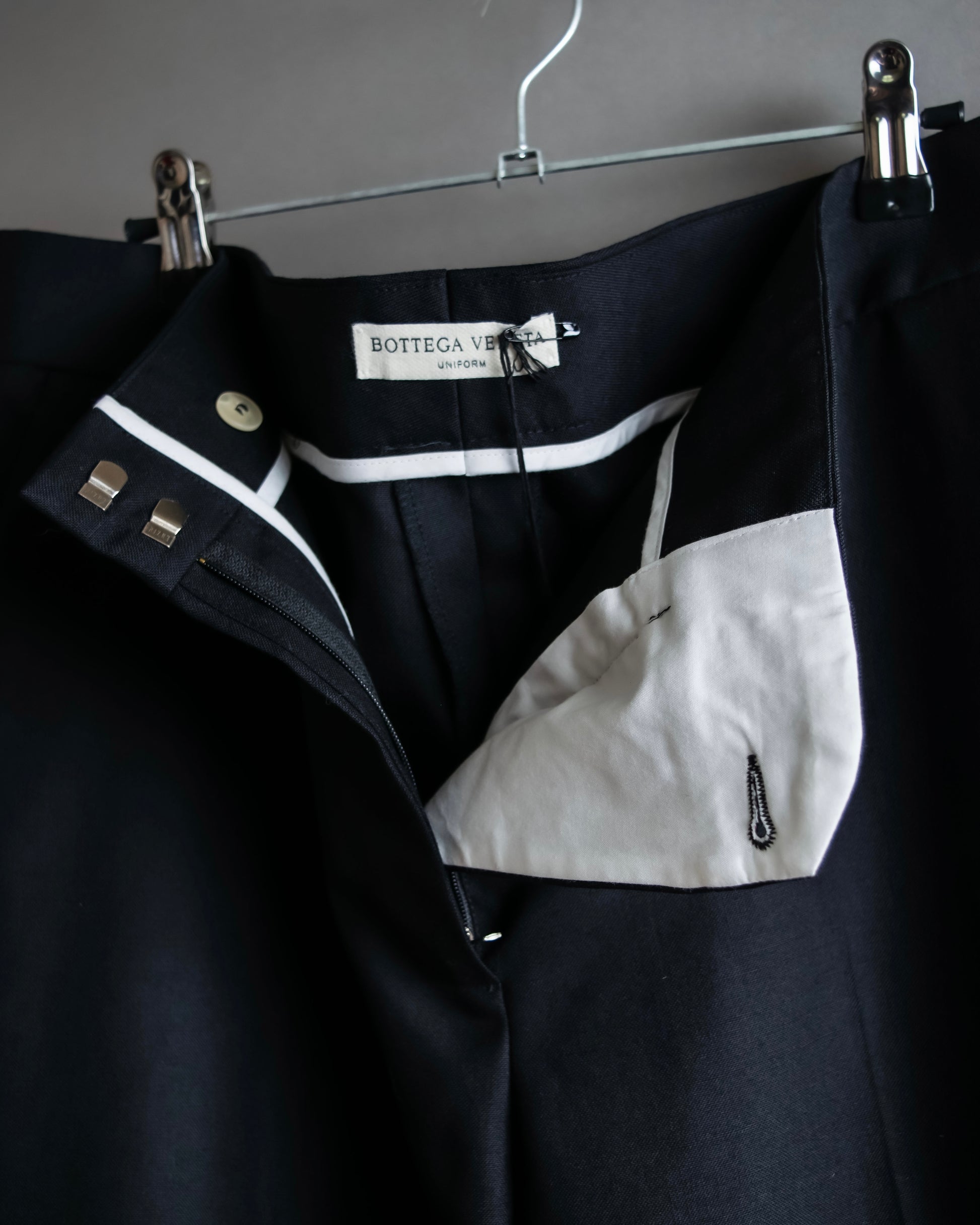 ブランドタグには“UNIFORM”の文字が添えられており、これはダニエル・リー期のボッテガ・ヴェネタにおけるワードローブ提案の一環で、日常着としての完成度を極めたベーシックピースであることの証左でもあります。モード性に傾倒することなく、静かに緊張感を纏った仕立てにこそ価値を見出せる方にこそ相応しいアイテムと言えます。