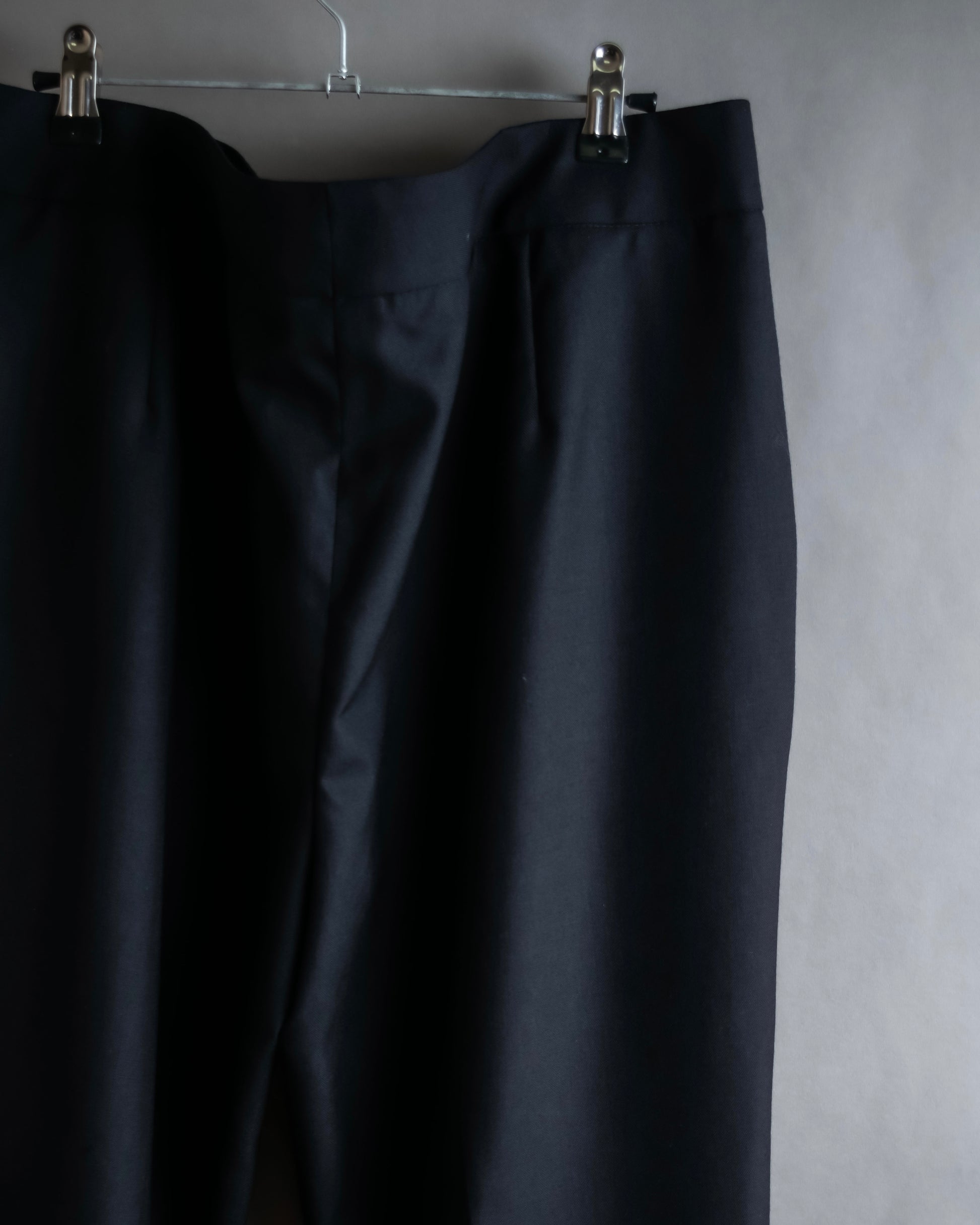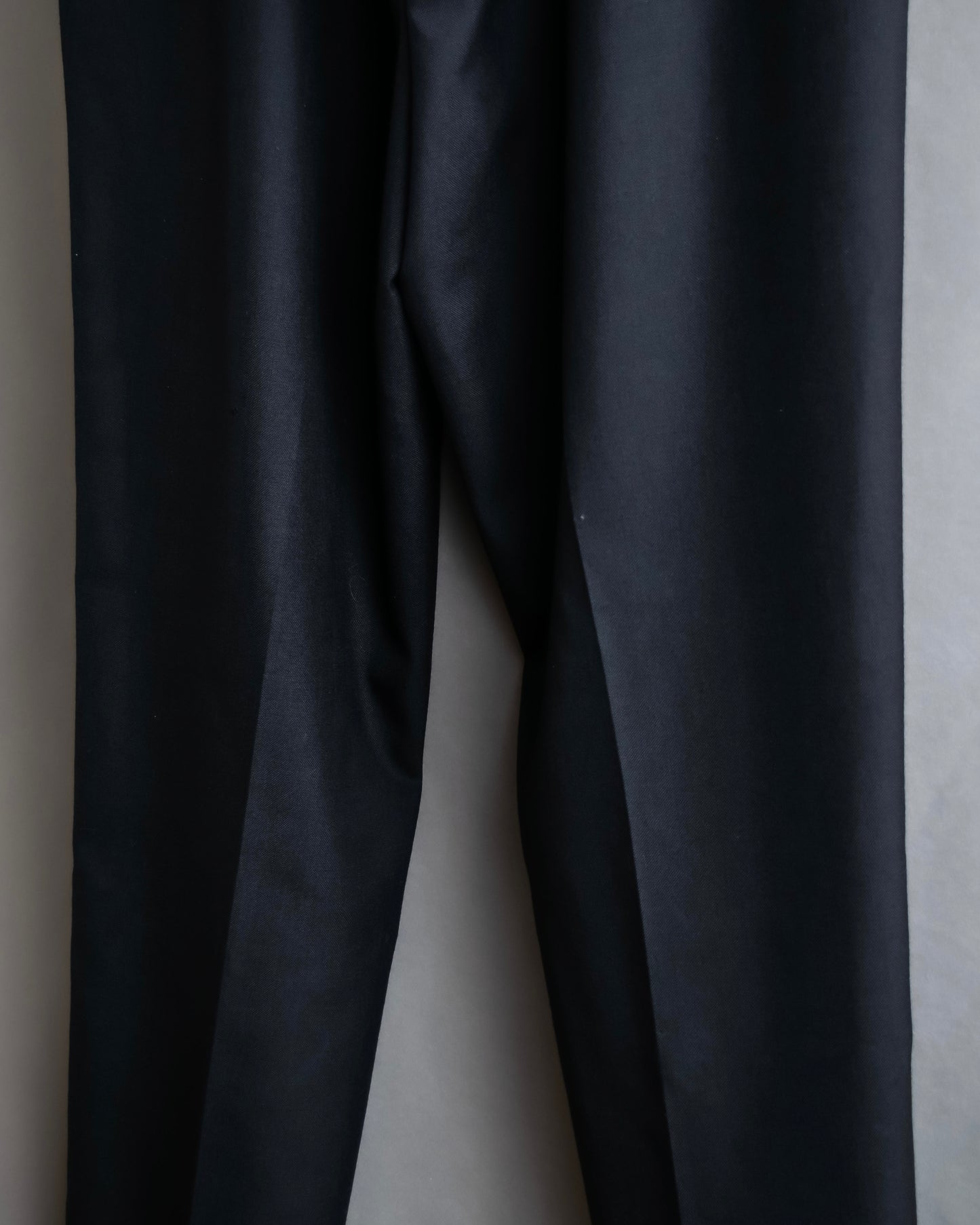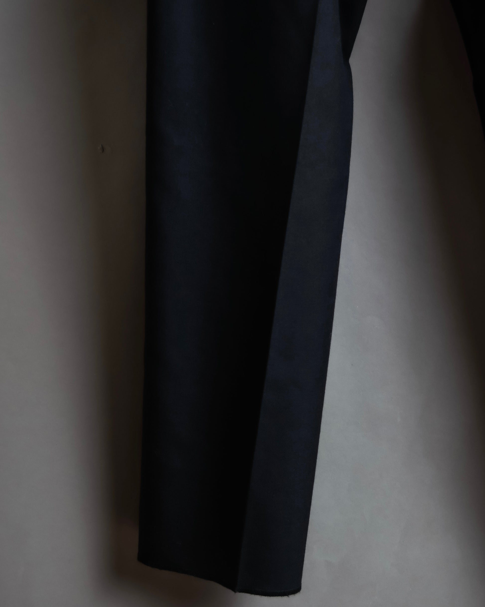 スタイリングとしては、シルクシャツやボリュームのあるハイゲージニットと組み合わせ、あえて抑制的な色数でまとめることで、その静謐さと構築性が際立ちます。スラックスながらもメゾンの思想を色濃く反映した構築バランスは、ジェンダーを問わず、凛とした佇まいを求める全ての方にご提案したい一着となっております。
