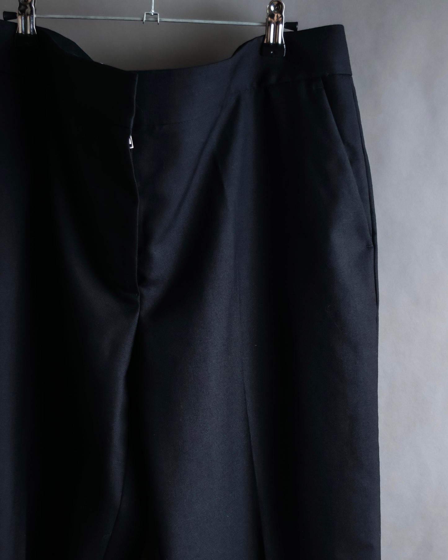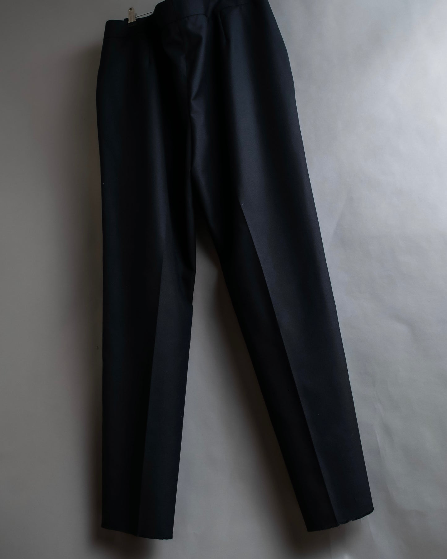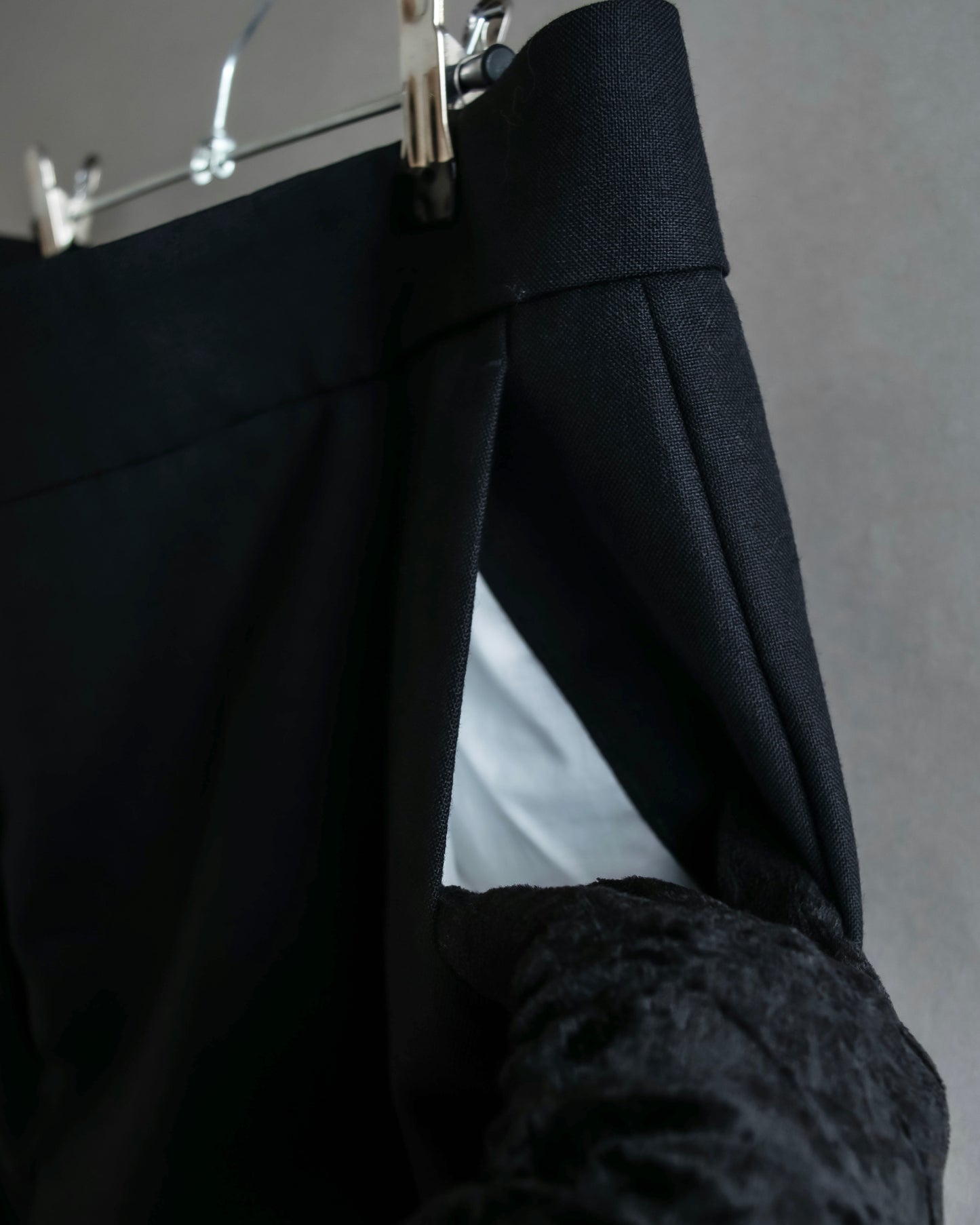 スタイリングとしては、シルクシャツやボリュームのあるハイゲージニットと組み合わせ、あえて抑制的な色数でまとめることで、その静謐さと構築性が際立ちます。スラックスながらもメゾンの思想を色濃く反映した構築バランスは、ジェンダーを問わず、凛とした佇まいを求める全ての方にご提案したい一着となっております。