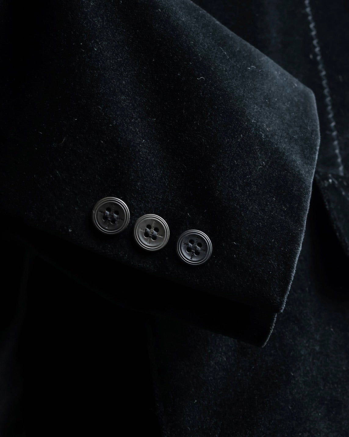 重量感とハリのあるラグジュアリーなベルベットを比翼仕様のテーラードジャケットに落とし込んだデザインが魅力。