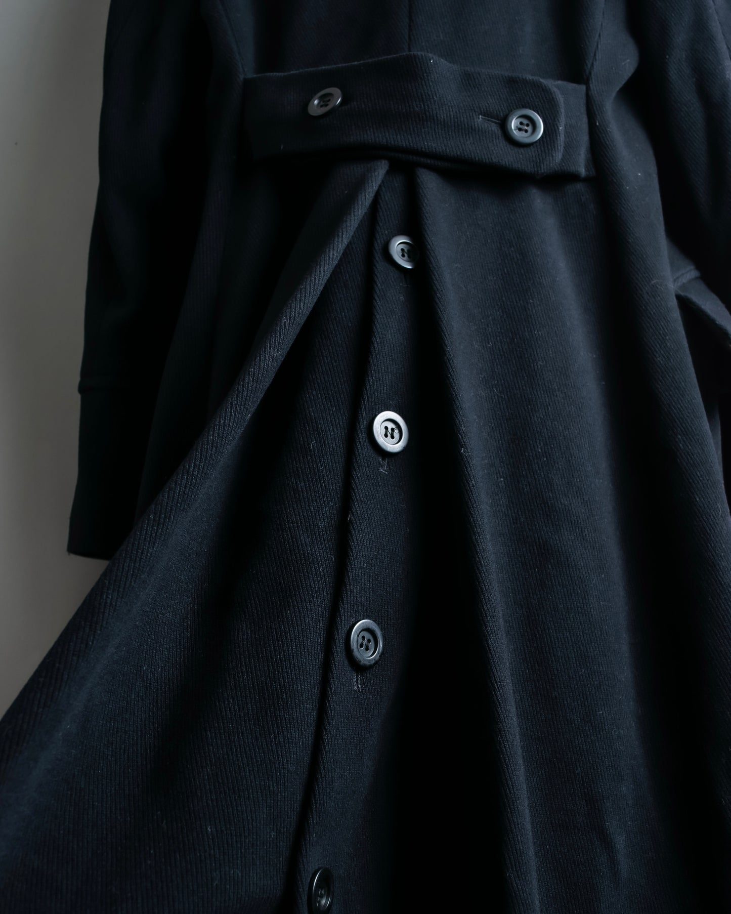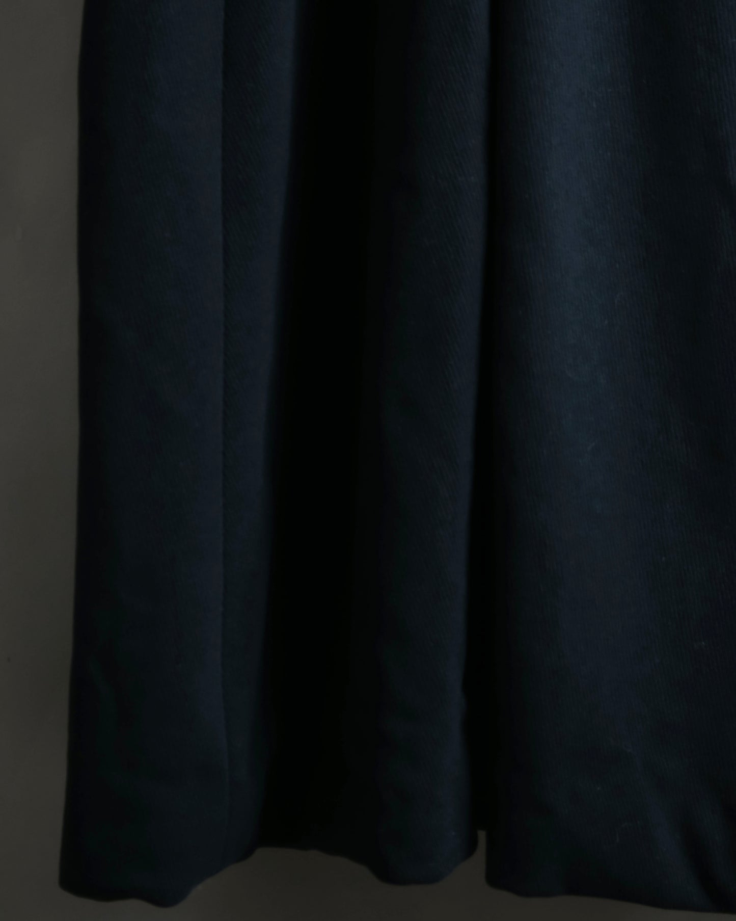 後ろにはボタンでシルエットを変えることの出来るギミックが施されており、ボタンを外すことでよりAラインが強調された動きのあるシルエットを生み出すことが出来るのが特徴です。