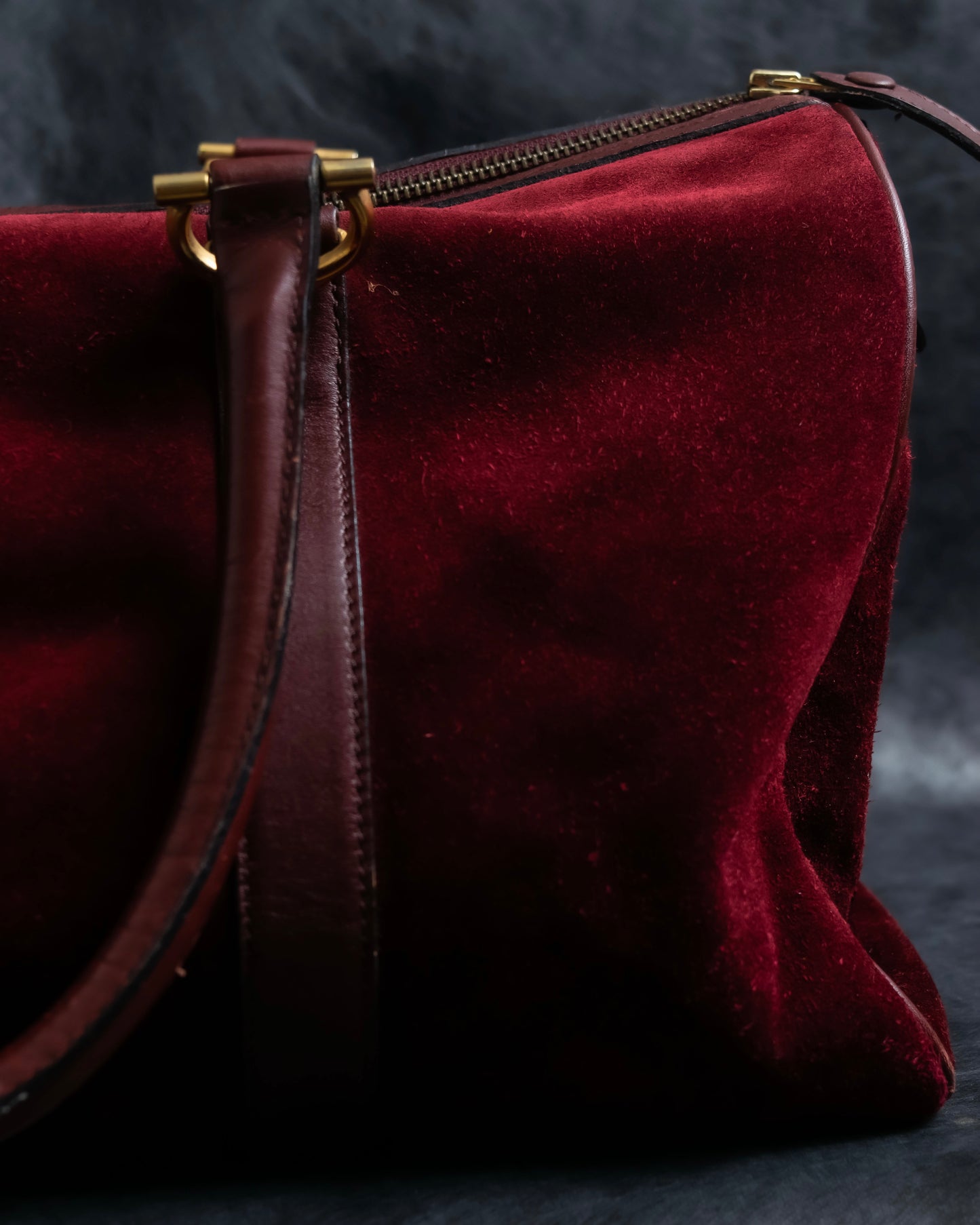 高級感のある光沢感が特徴の、ベロア素材を表面に用いている為、スタイリングのアクセントとして用いたり、素材のコントラストを付けて頂ける