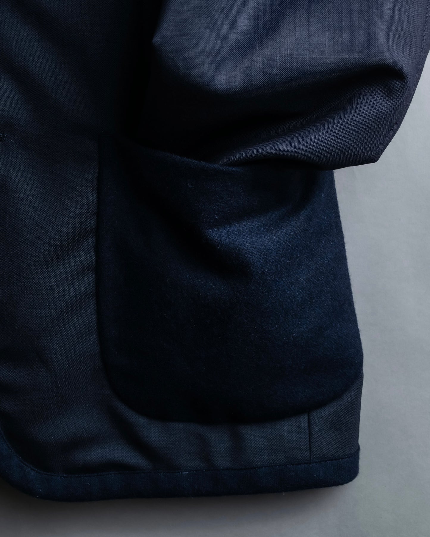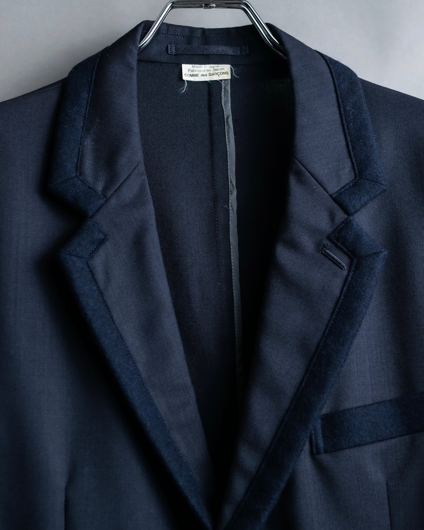 テーラリングと、貼り付けポケットのカジュアルな印象の相反するイメージが、コムデギャルソンのフィルターを通すことにより、唯一無二のバランス感を演出しております。