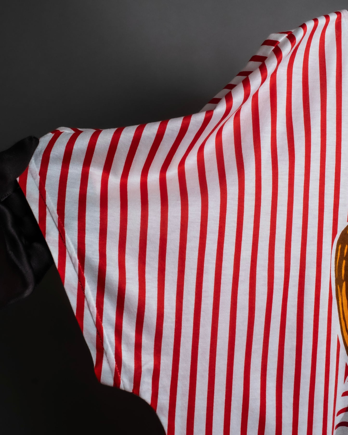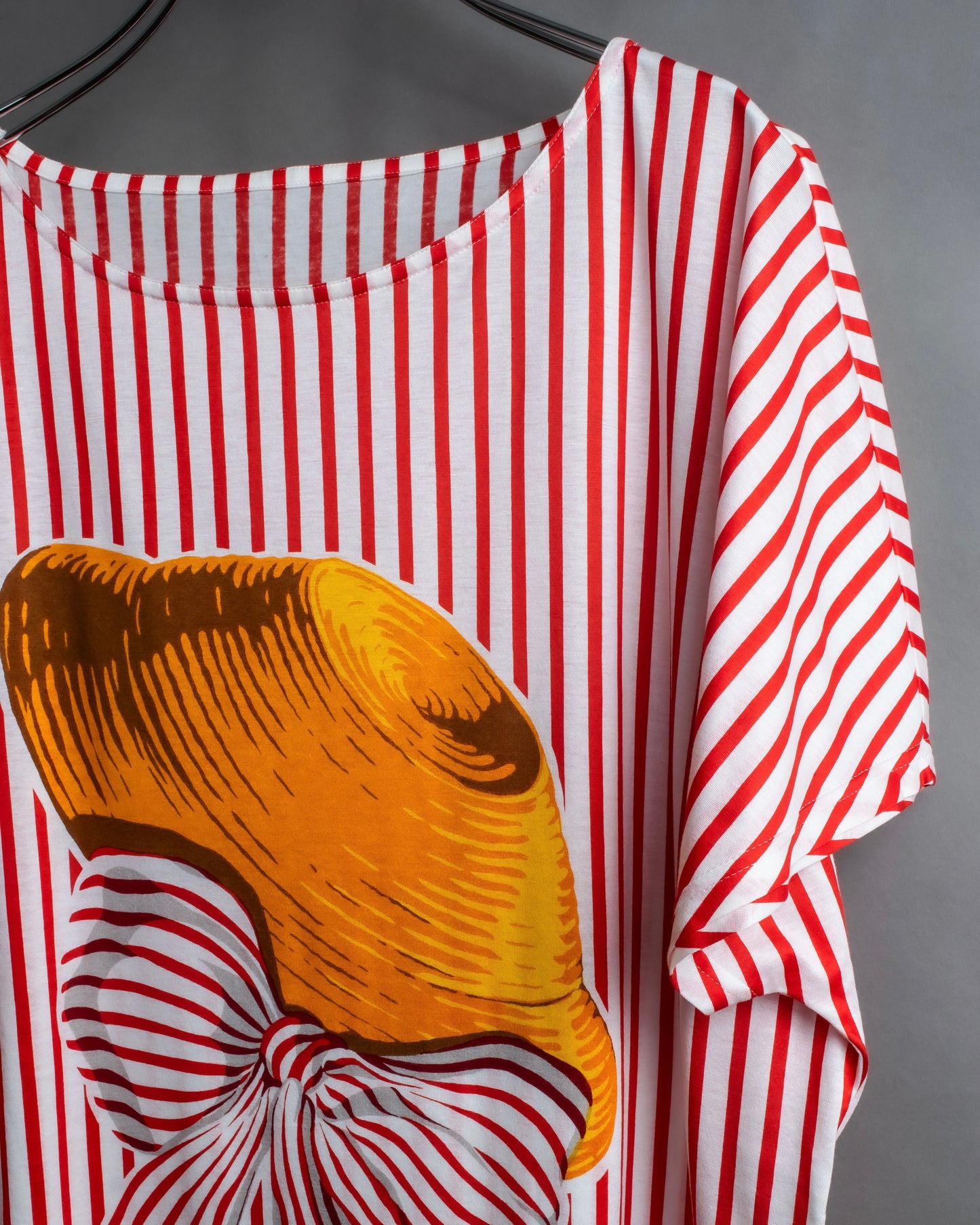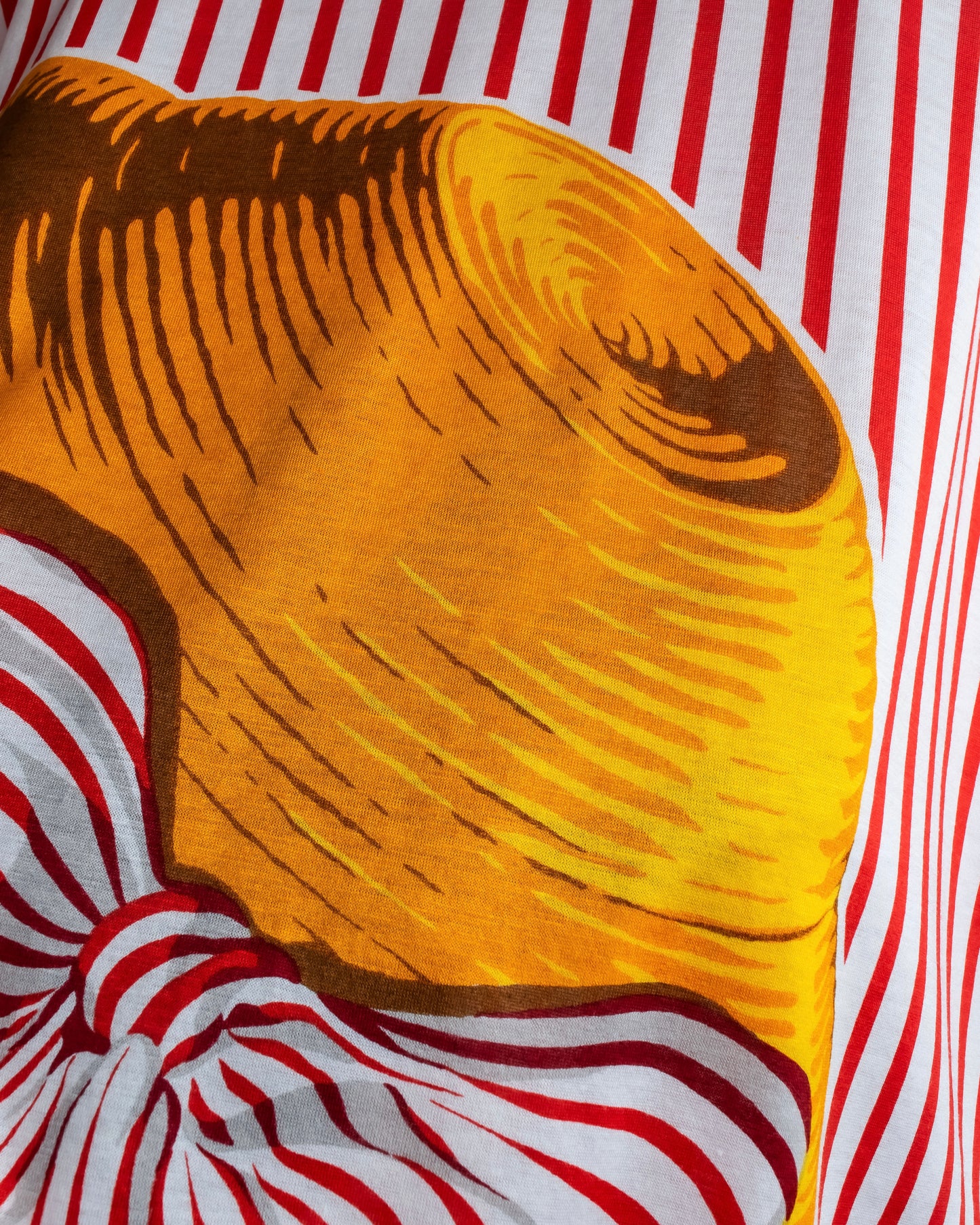 リボンがプリントされており、ブランドの世界観を投影した様なエレガントなプリントはインパクトがあり、1枚で様になるデザインとなっております。