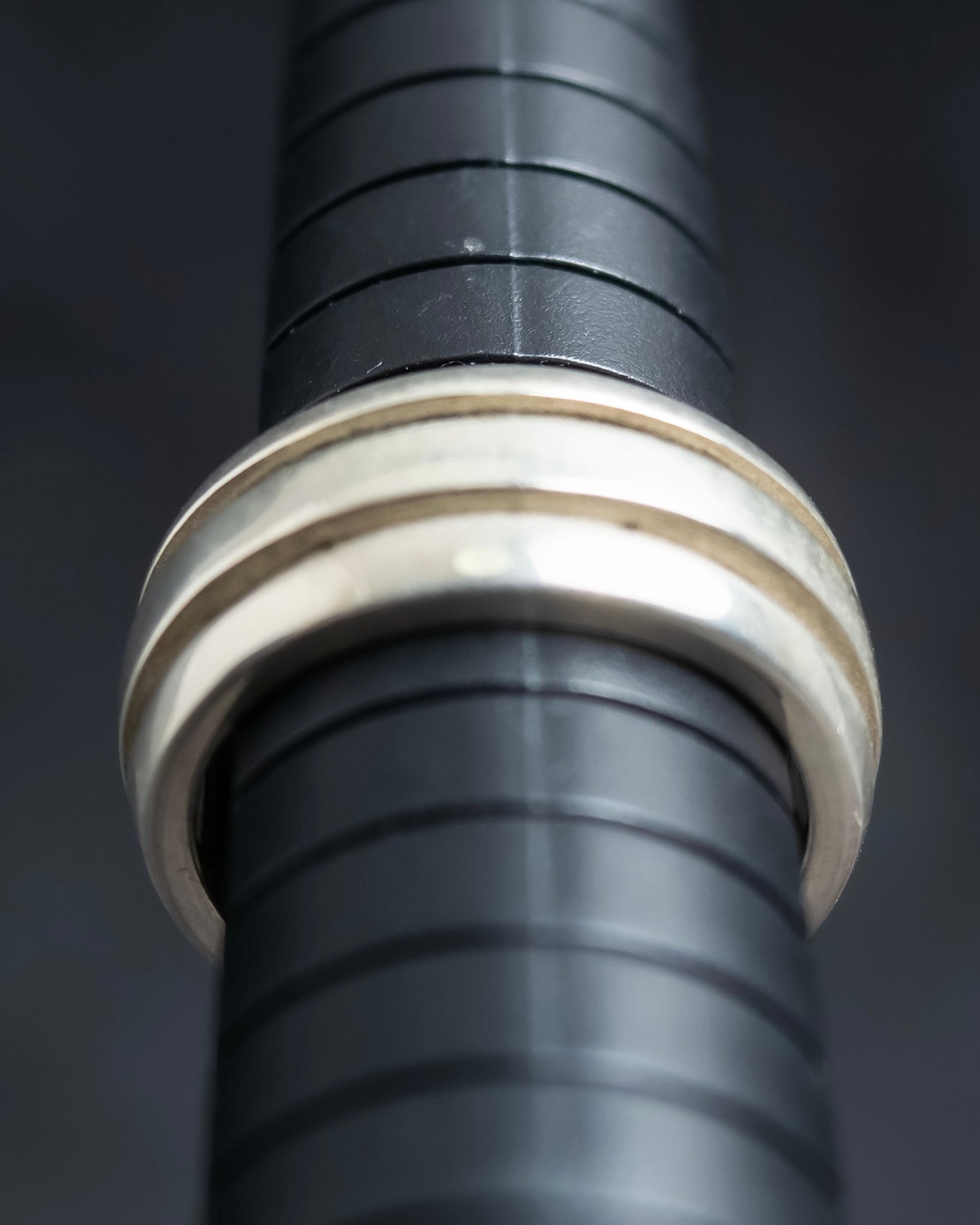 ソリッドな印象を持つシルバーで統一されたお色味と、2つの溝がスタイリッシュさを演出し、