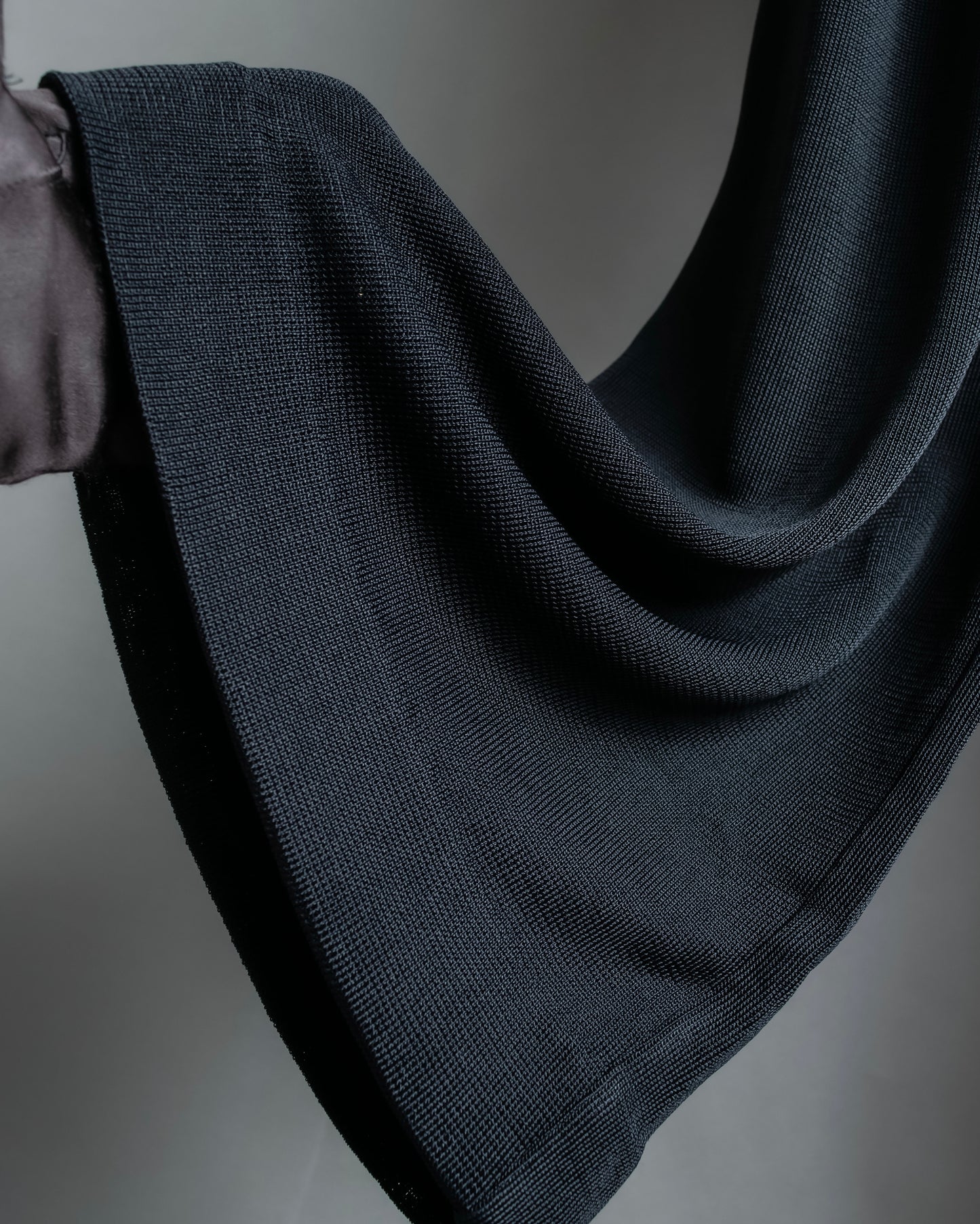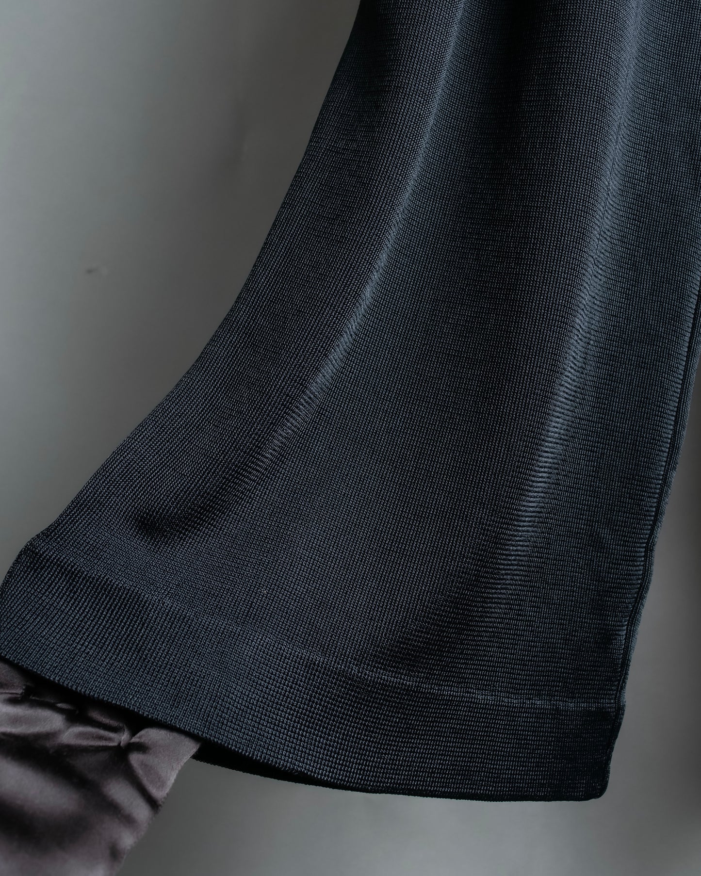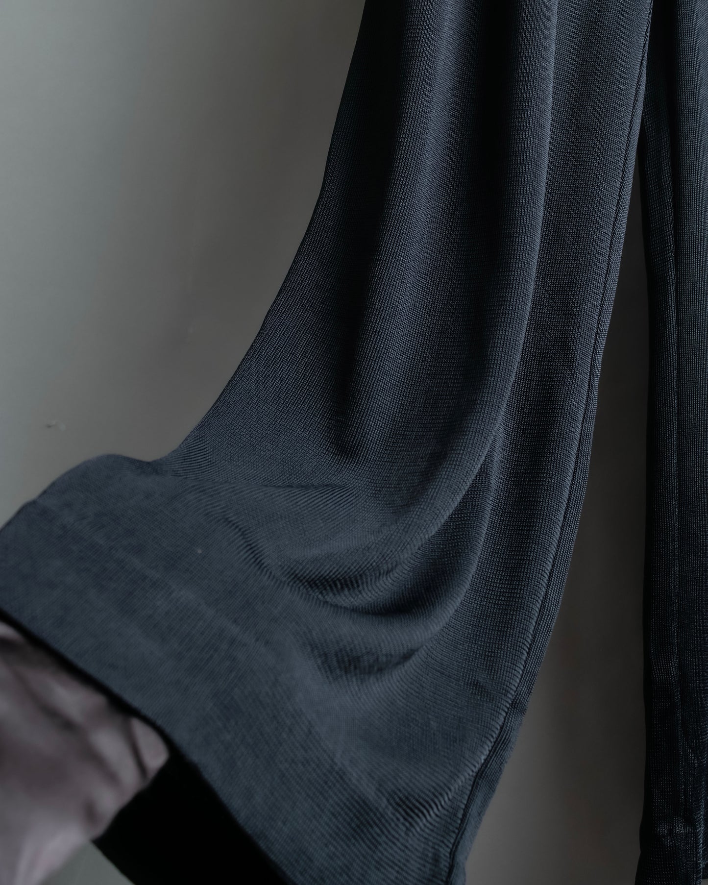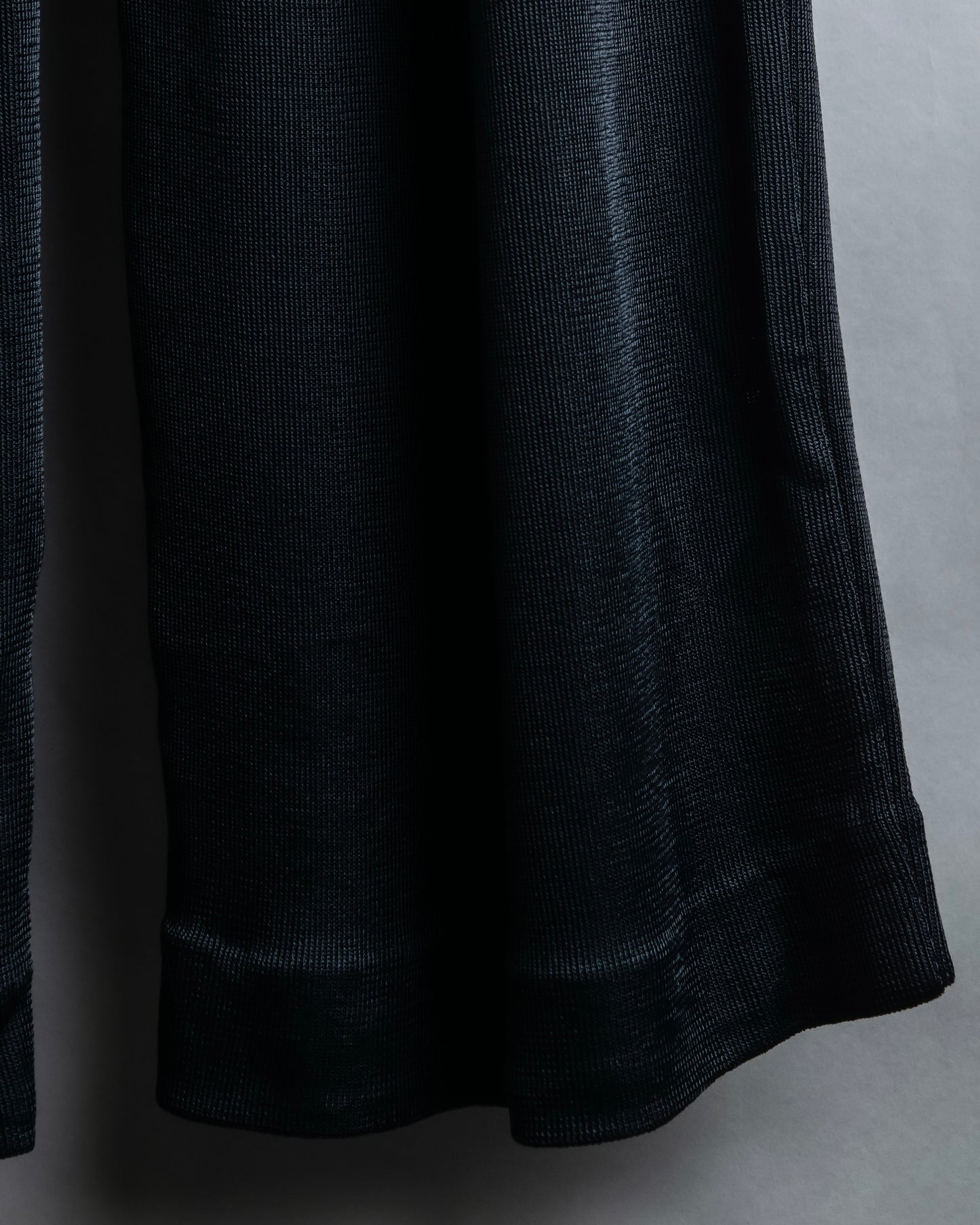 シルクに似たドレープ感と艶感が特徴のビスコース素材を使用している為、シルエットと相まって