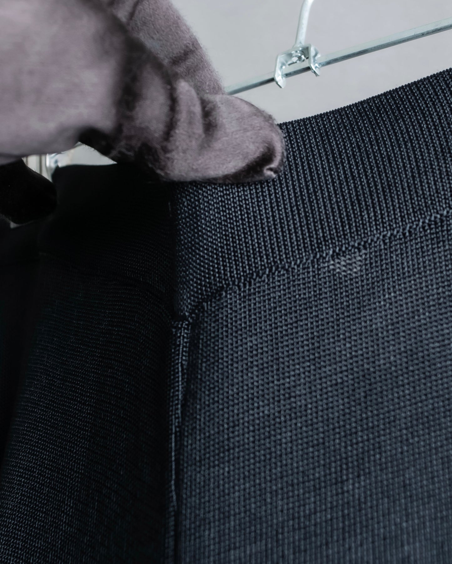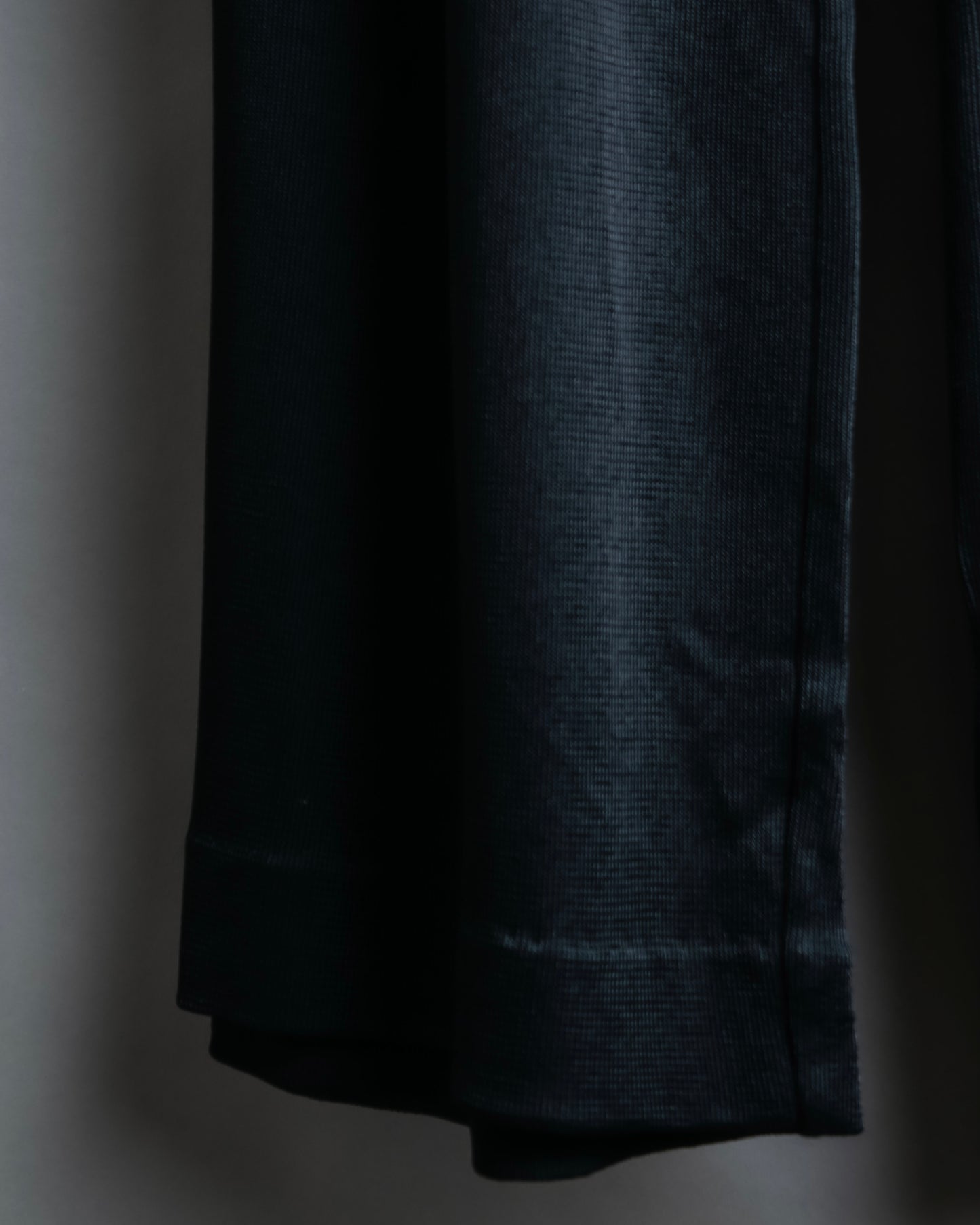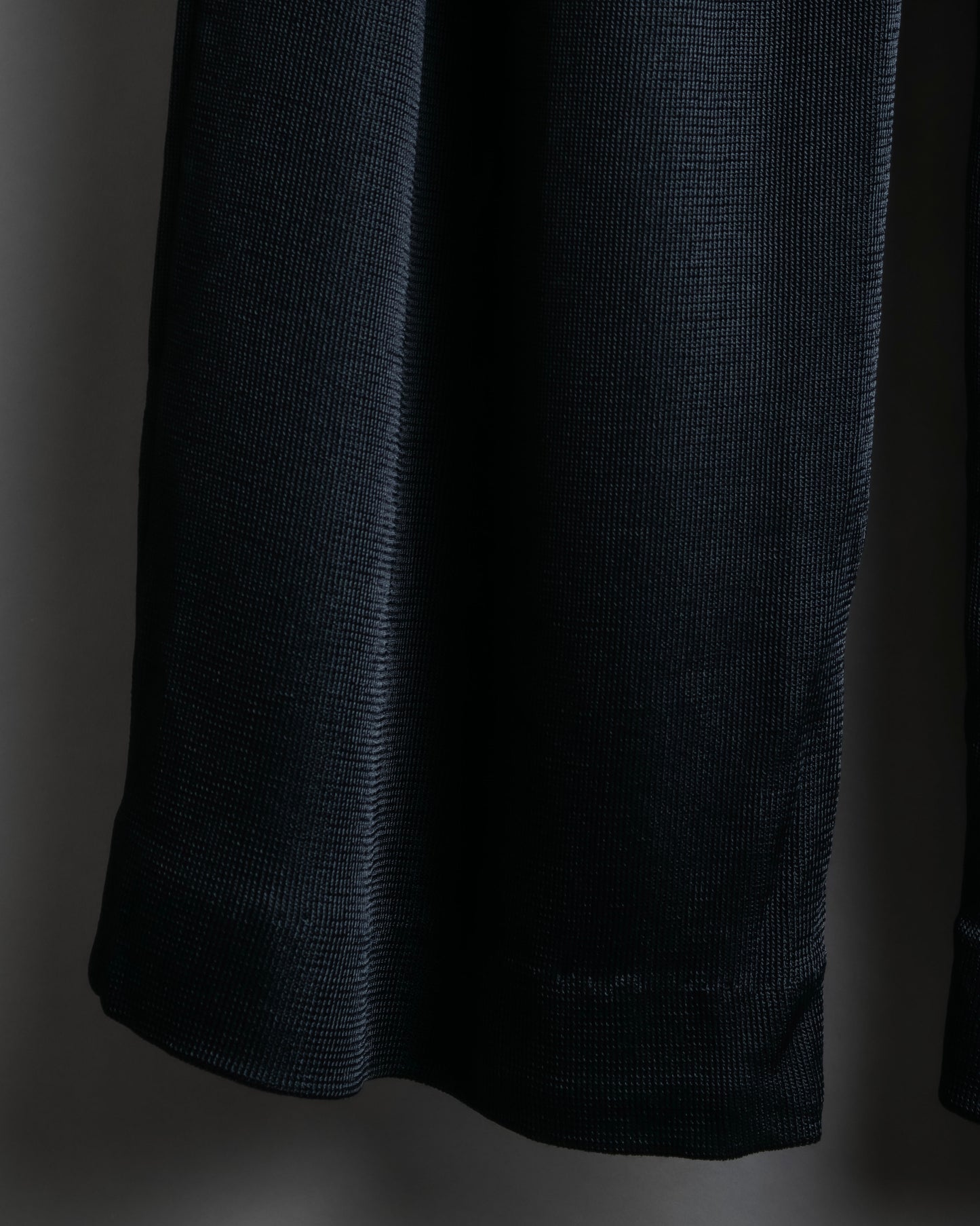 計算され尽くされた技巧的なパターン技術により、脚の形を拾うこと無く着用して頂けるのが特徴で、ワイドなシルエットながら落ち感を生み出すことにより、スタイリッシュさを感じさせるという独特な風合いを帯びております。
