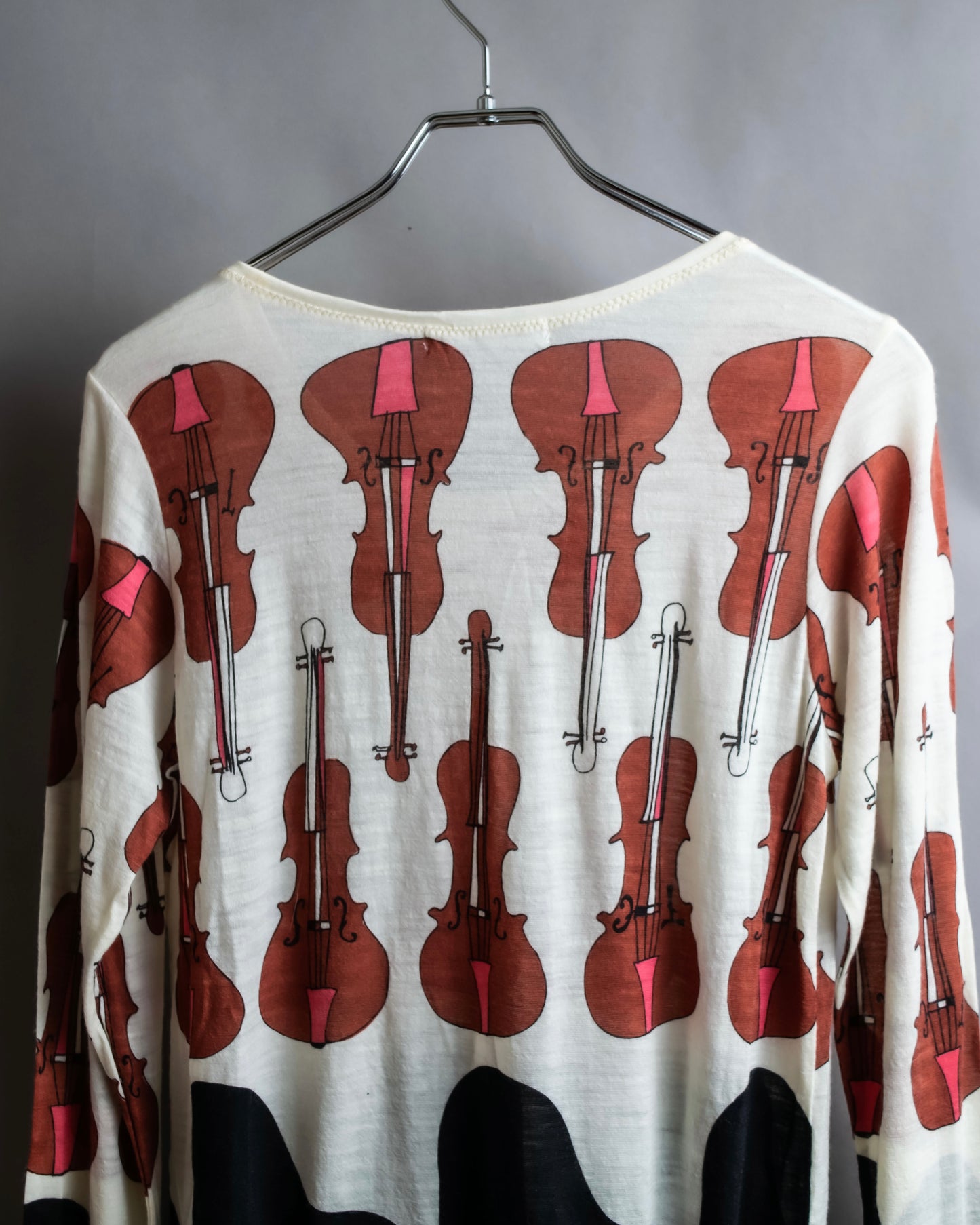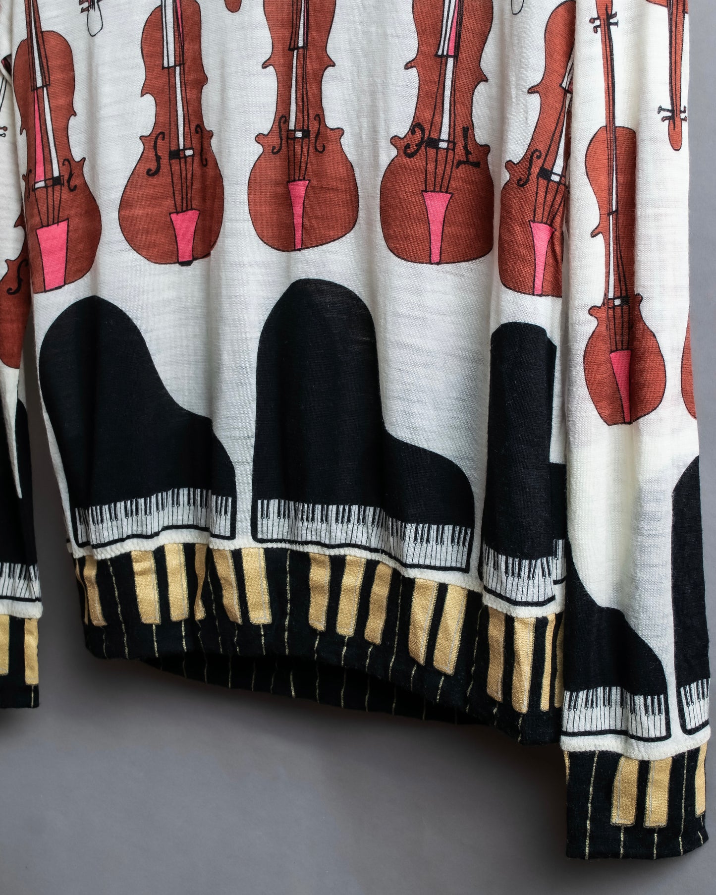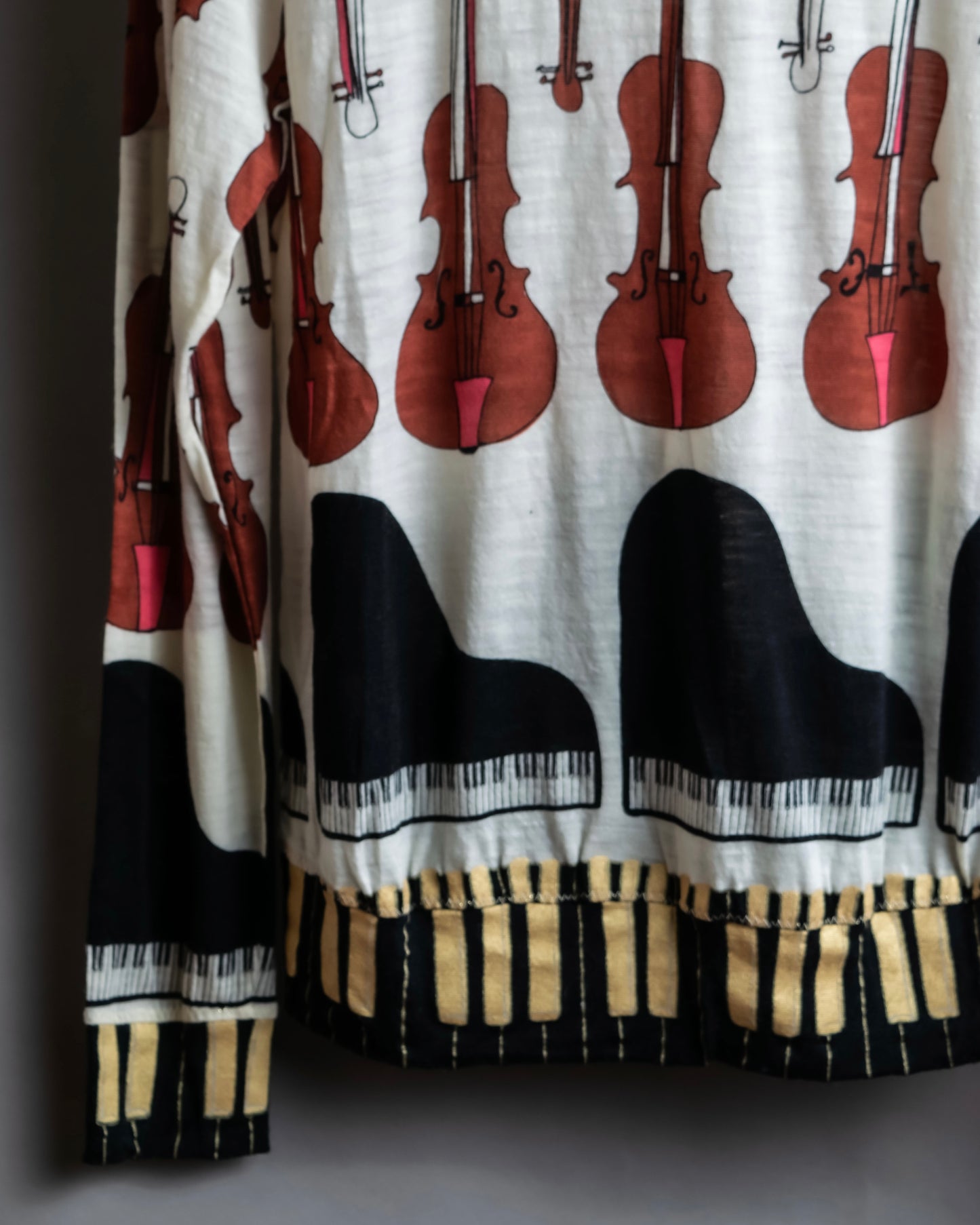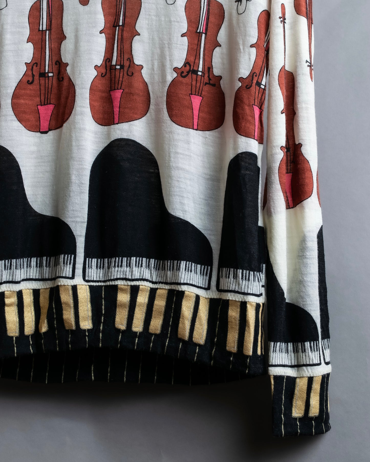 "TSUMORI CHISATO" Musical instrument pattern box silhouette long sleeve knit T-shirt