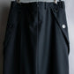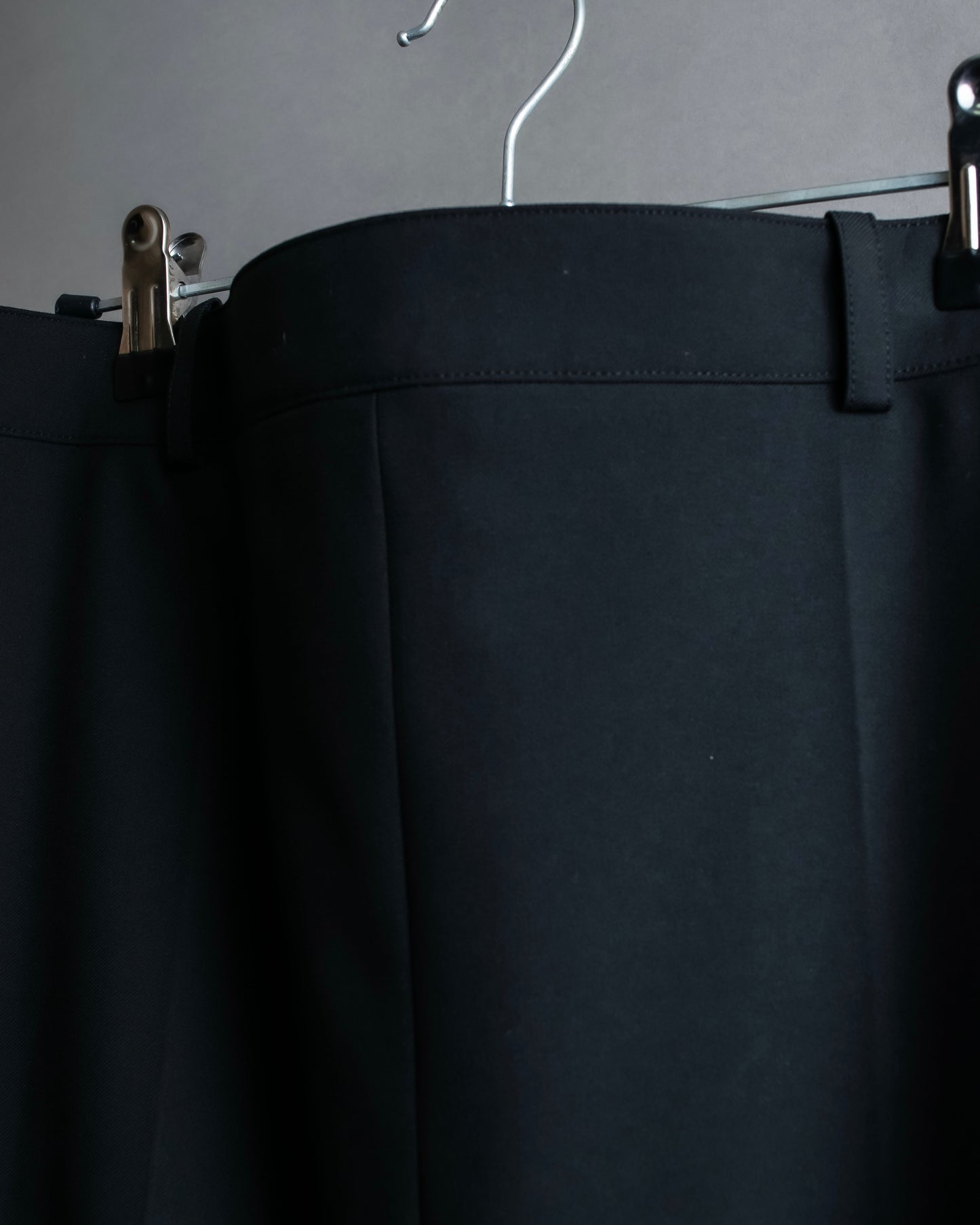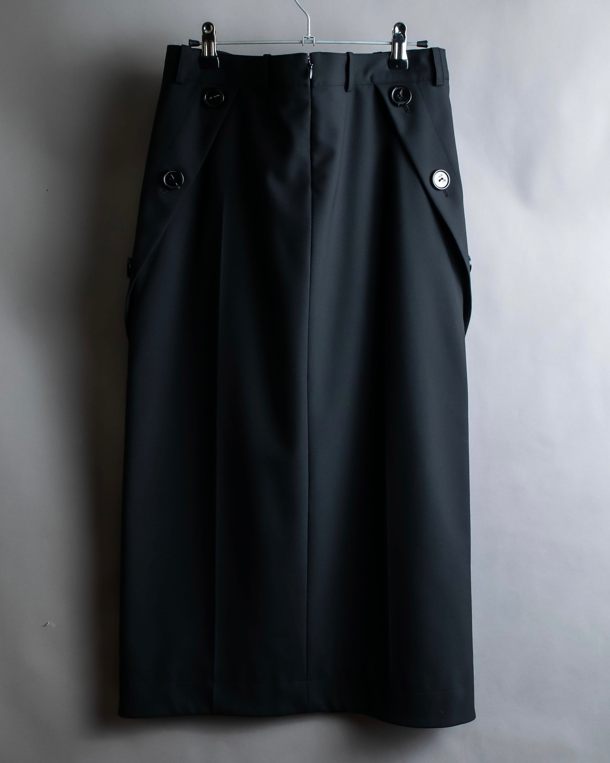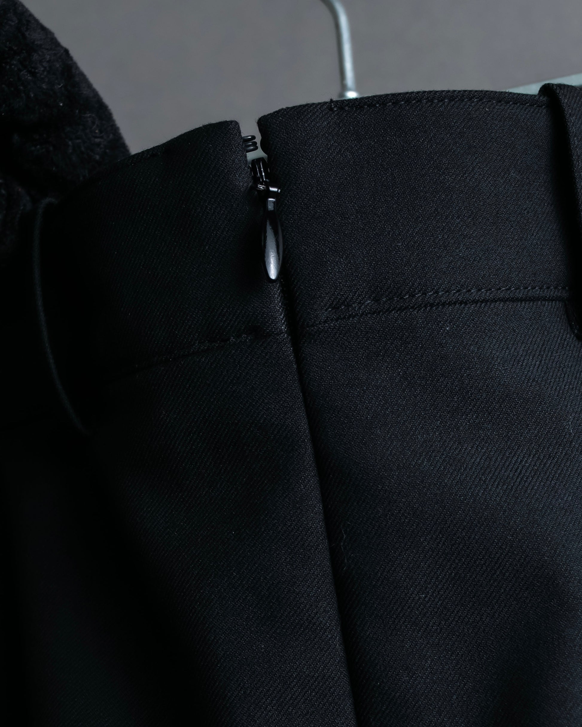 後ろ身頃にかけてのデザインも抜かりなく、ダーツ処理によって美しい丸みを描く腰回りのラインと、裾に向けてやや広がるシルエットが、歩くたびにスカート全体の構築美を引き立てております。