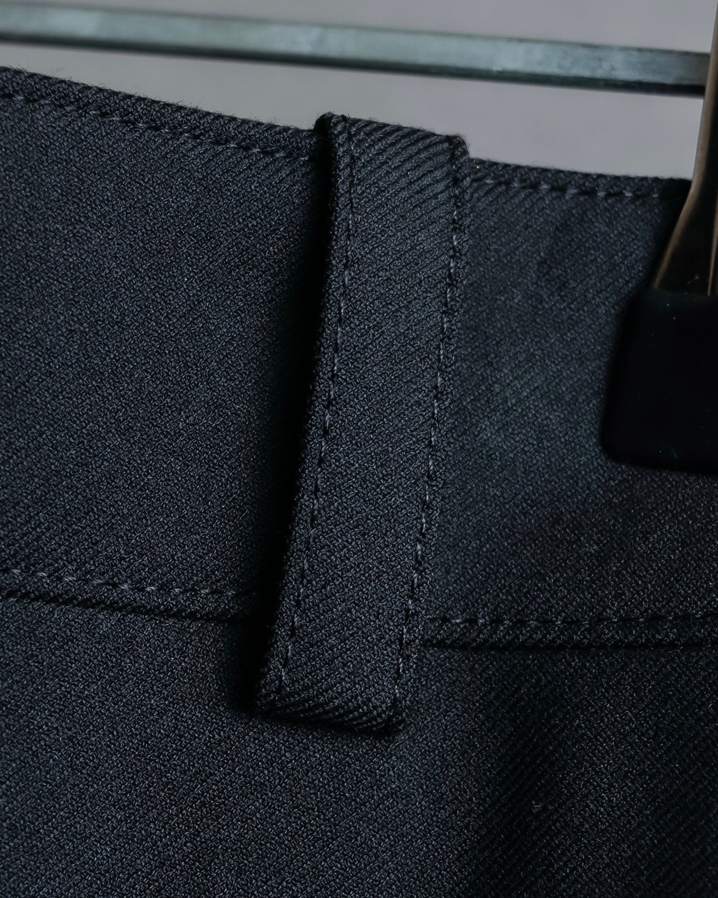 スタイリングとしては、柔らかなブラウスをタックインし、ヒールブーツやミニマルなスクエアトゥのシューズを合わせていただくと、素材とシルエットが織りなす上品な緊張感を一層際立たせたきこなしをお楽しみ頂けます。