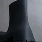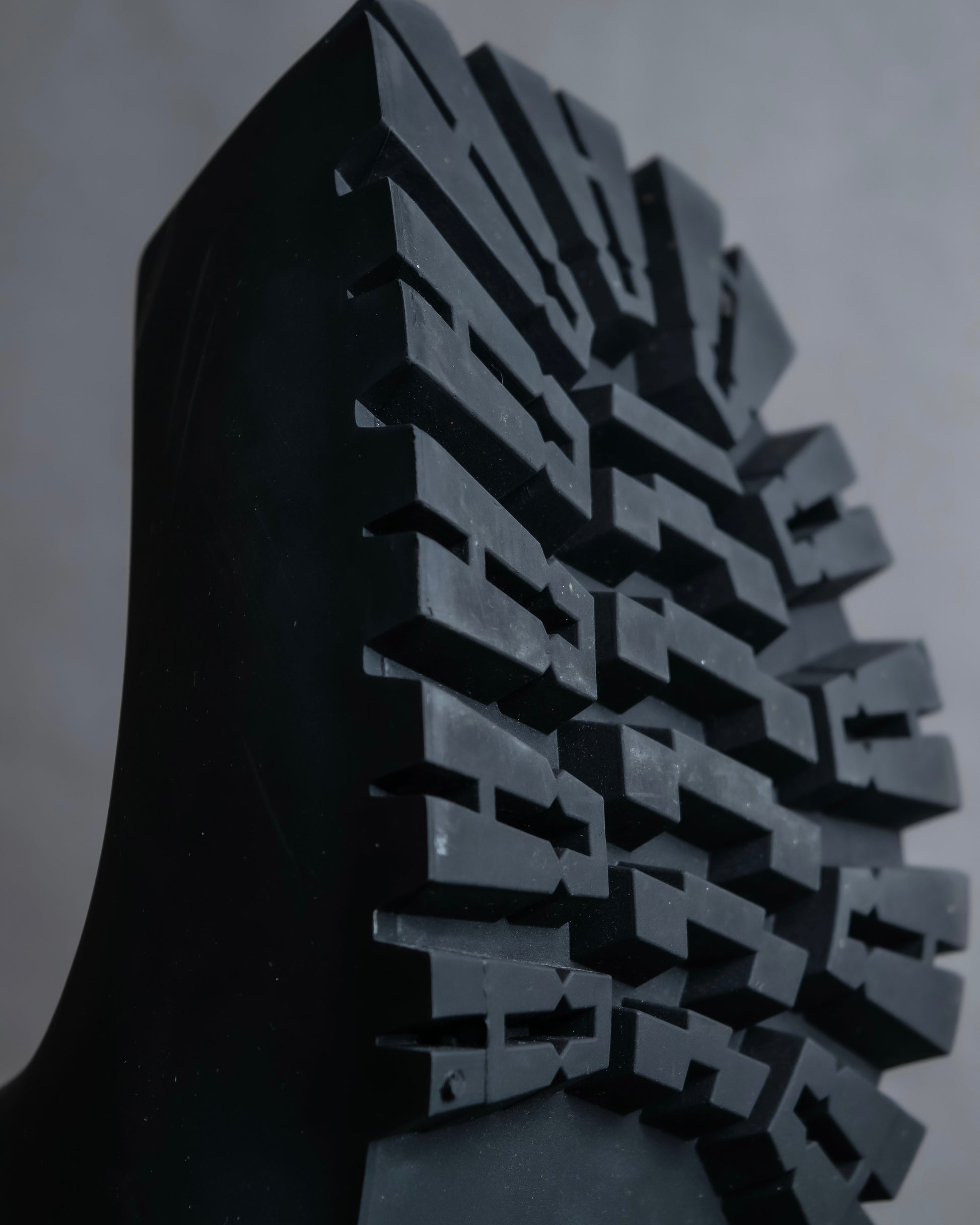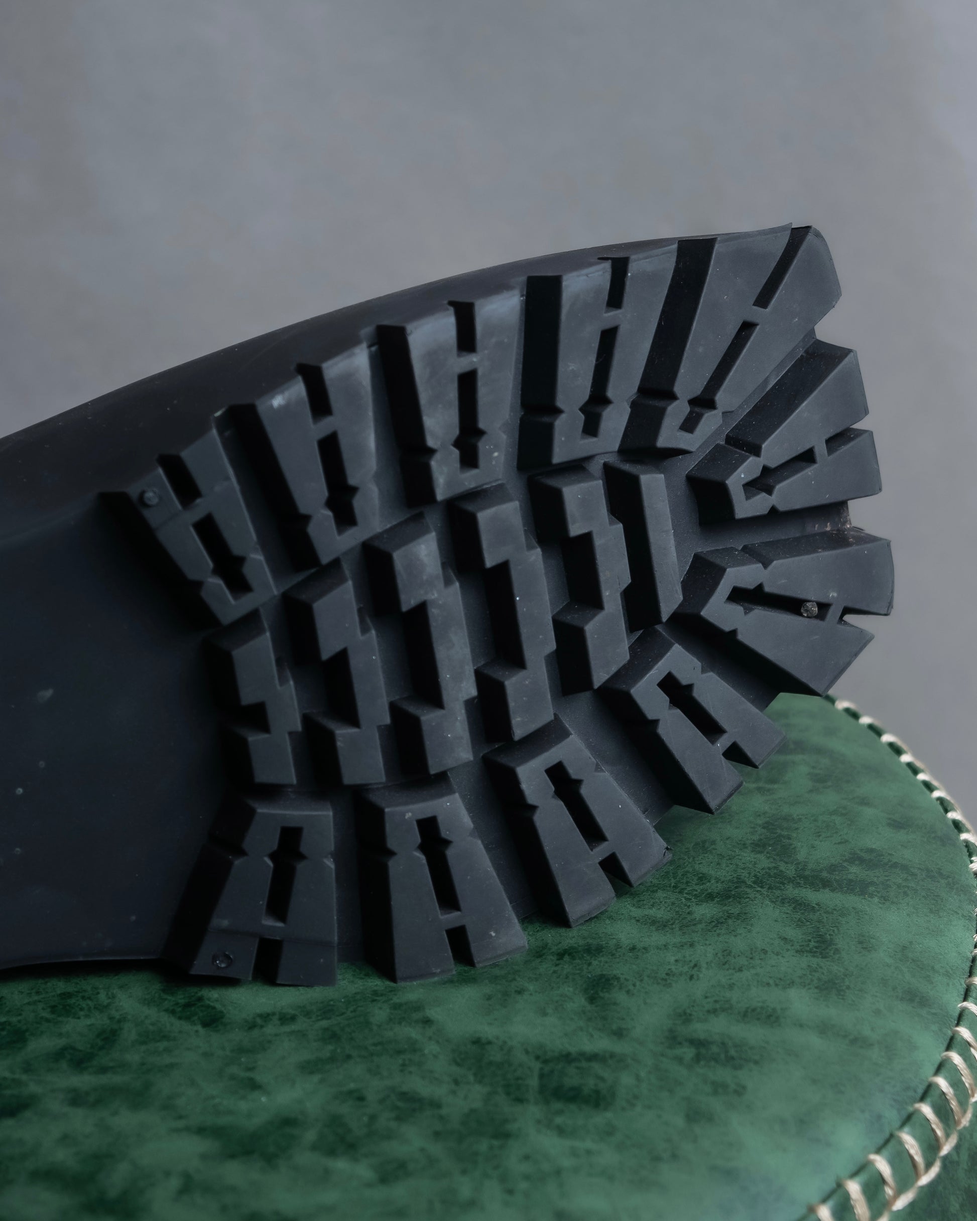 素材には軽量で高い耐久性を持つラバーを使用しており、従来のブーツの分解可能なパーツを廃したことで、現代的で実用的な印象を与えています。さらに、ソールの凹凸のあるラギッドなパターンが、軍用ブーツを彷彿とさせる一方で、ファッションとしてのスタイリッシュさも確保しており、滑りやすい路面でも高いグリップ力を発揮しながら着用して頂けます。