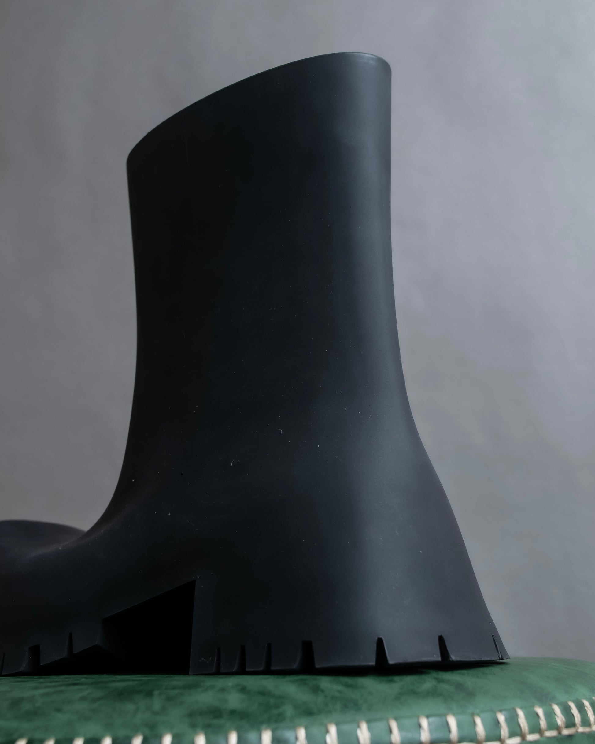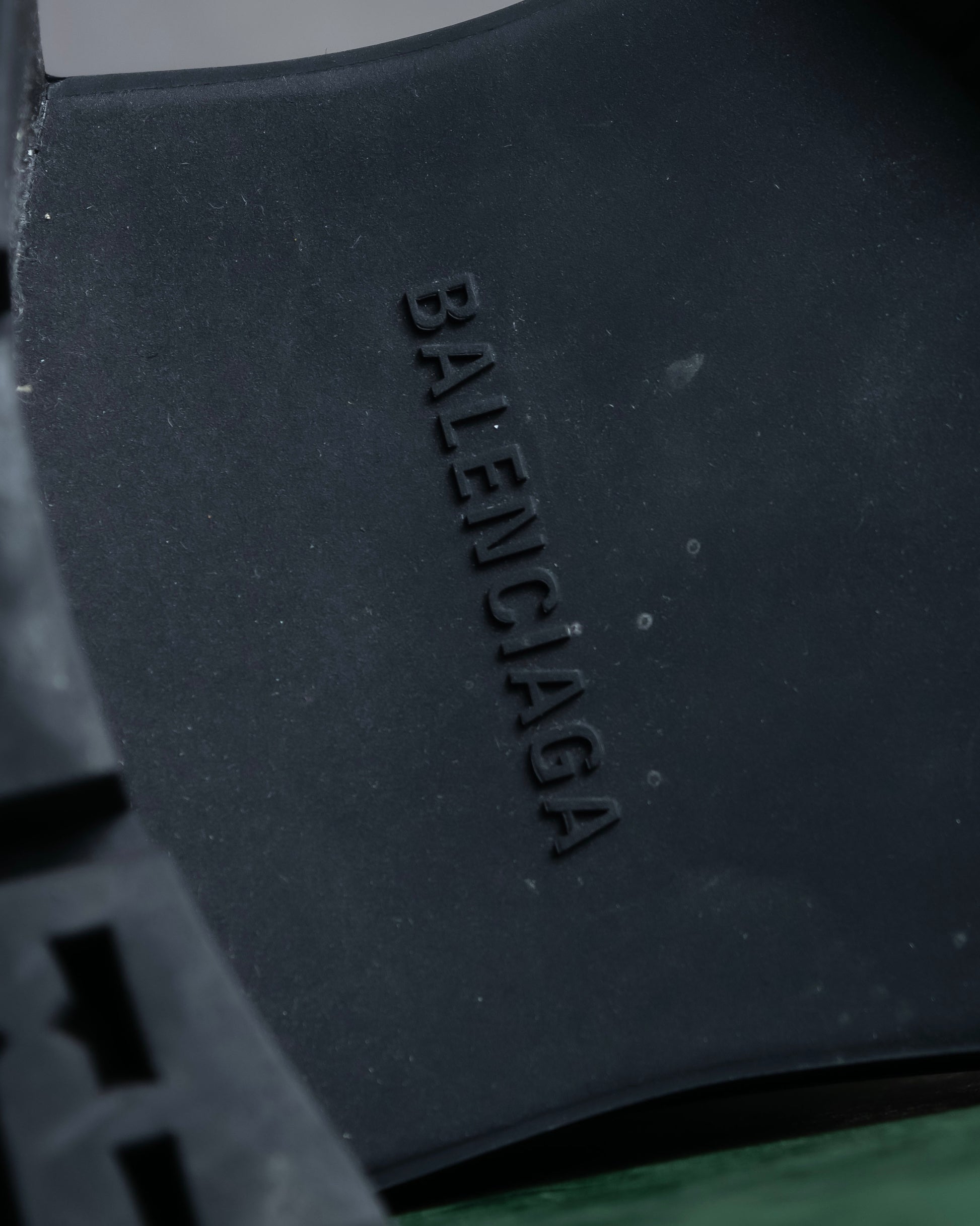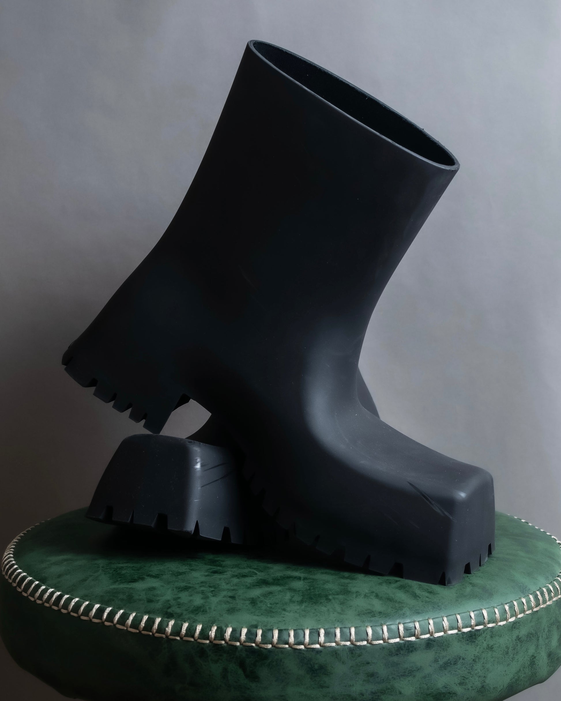 「トルーパー」と呼ばれる由縁は、このブーツが持つ軍用靴のような堅牢さと実用性、そして無駄のない機能美からきており、軍隊で使用される「Trooper(兵士)」の堅実さを象徴するようなデザインで、過酷な状況下でも対応できるタフさをイメージさせています。同時に、バレンシアガならではの革新的なアプローチで、軍用ブーツをファッションアイテムとして昇華させたところにこの名が付けられた背景があり、