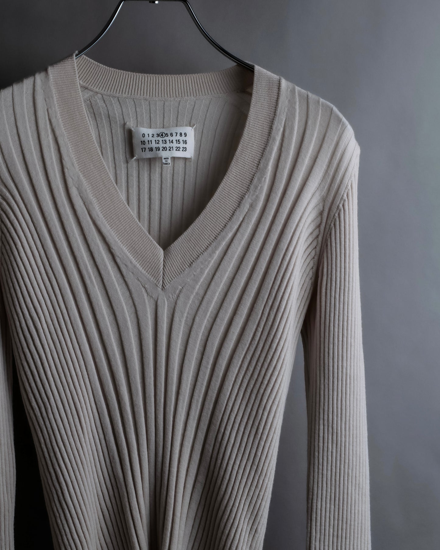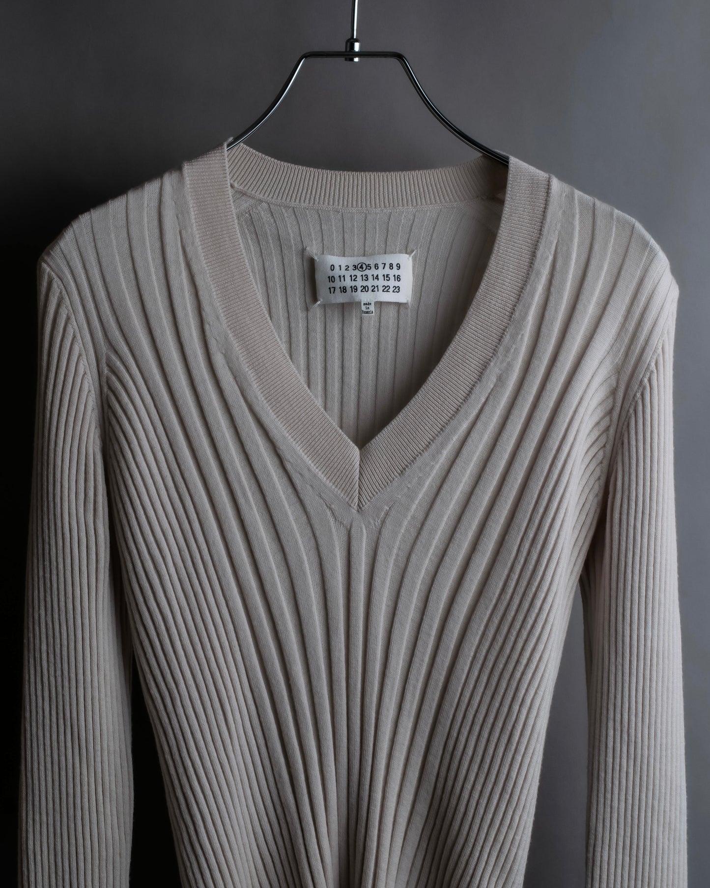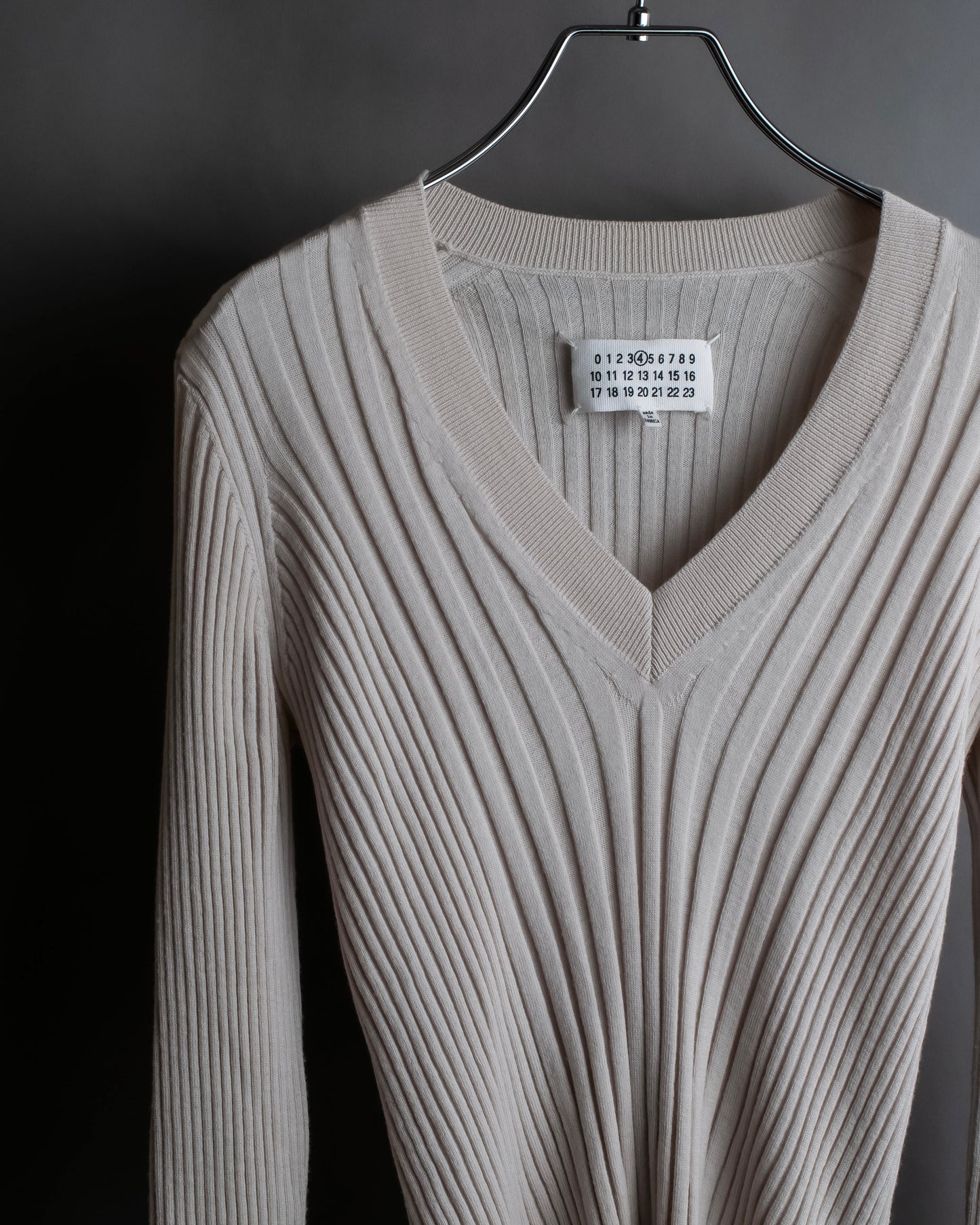 "MAISON MARGIELA" 18AW Ribbed shaped V-neck knit