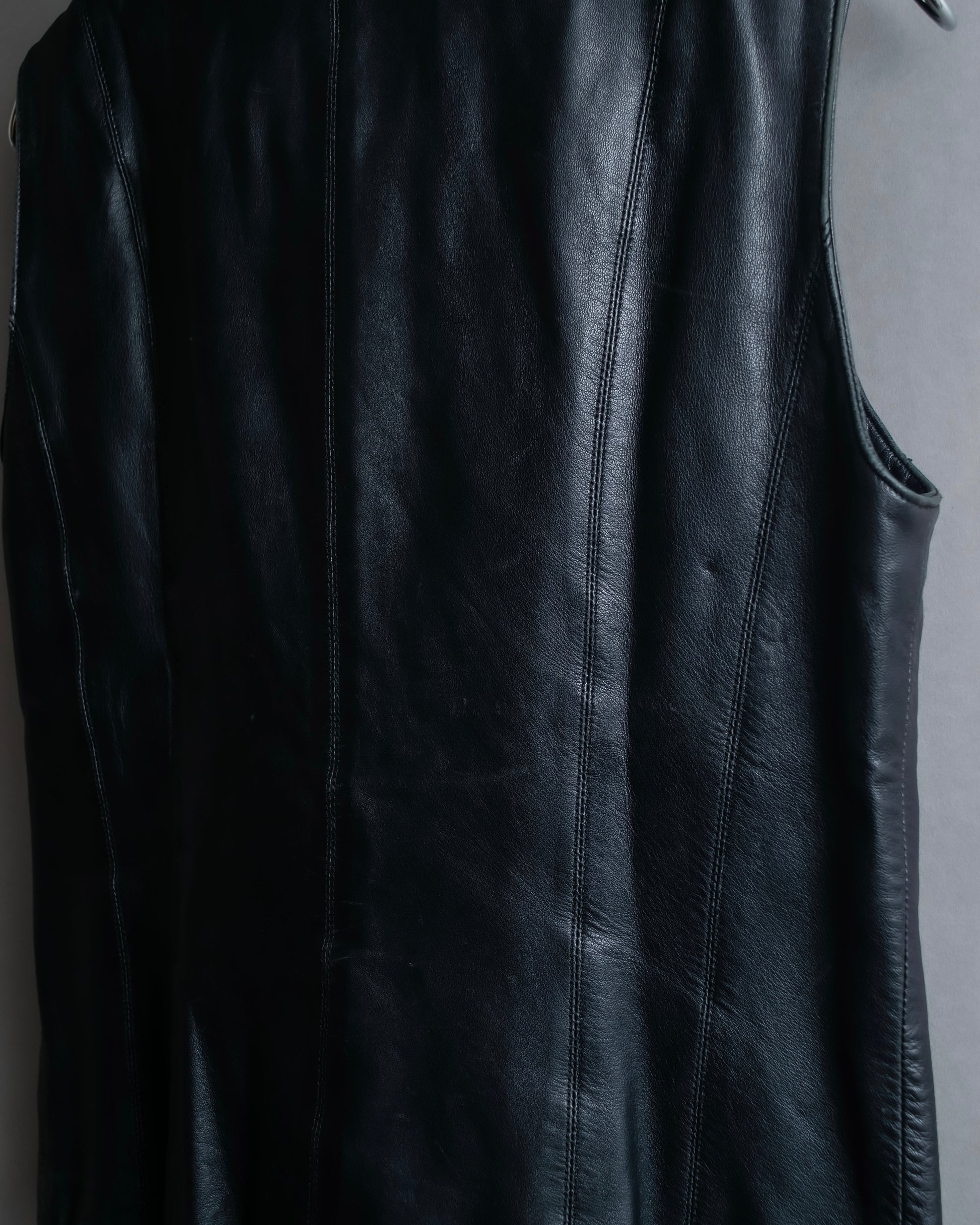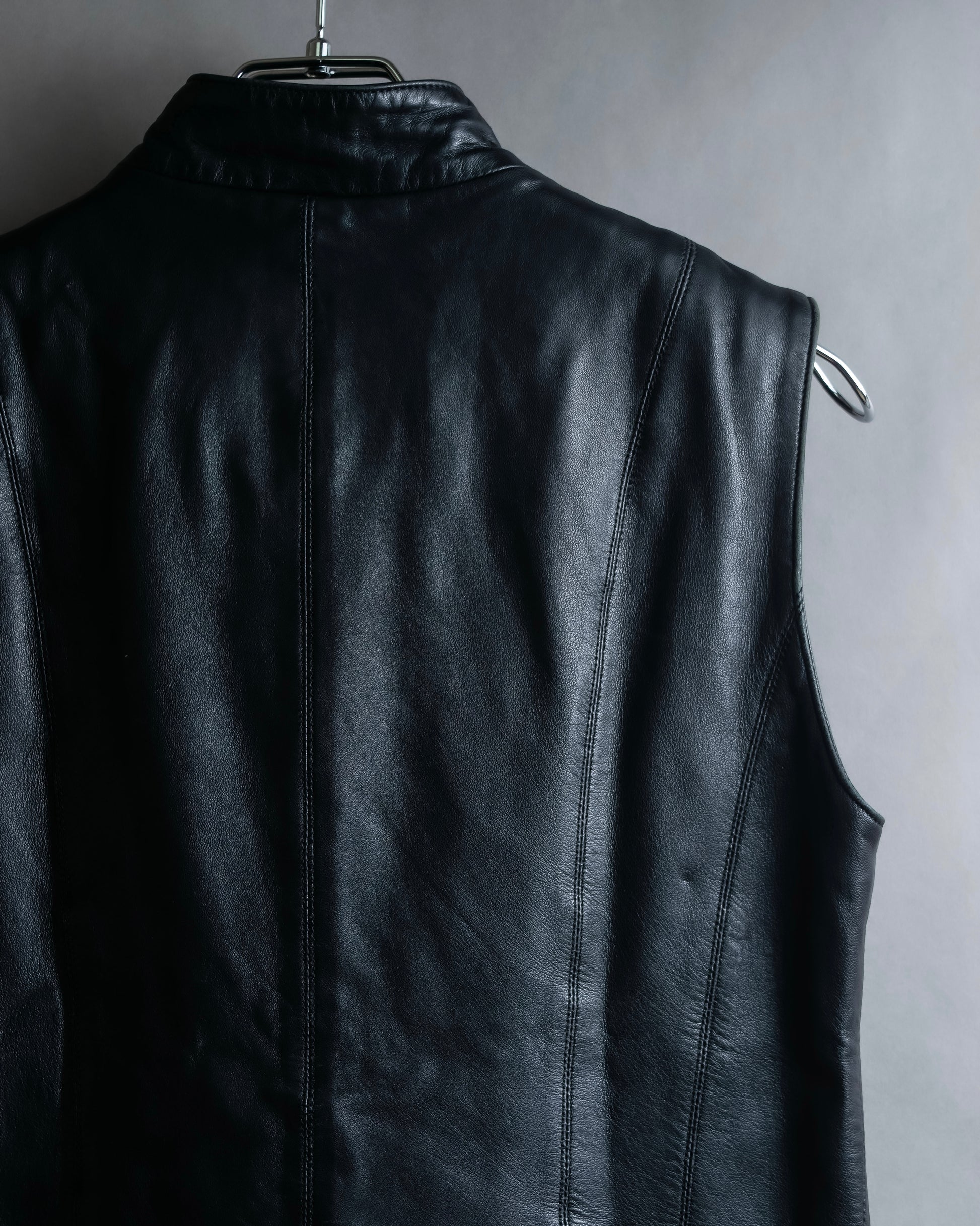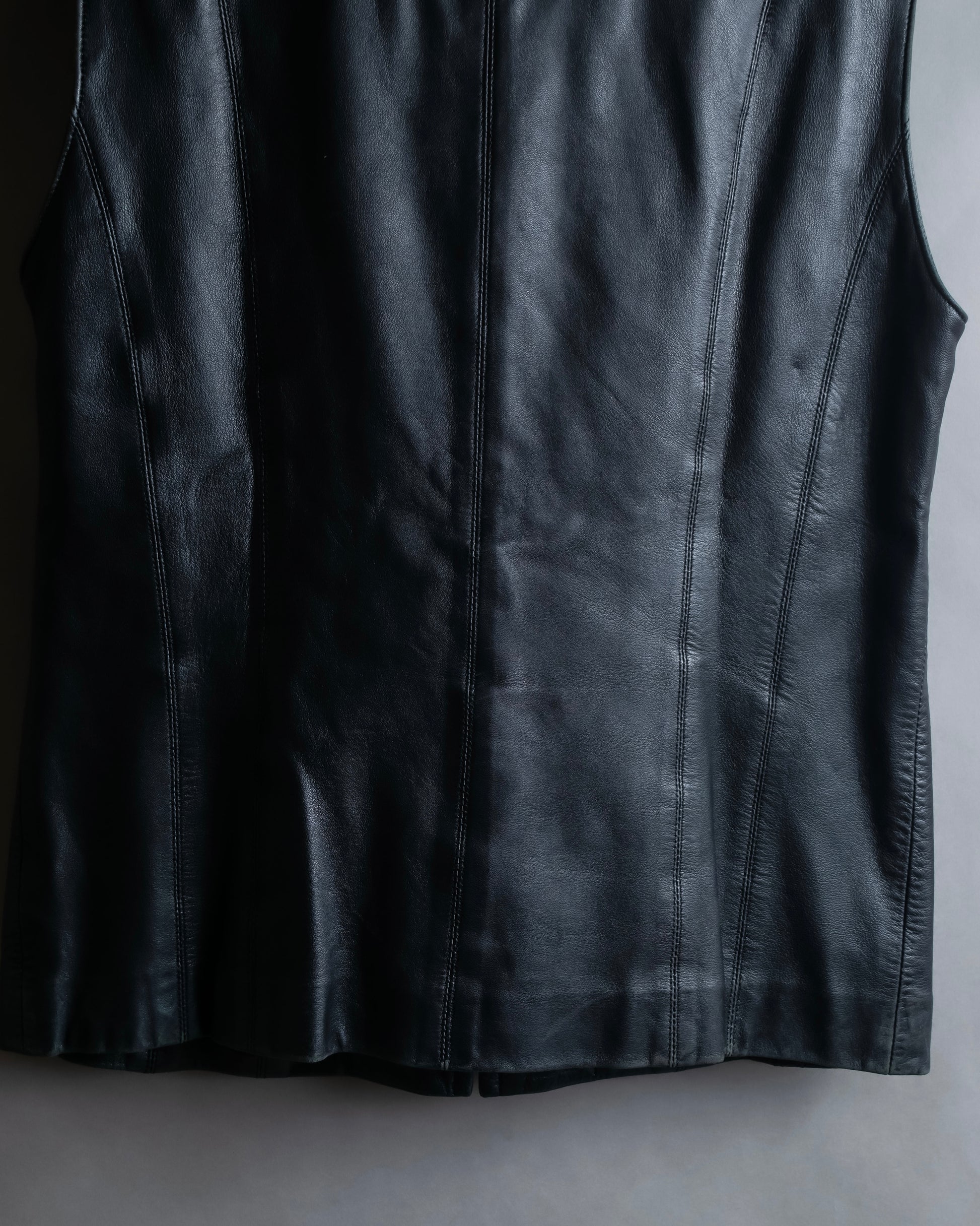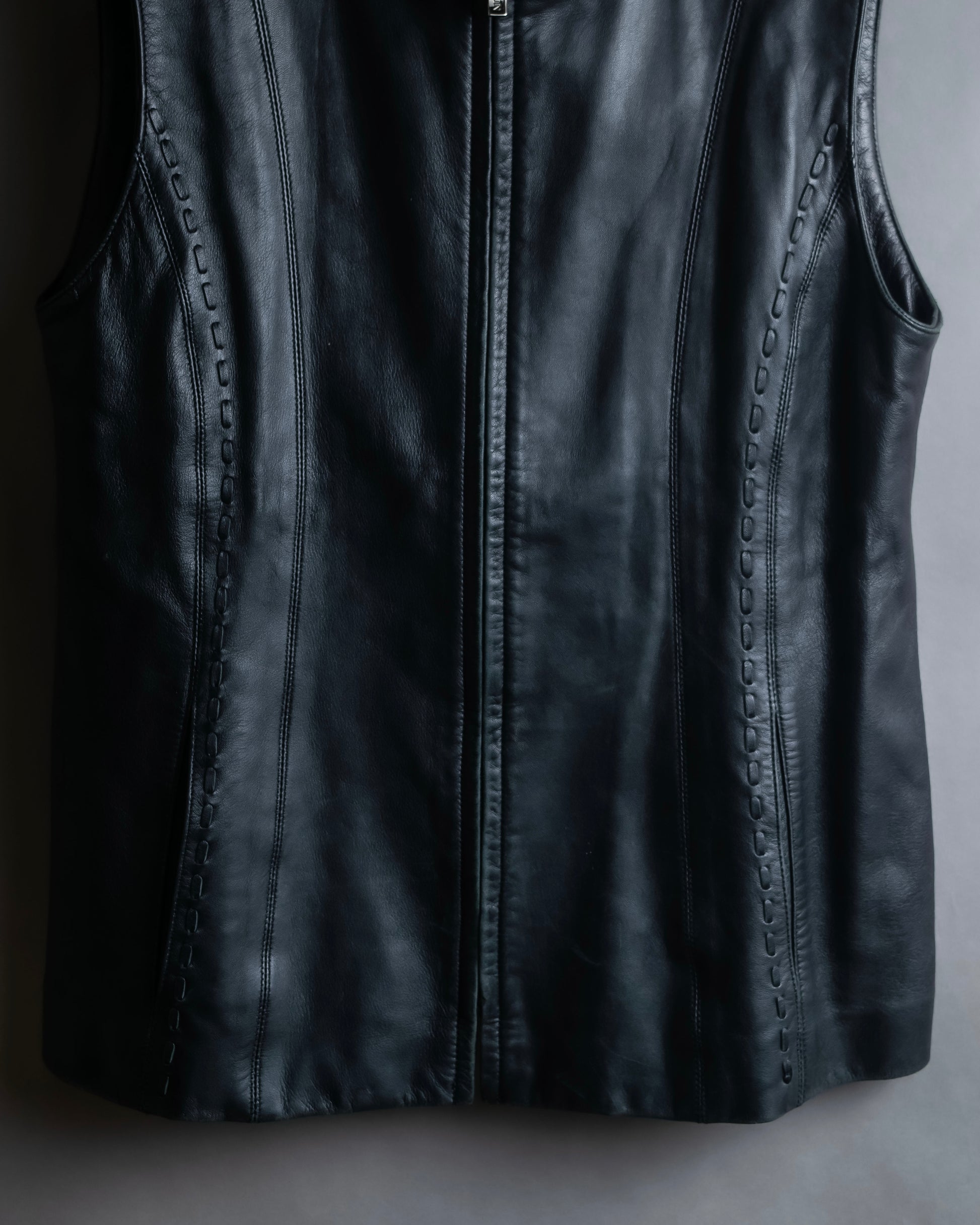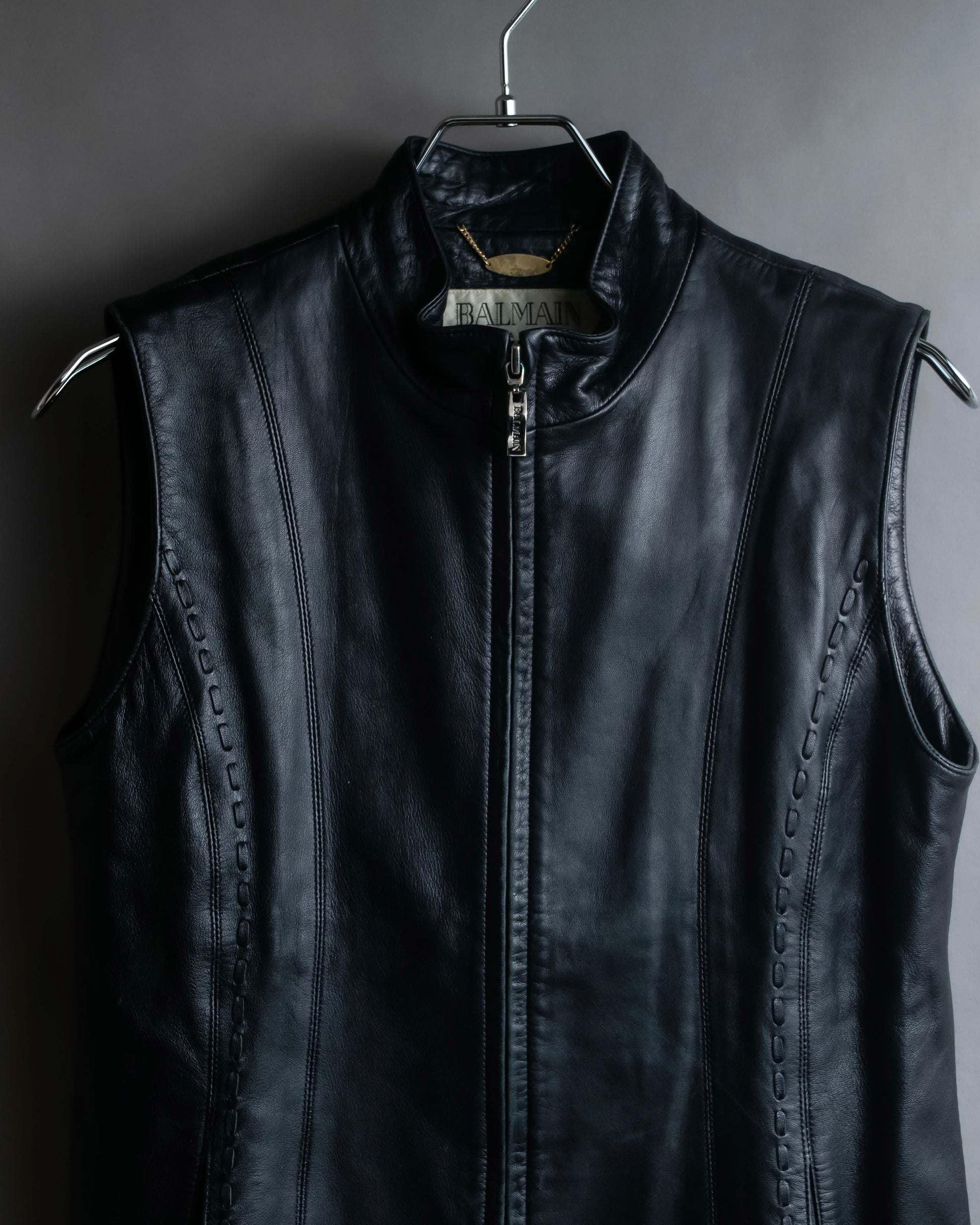 "BALMAIN" Braided detail lamb leather zip-up vest