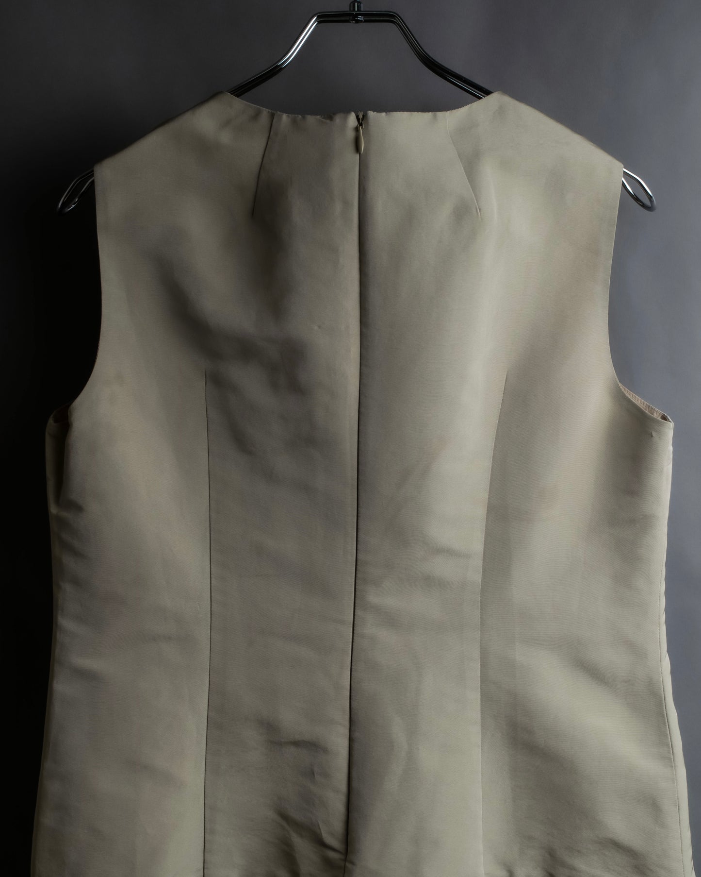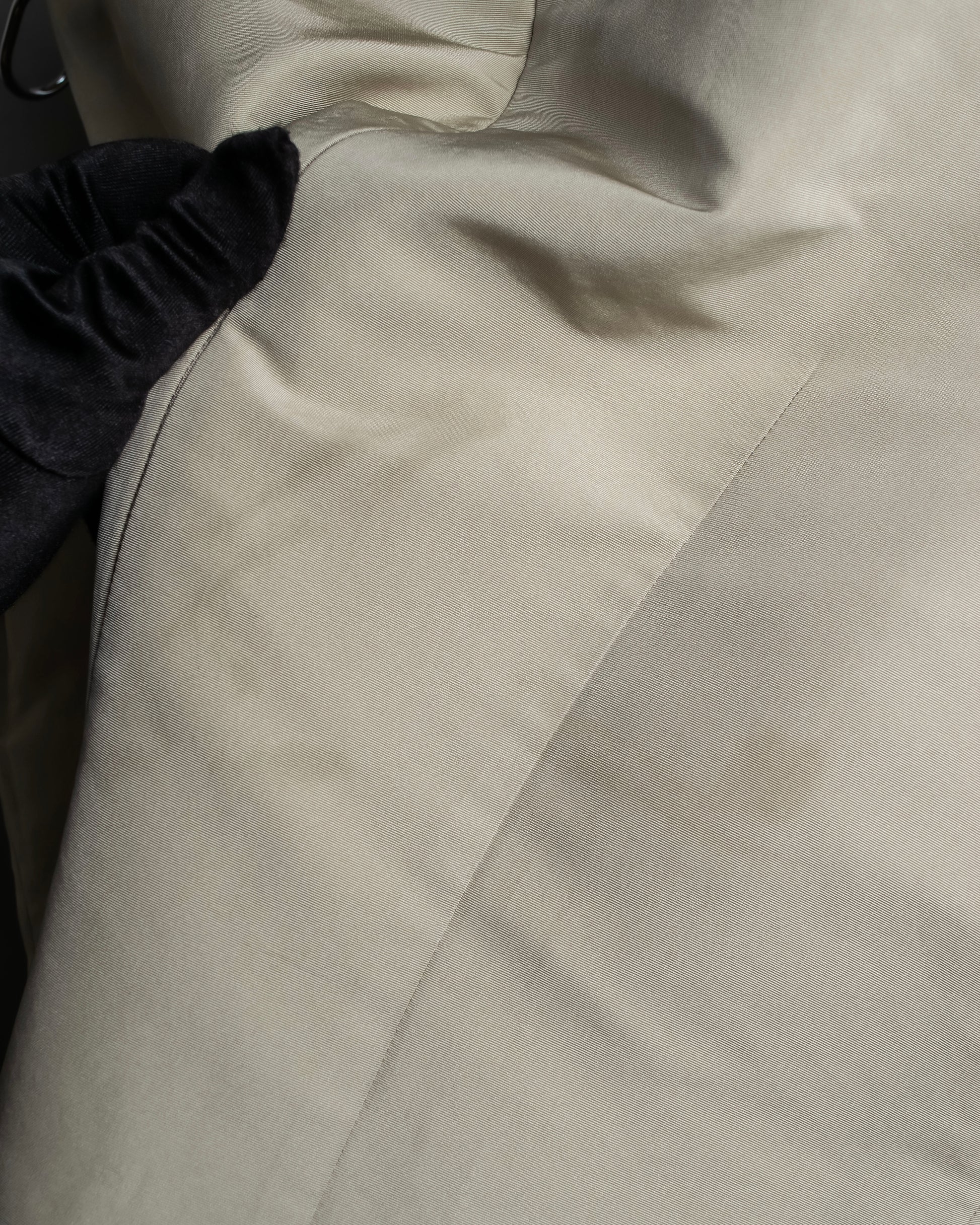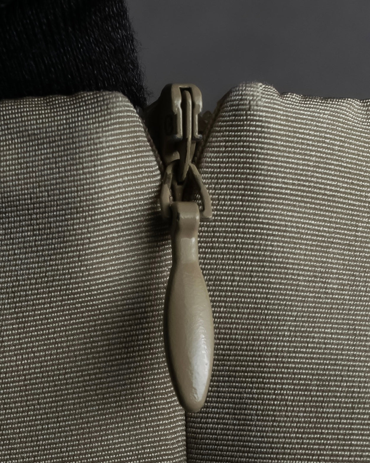 バックにはミニマルなファスナーが配され、後ろ姿まで洗練された佇まいに。しっかりとしたハリのある生地感が美しいフォルムをキープし、着用するだけで立体的なシルエットを楽しめます。