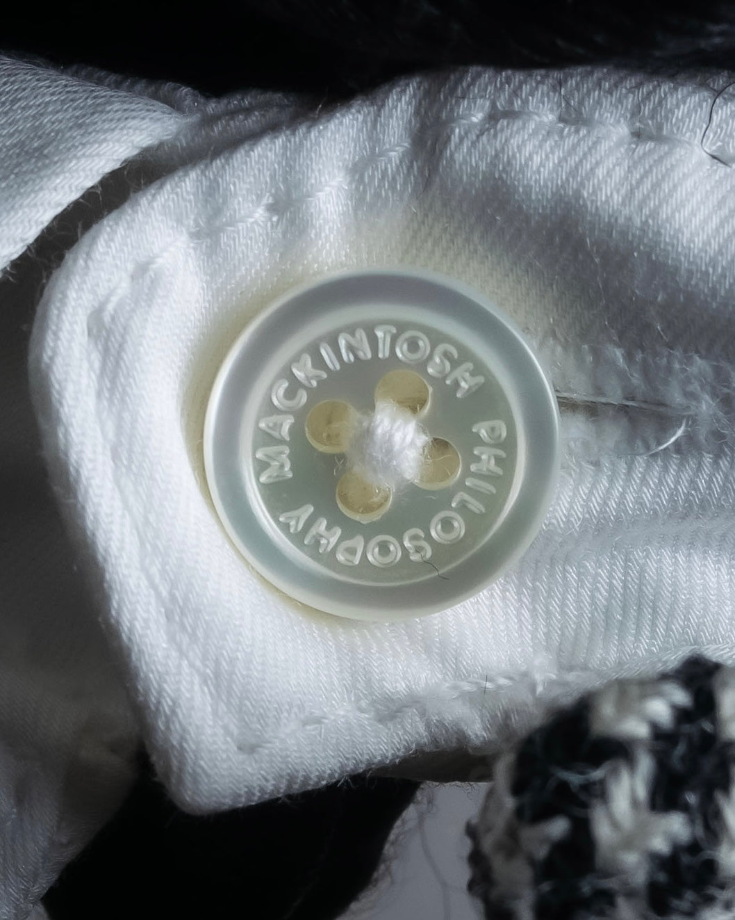 スタイリングとしては、シンプルなローファーやミニマルなパンプスと合わせると、よりクラシックな雰囲気が引き立ちます。また、アクセサリーは控えめに、パールのイヤリングやシルバーのブレスレットをプラスすると、華美になりすぎず、マッキントッシュらしい洗練された印象を演出して頂けます。