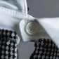 グレンチェック柄を基調とした上質なテキスタイルが特徴で、ブラックとホワイトのコントラストが絶妙なバランスを生み出しているこちらの逸品。
