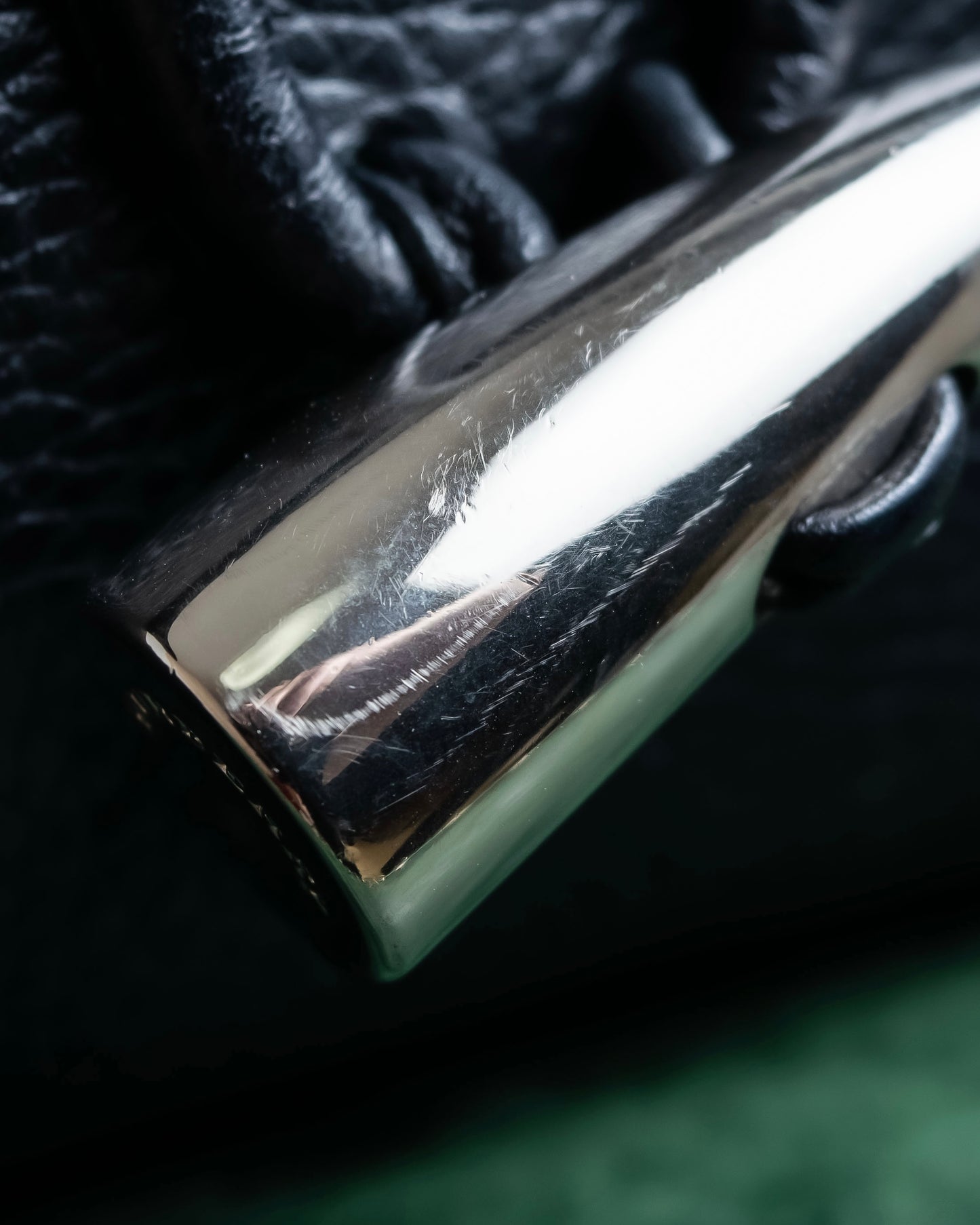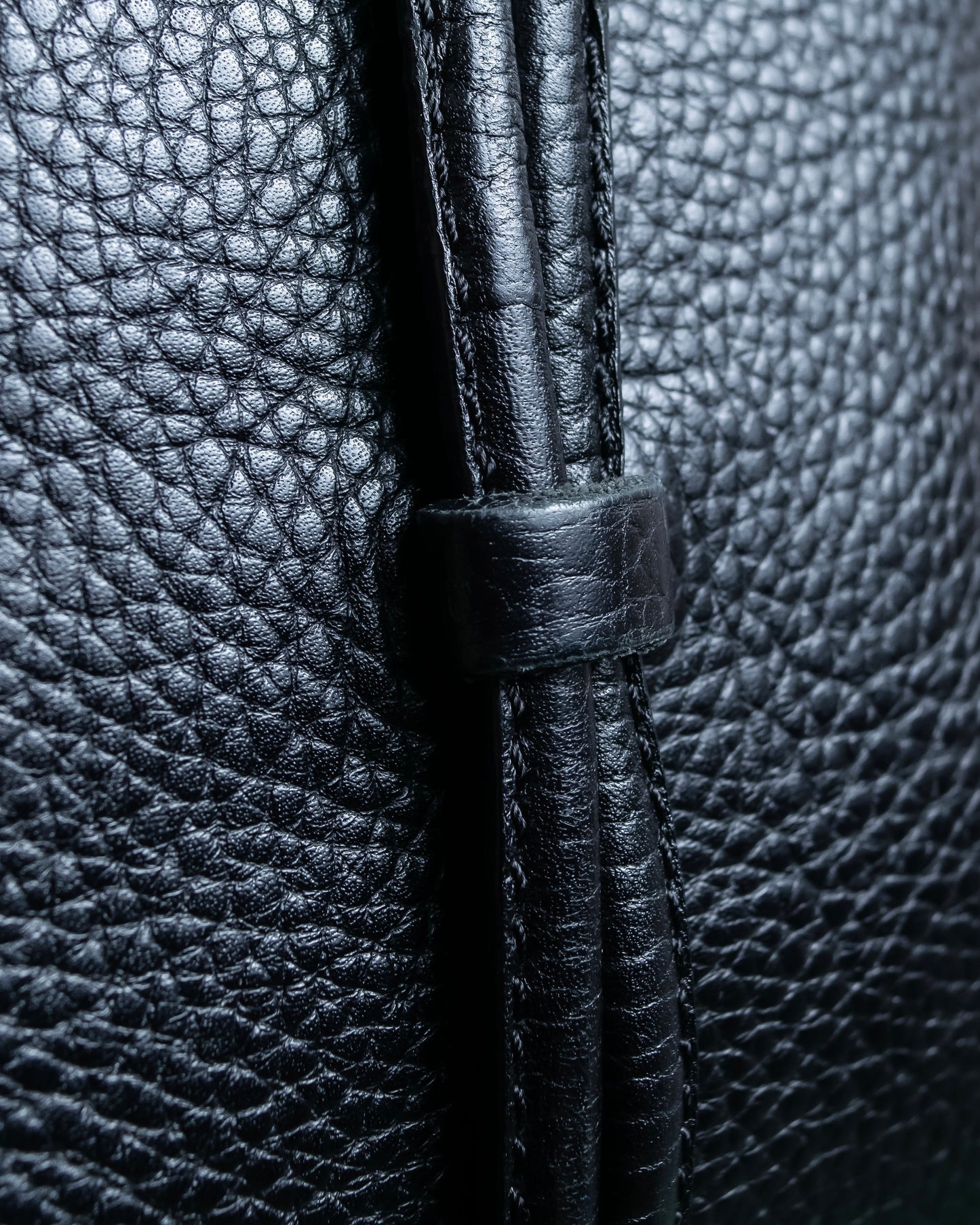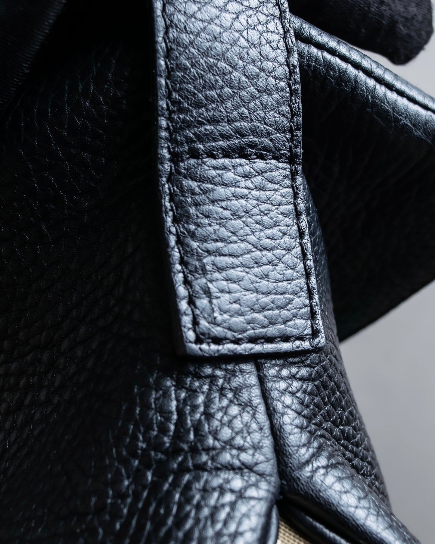 シボ感のあるレザーを使用している為、特殊な収縮加工による影響で、通常の革と比べて同じ面積でも密度が高くなり、耐久力も向上する長く愛用して頂きやすい素材感が特徴で、立体的で奥行きのある表面が、スタイリングのアクセントとなるのも魅力的です。