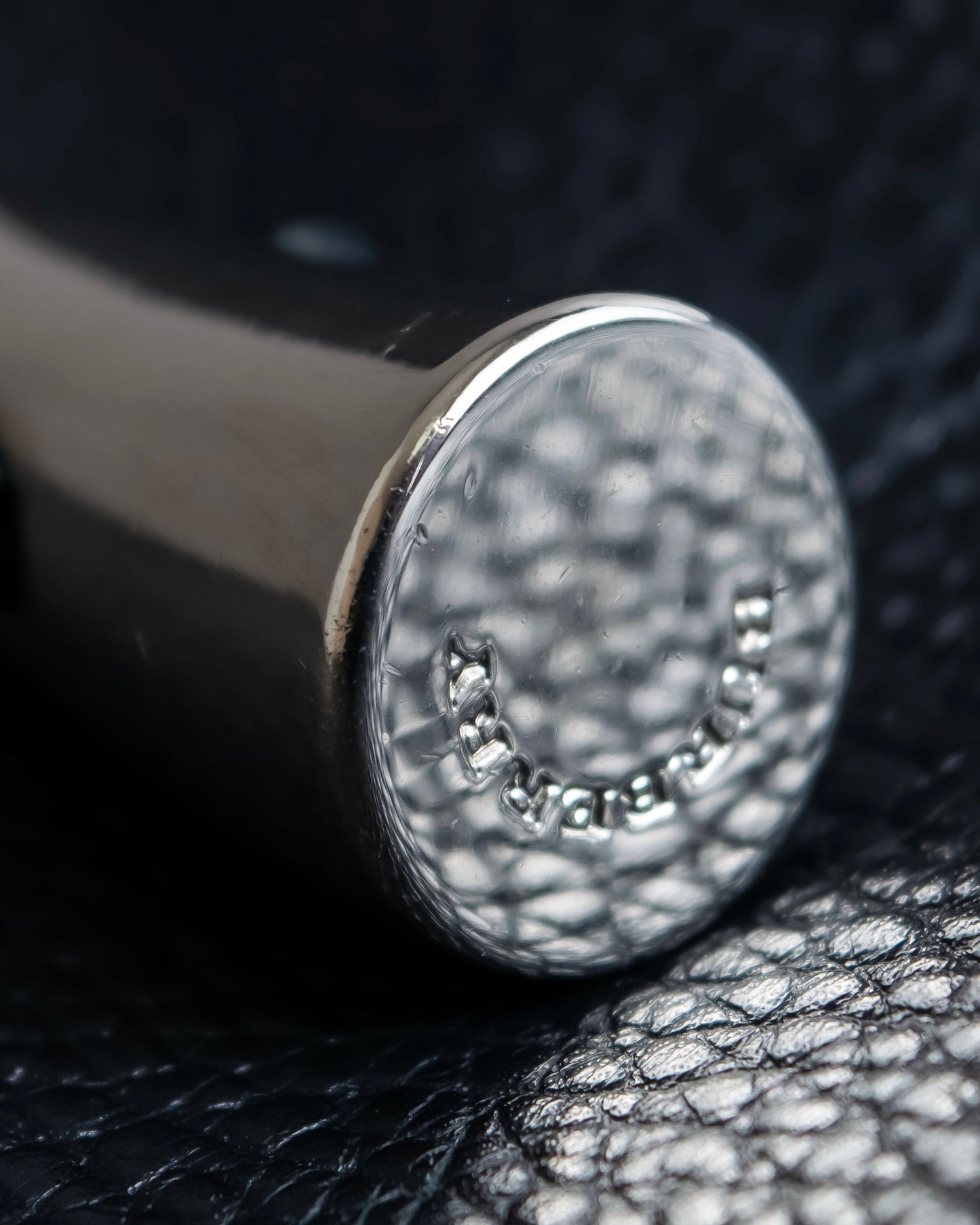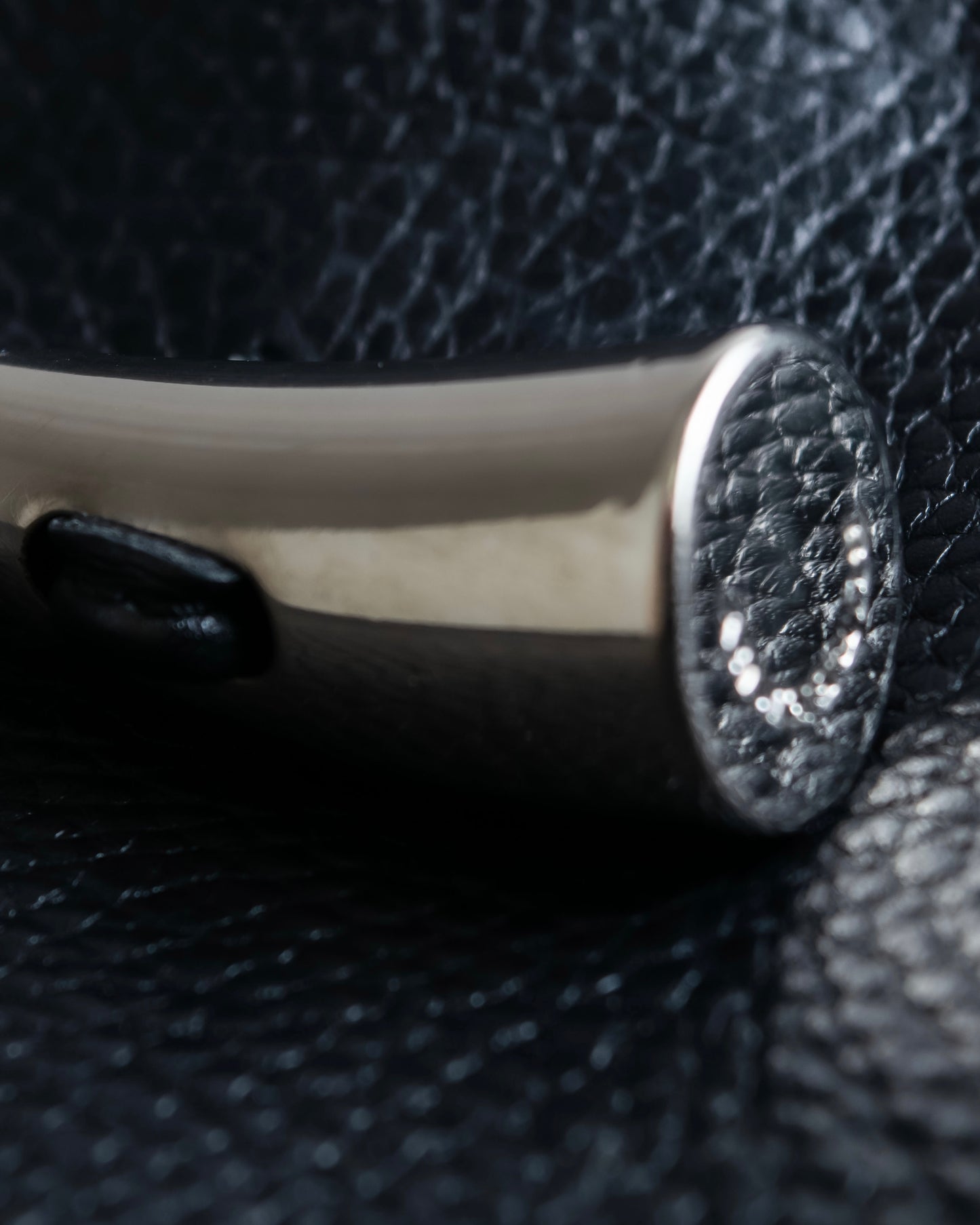 アンティーク調のシルバーパーツを施したレザーロープで縛って留めるというユニークなギミックが備わっており、伝統的な工芸品を思わせるデザインに、遊び心が加わった特別感のあるアクセントを演出して頂けます。