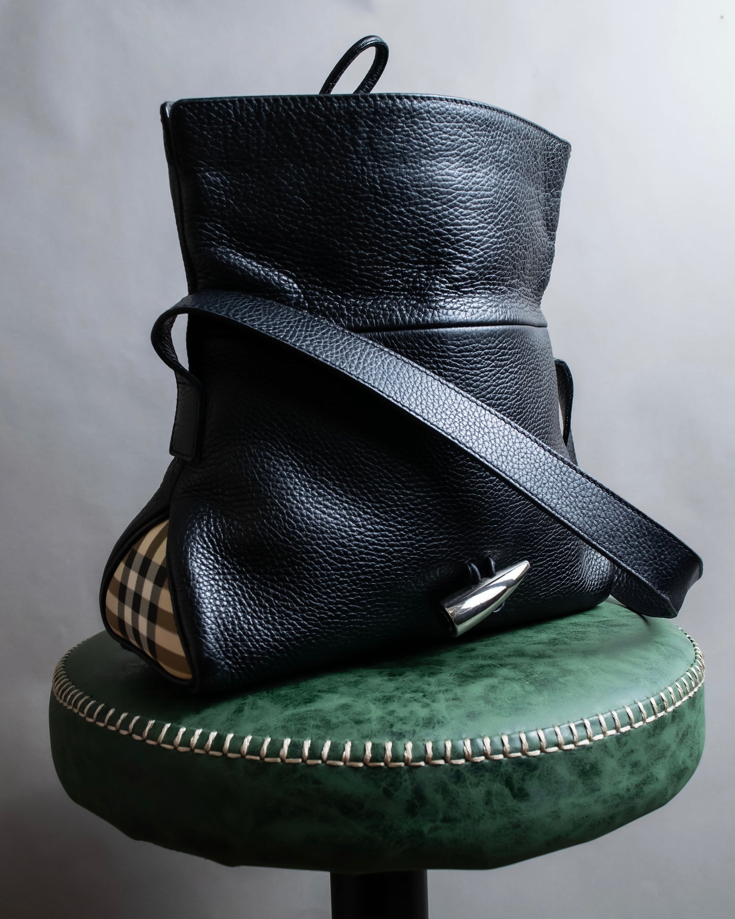 "BURBERRY" Silver parts rope fastening design leather crossbody shoulder bag