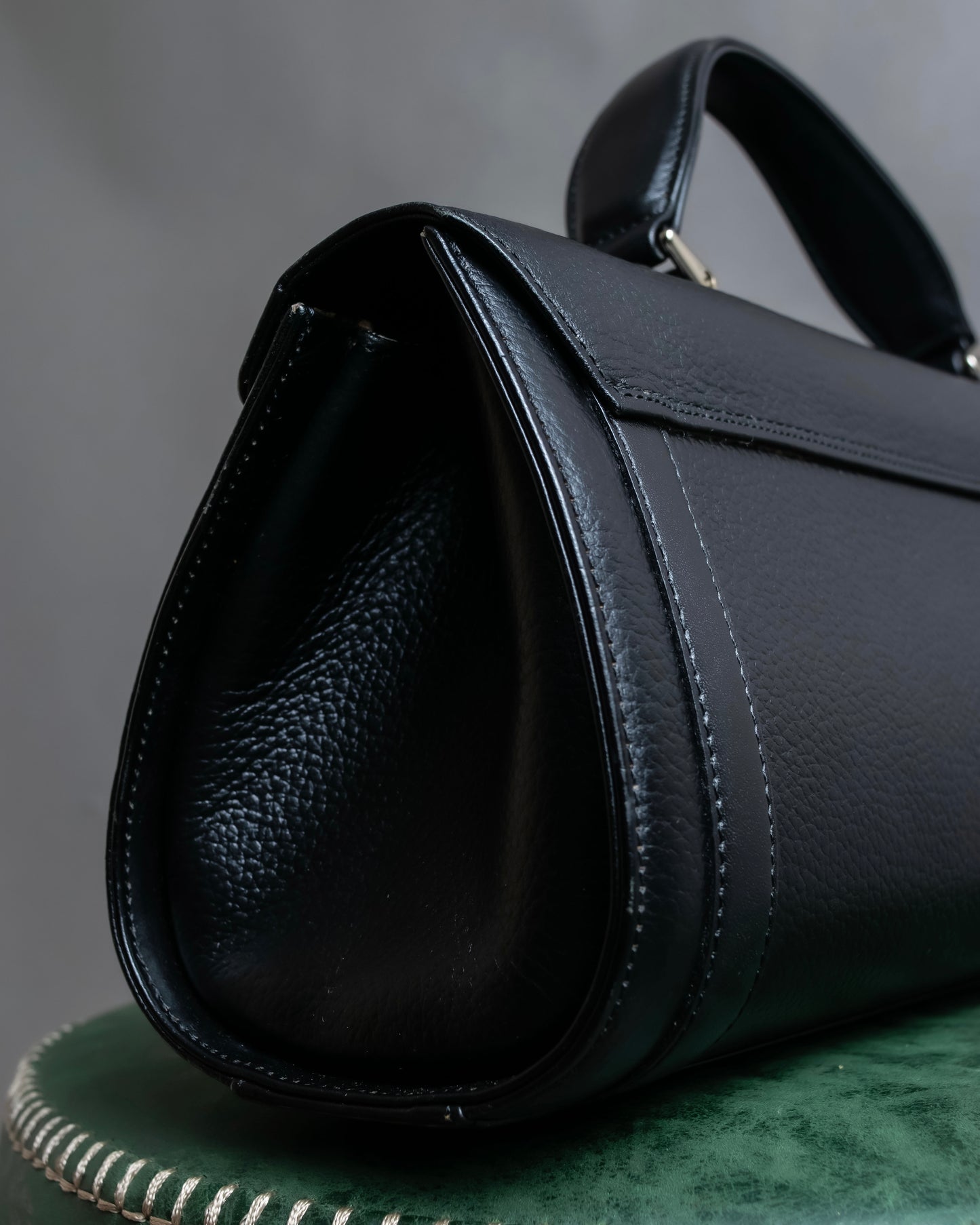 全体に使用されたシボ感のあるレザーが、バッグに立体感を与え、触れるたびに高品質な素材の魅力を感じて頂ける特徴を持ちつつ、傷に強い耐久性にも優れている為、長く愛用して頂ける素材表現を持ち合わせております。