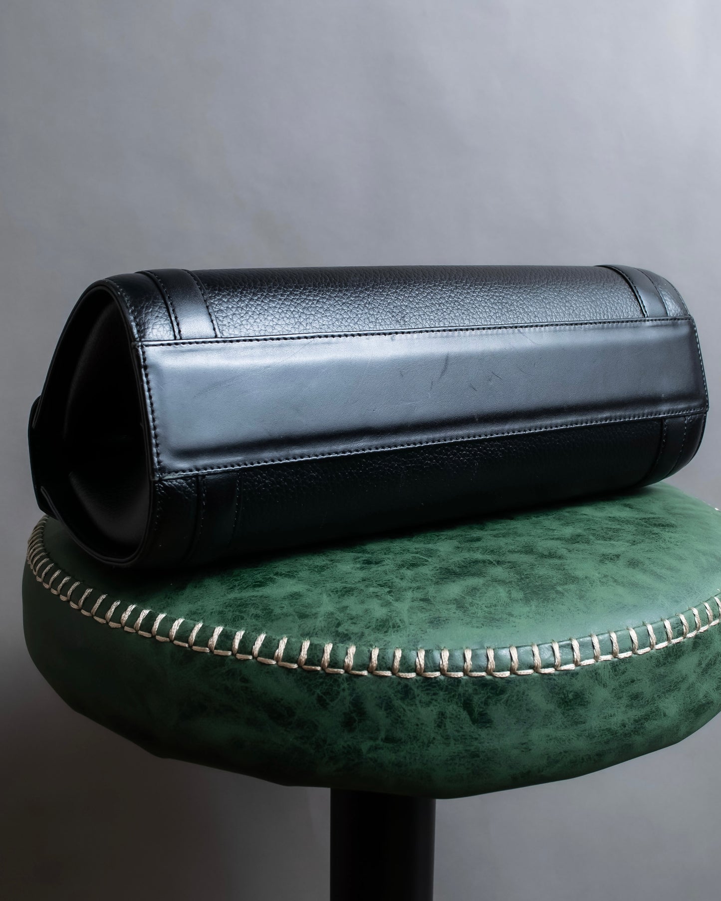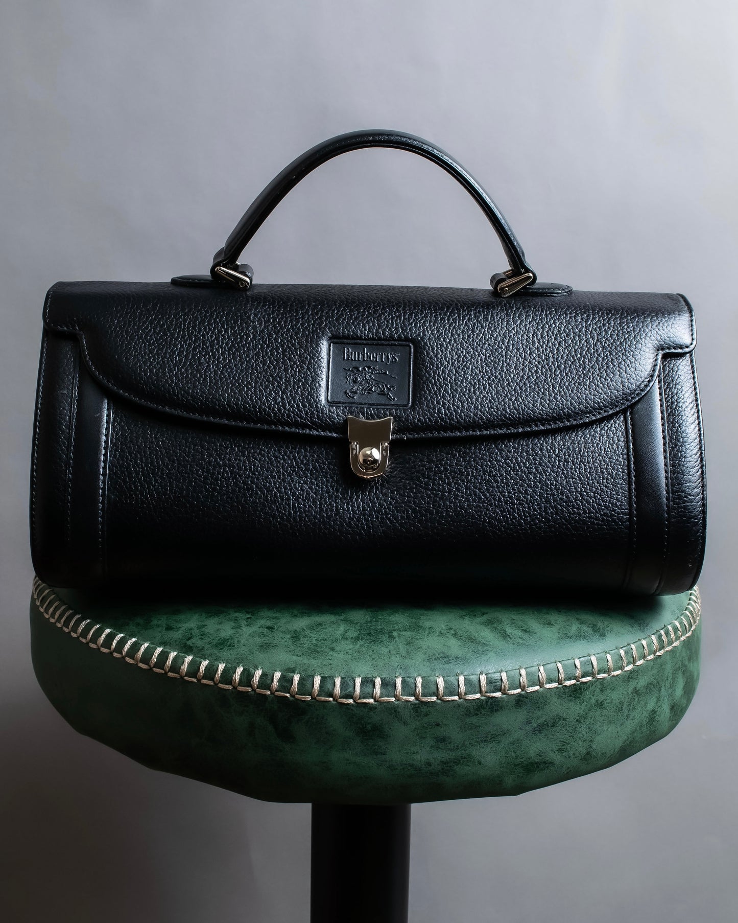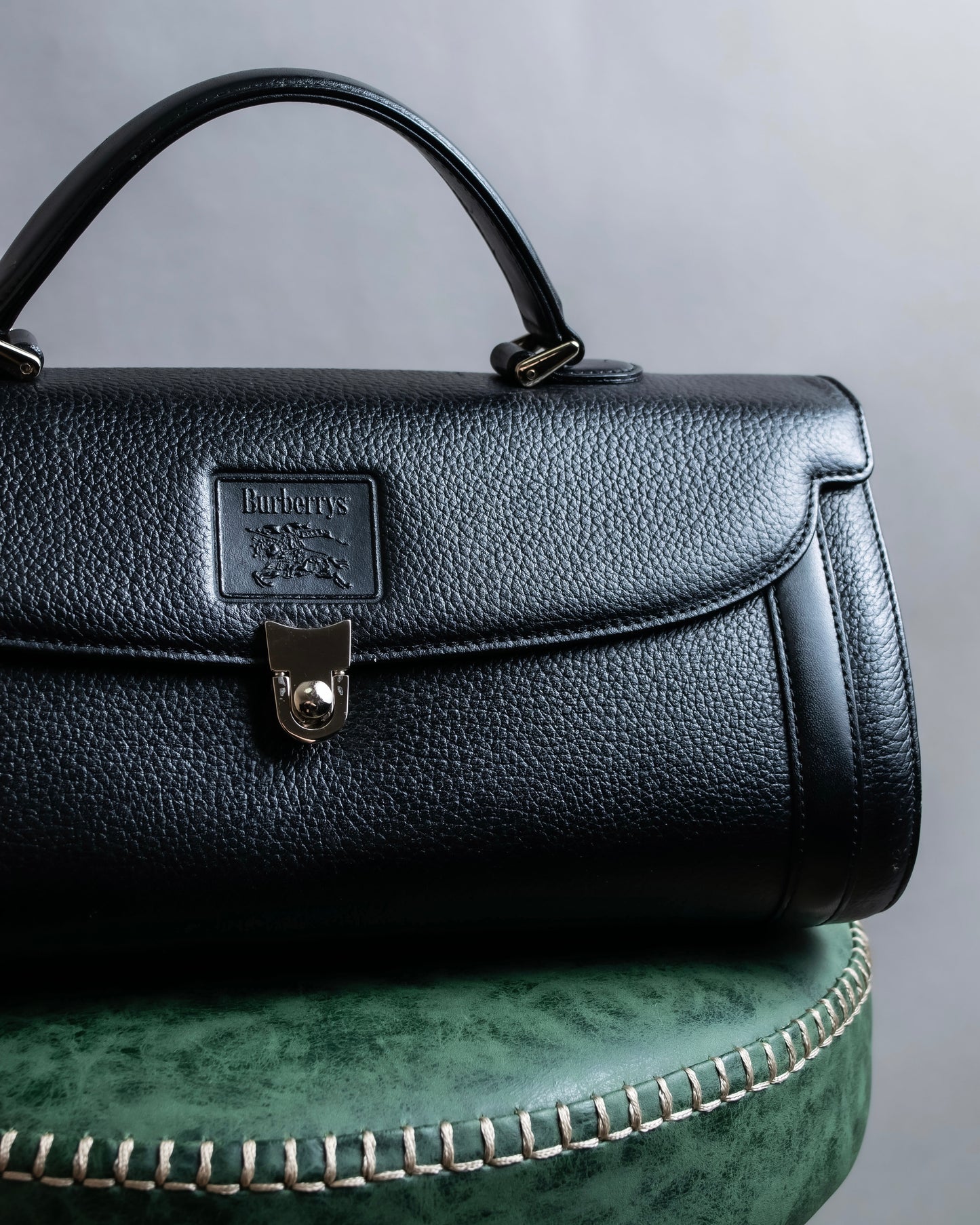 "BURBERRYS" Cylindrical design logo engraved leather one handle bag