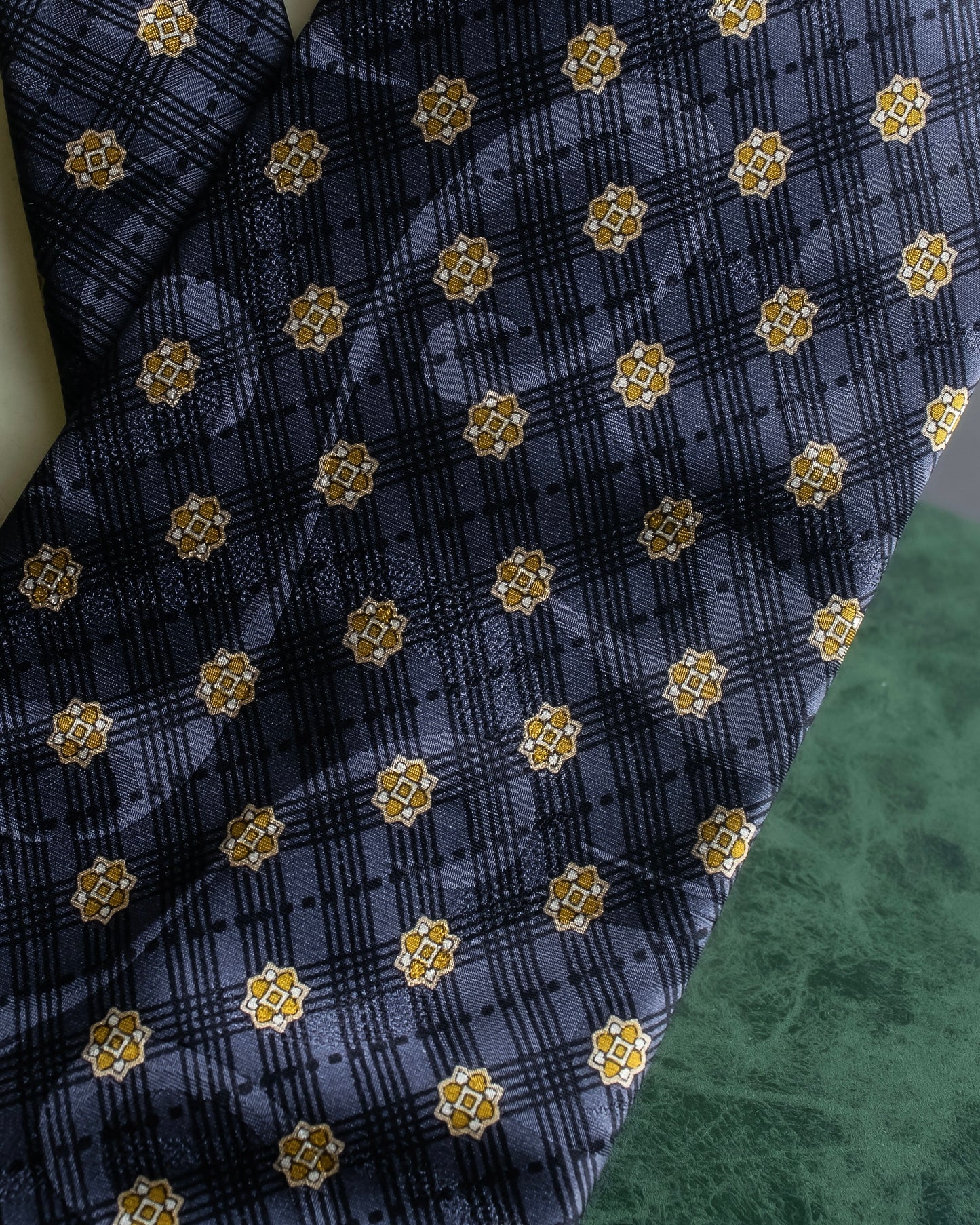 "Vintage check&floral pattern silk neck tie"