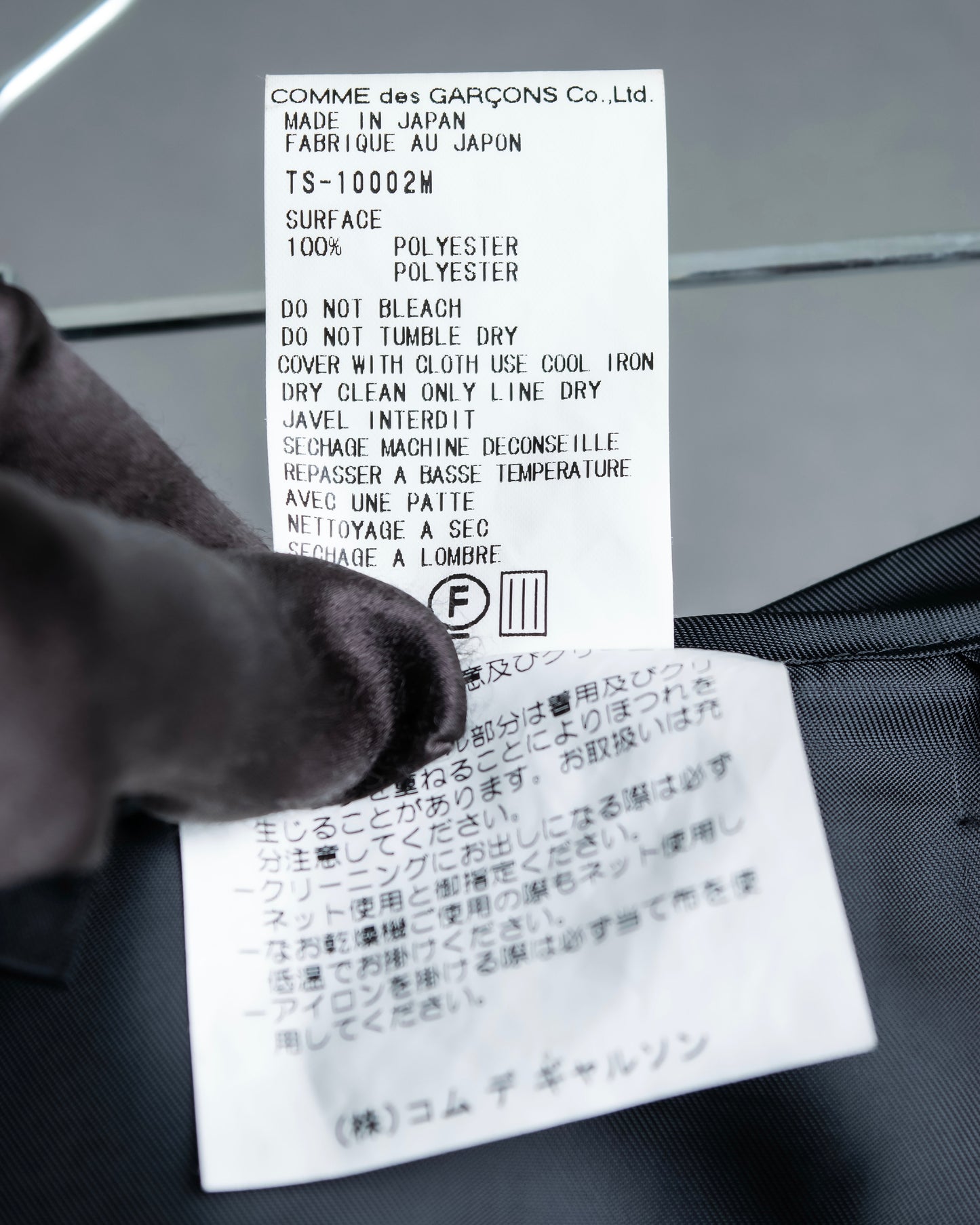 生地感はポリエステル100%の、さらっとした光沢感のある素材使いで、Comme  des Garçonsらしいモードで上品な雰囲気をお楽しみ頂けますね。