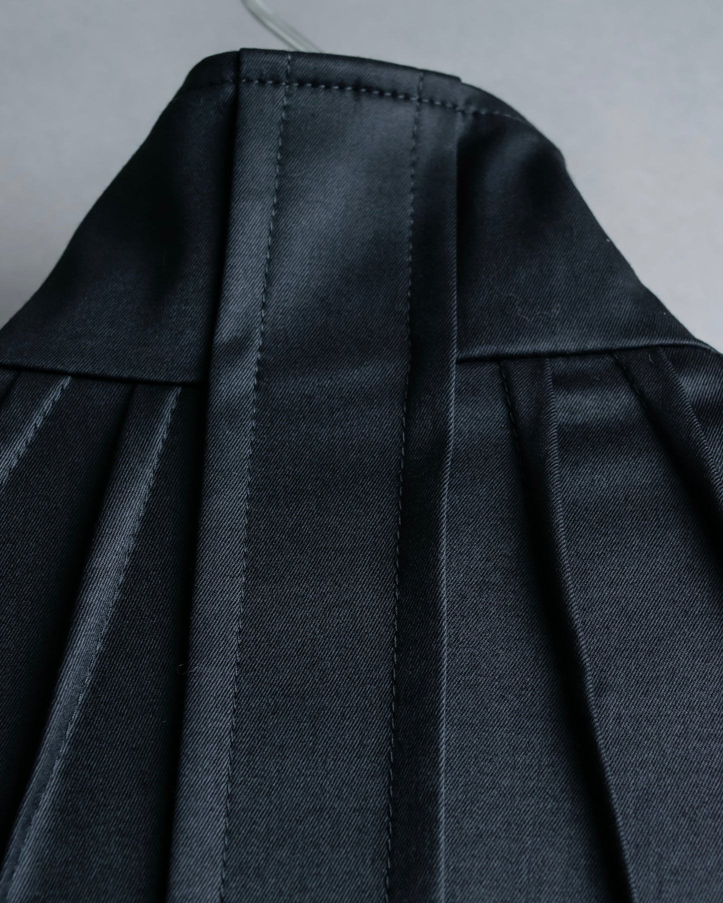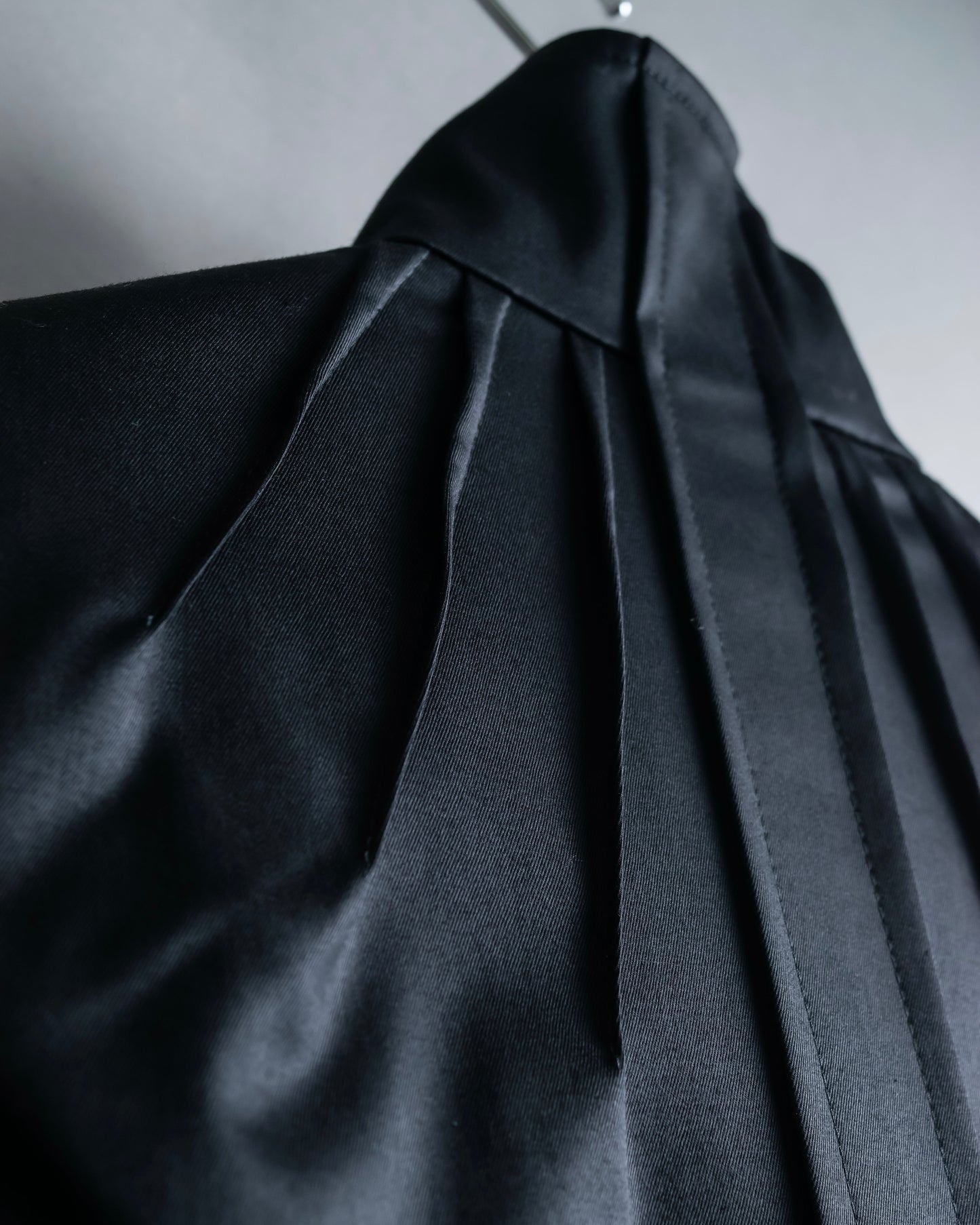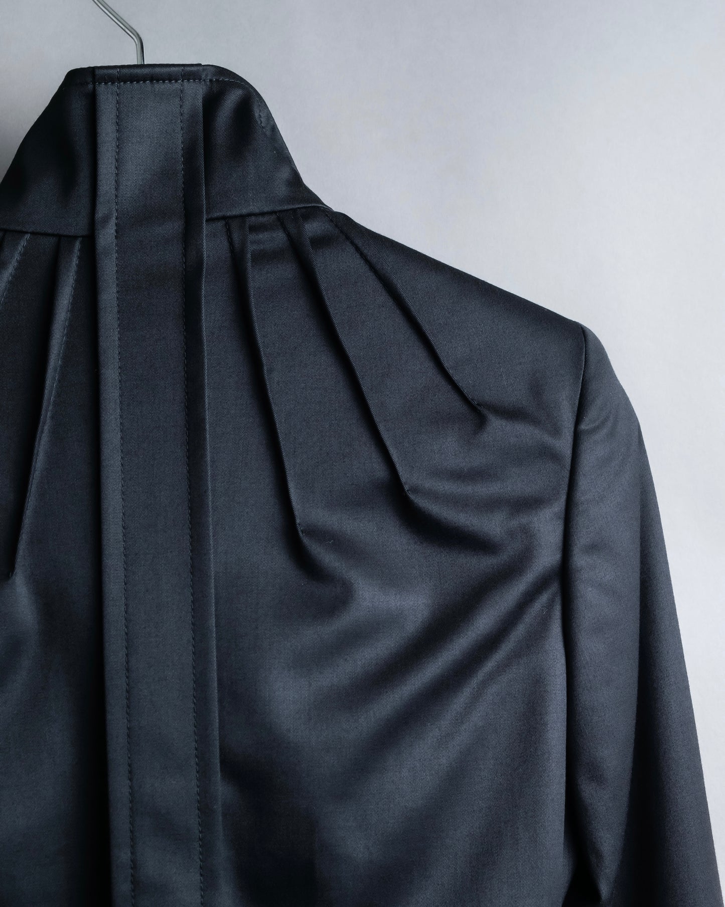 首周りが上品に仕上がるスタンドネック仕様となっている他、比翼仕立てのダブルジップになっている為、