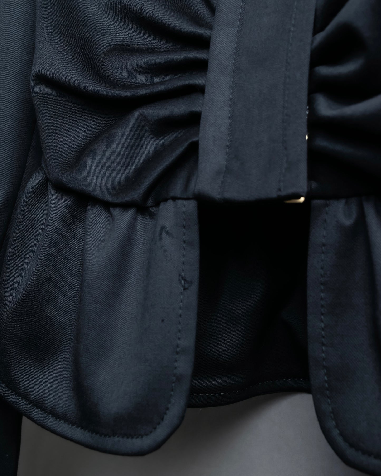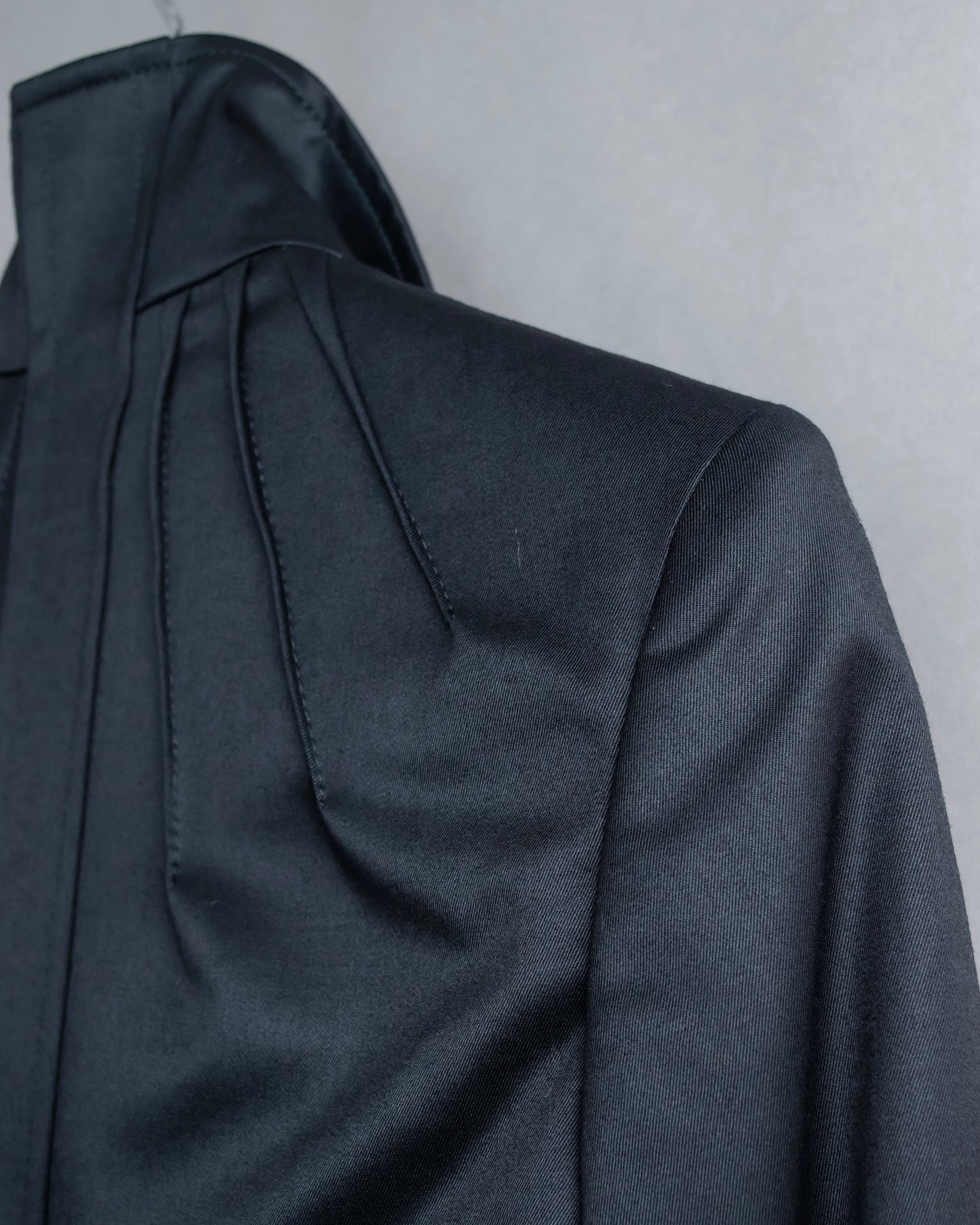 肩幅はややタイトなデザイン、着丈は短く設定されている為、日常着としてお使い頂きやすくトレンドであるシルエットとなっております。