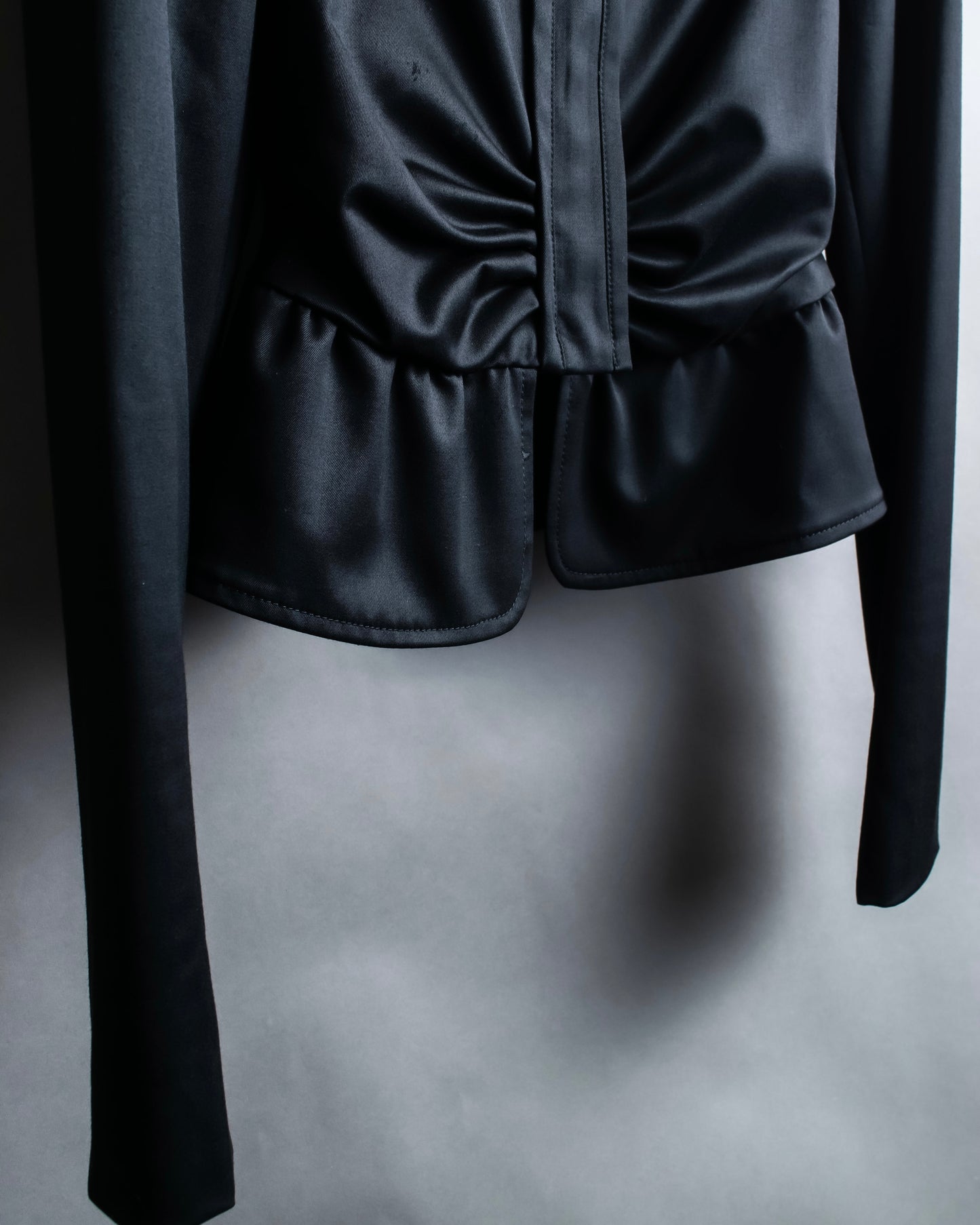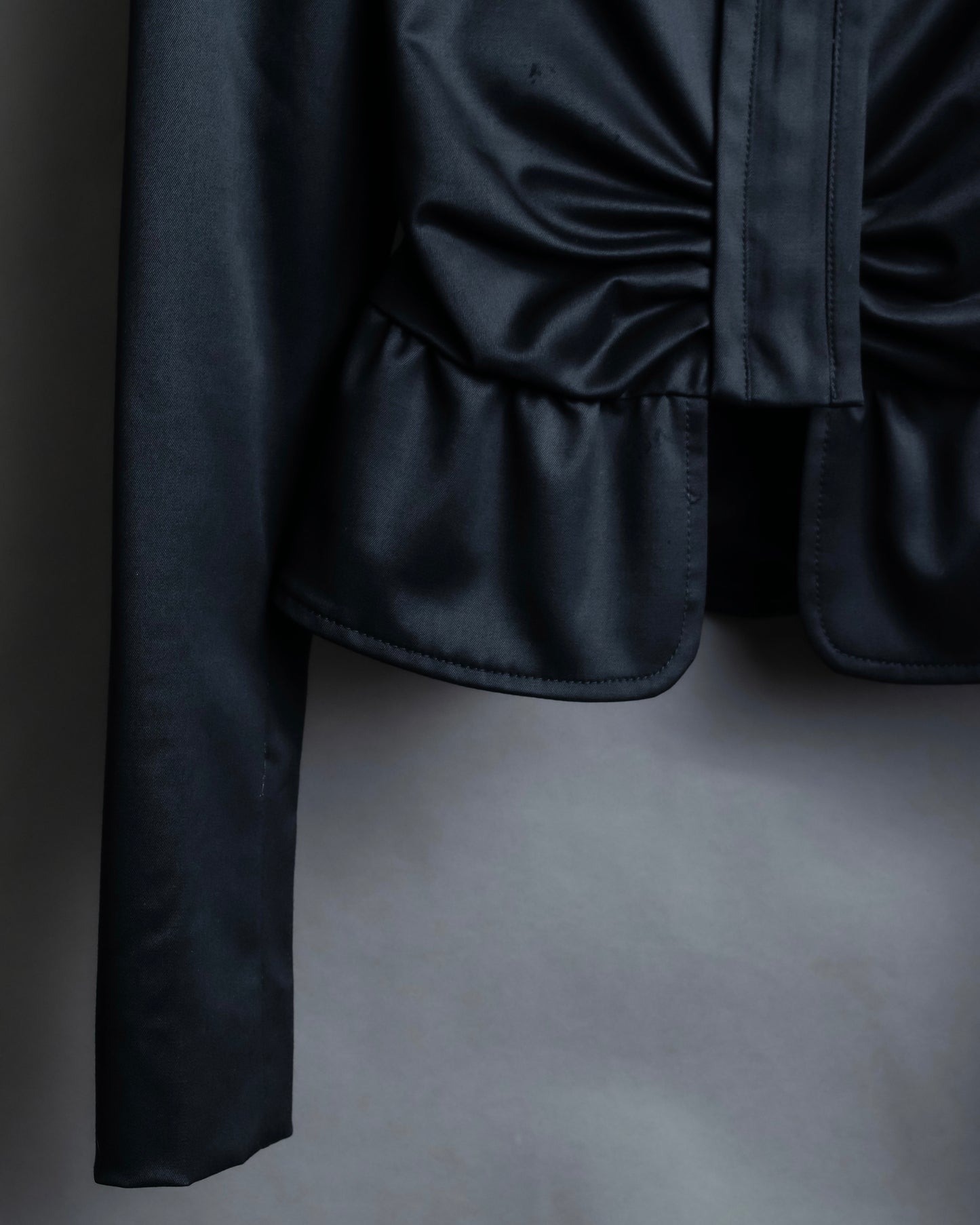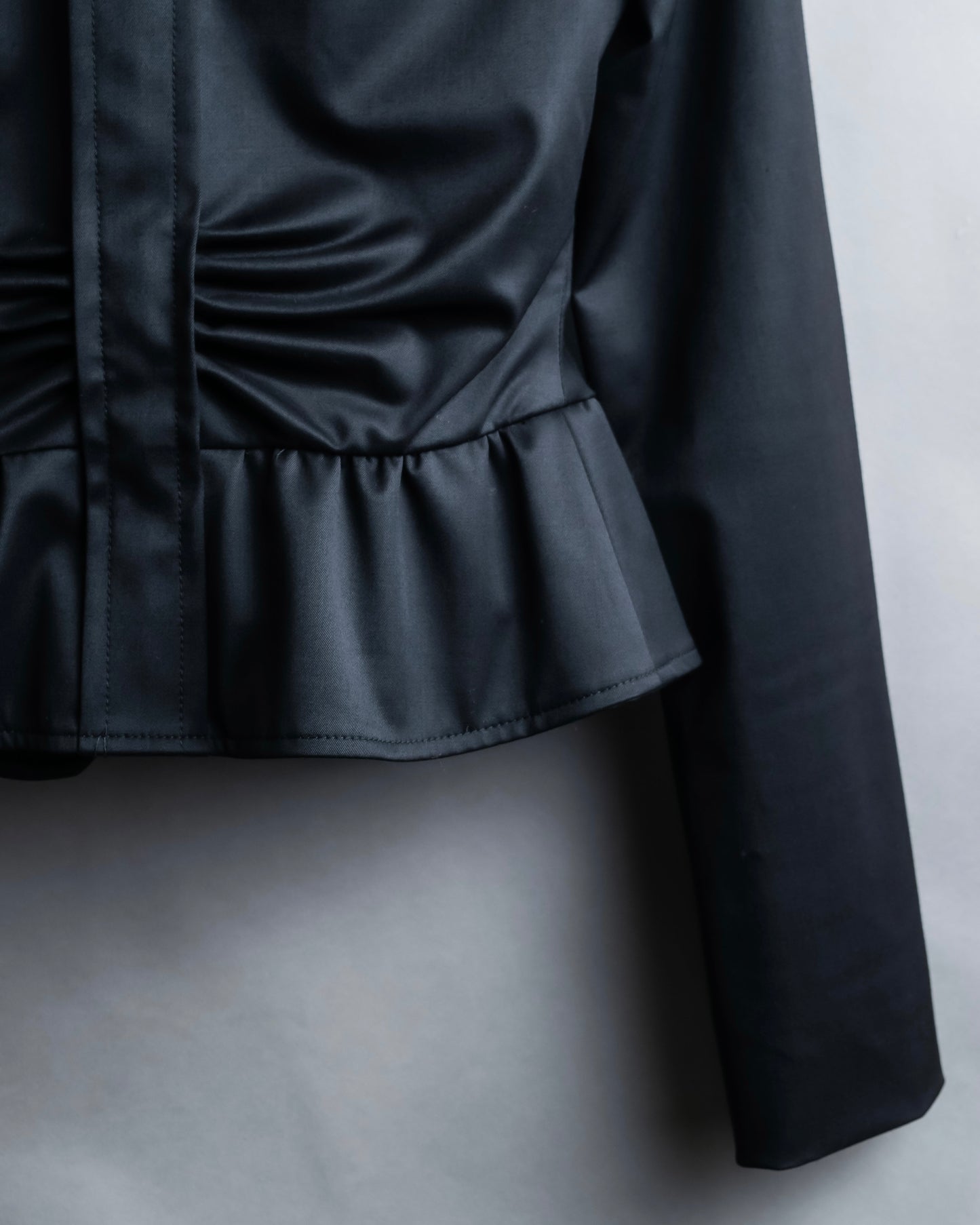 マスキュリンなイメージが強い黒いジャケットに良い塩梅にフェミニンな印象をプラスしています。