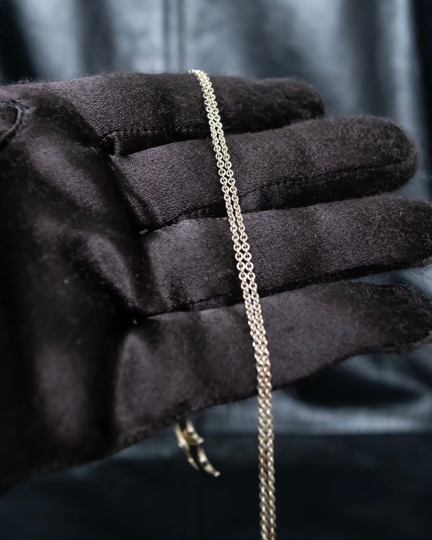 チェーンの長さは60cmと、やや長めの設定となっており、カジュアル使いしやすい印象に仕上がってると共に、レディースライクに寄り過ぎていないジェンダーを問わずお使い頂けやすい丈感となっております。