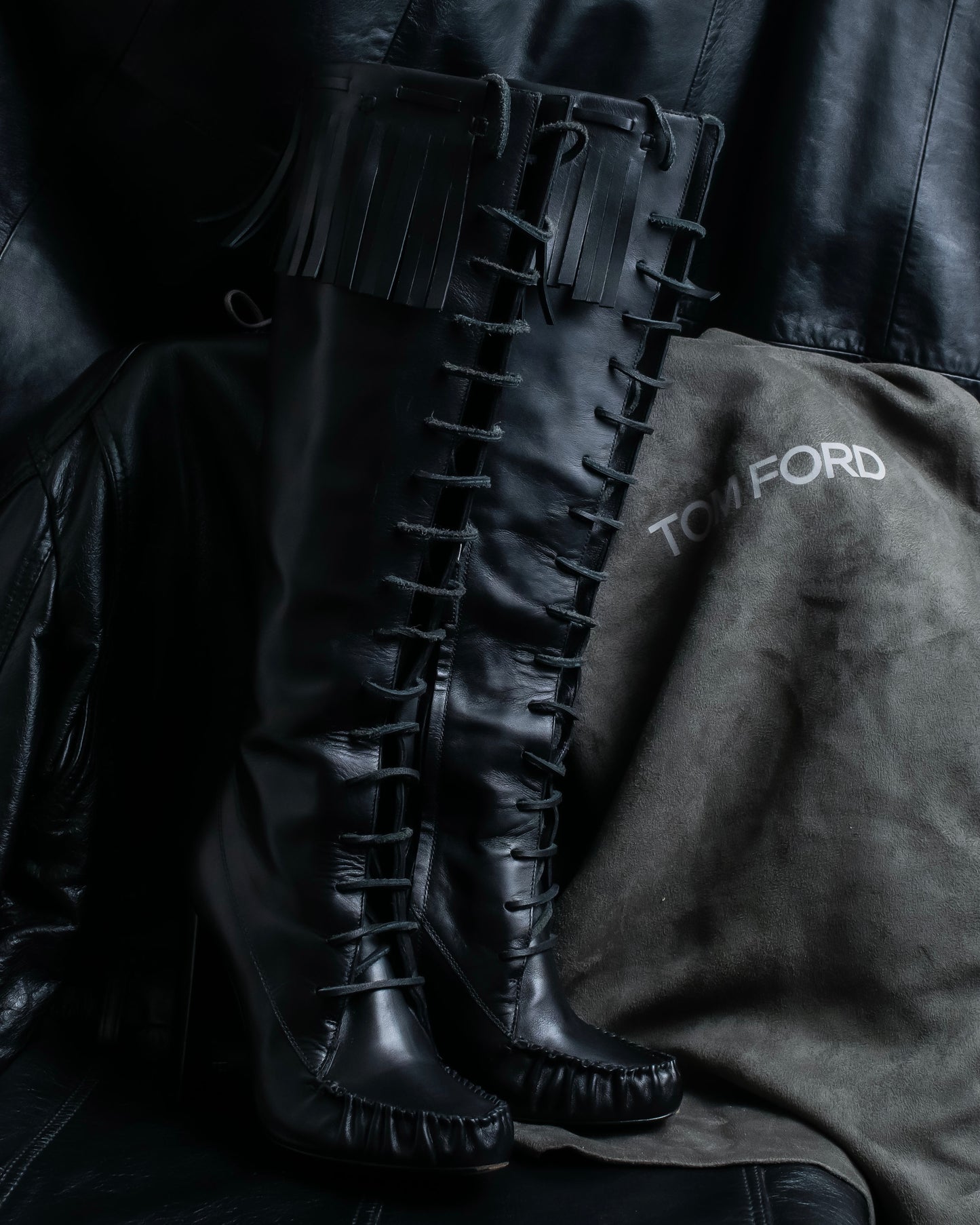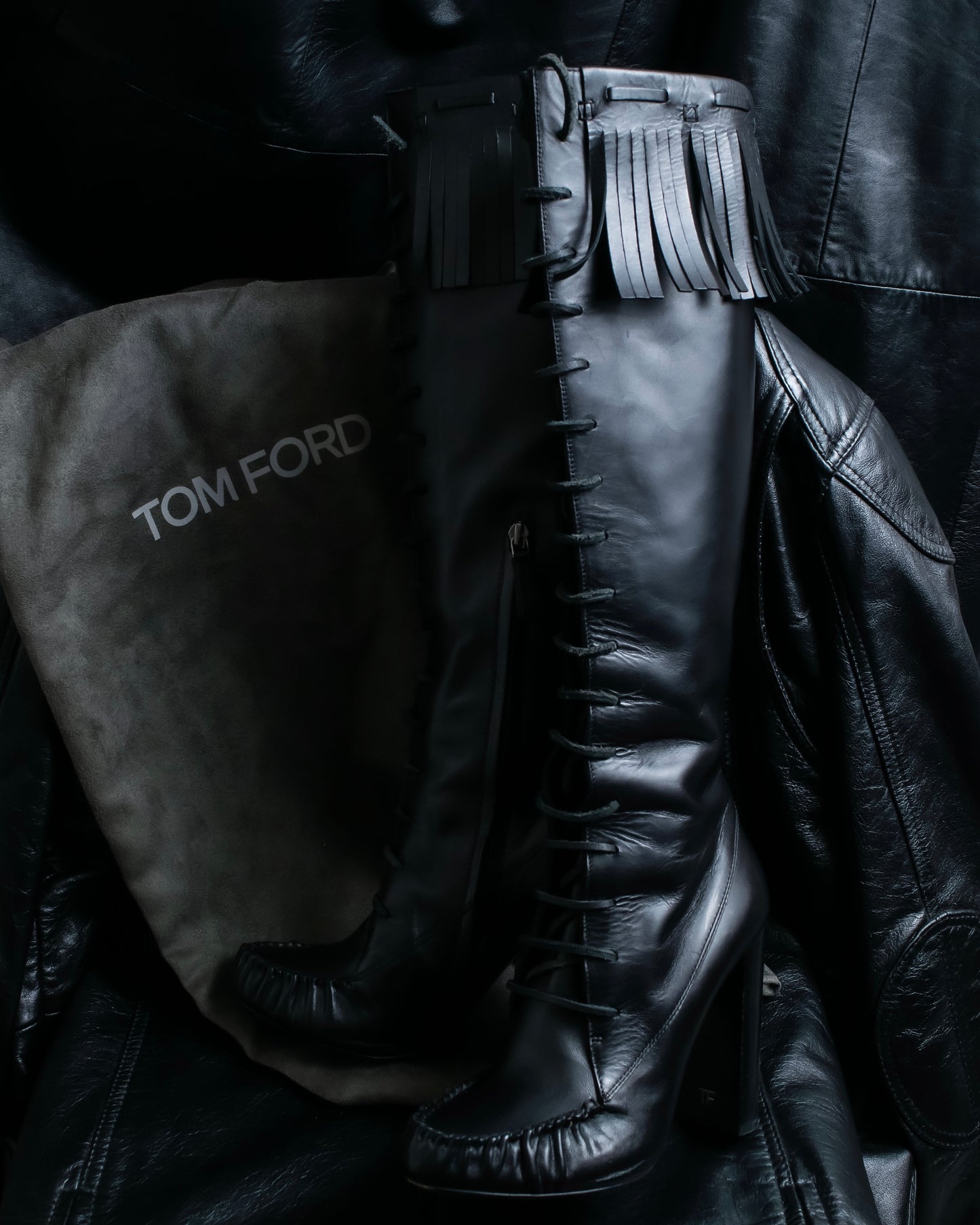 "TOM FORD" Fringe detail western long boots