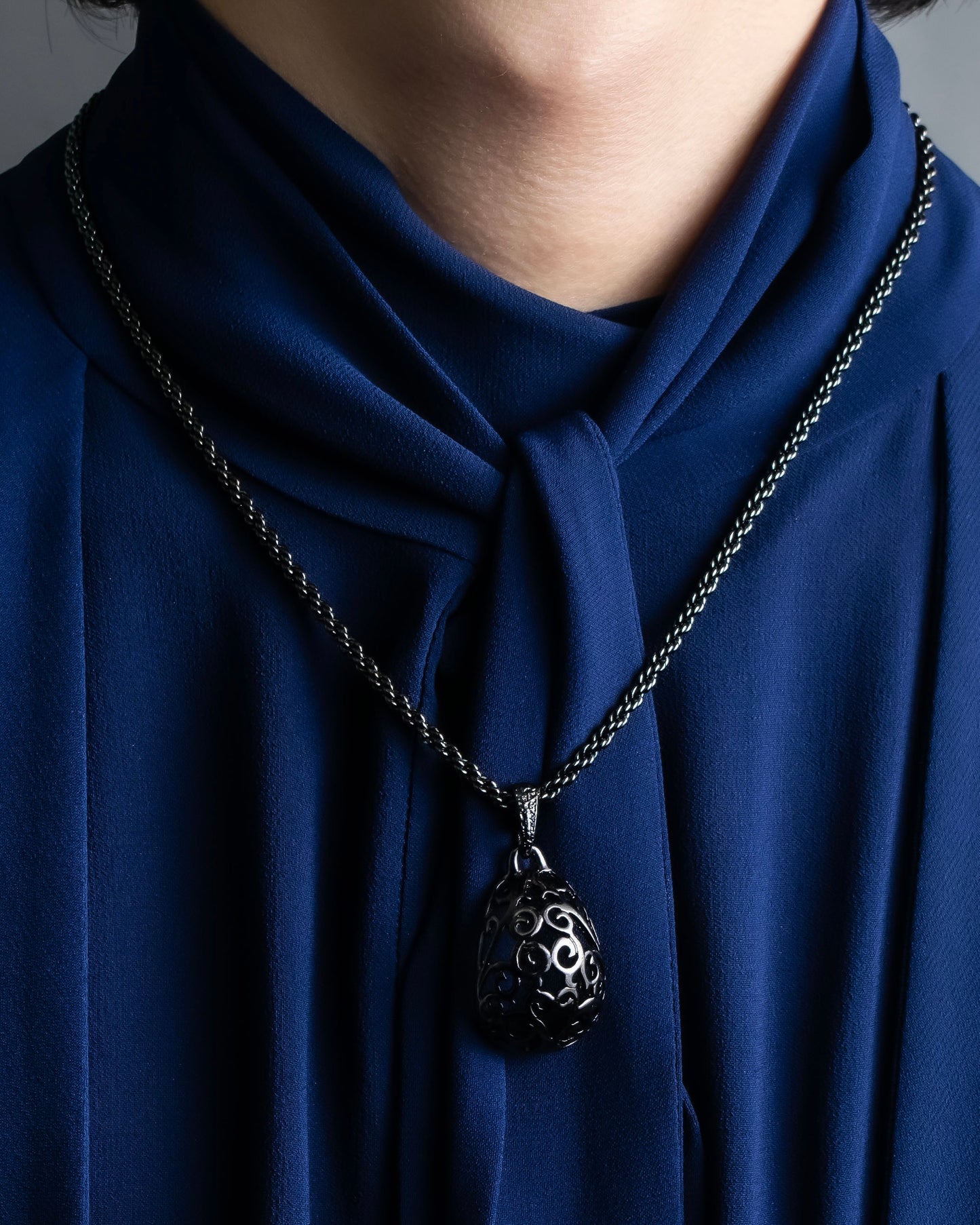 やや華奢な印象を受けますが、存在感のあるトップと、胸元を輝かせてくれる適度な長さとなっているので使いやすく身に着けやすい長さになっております。