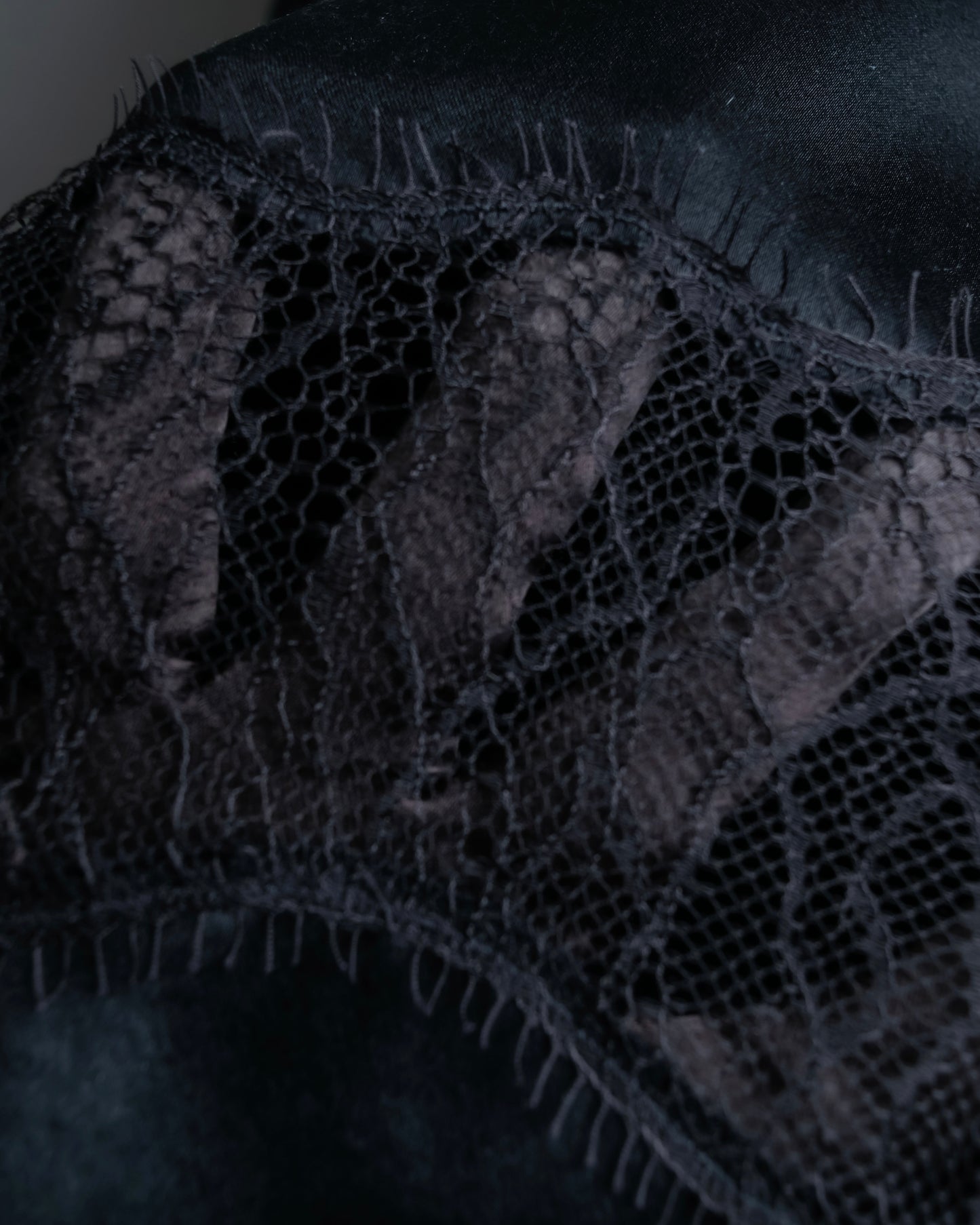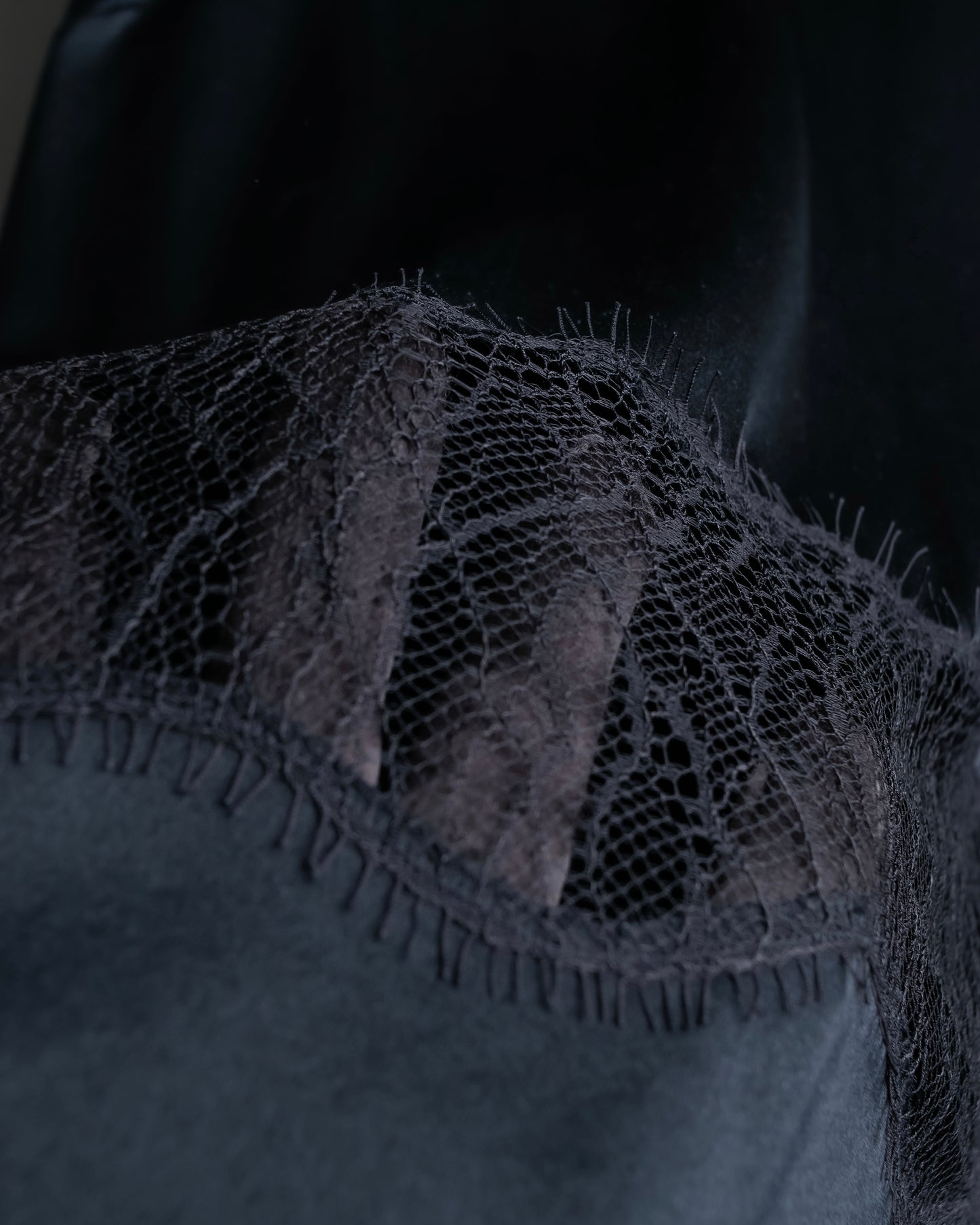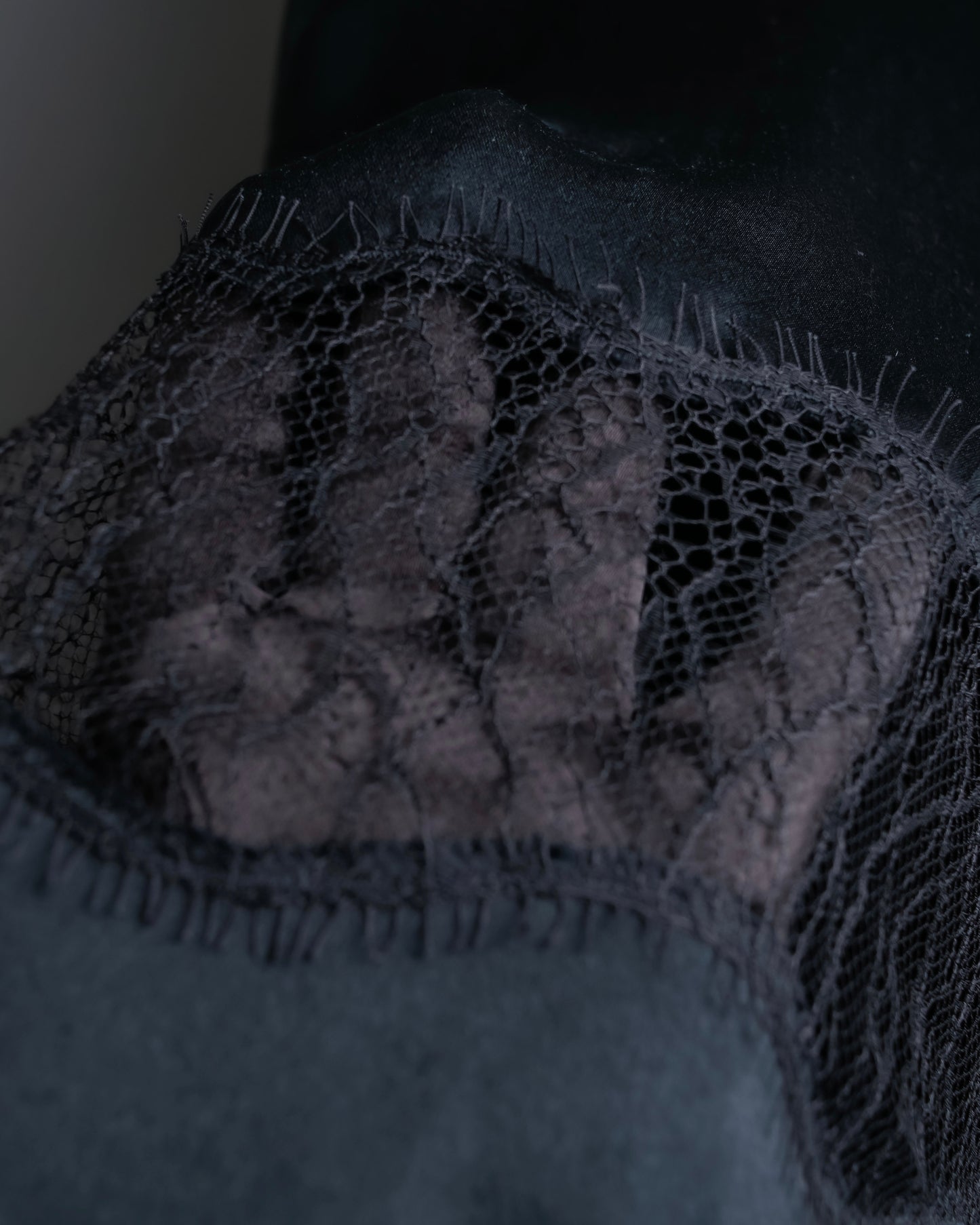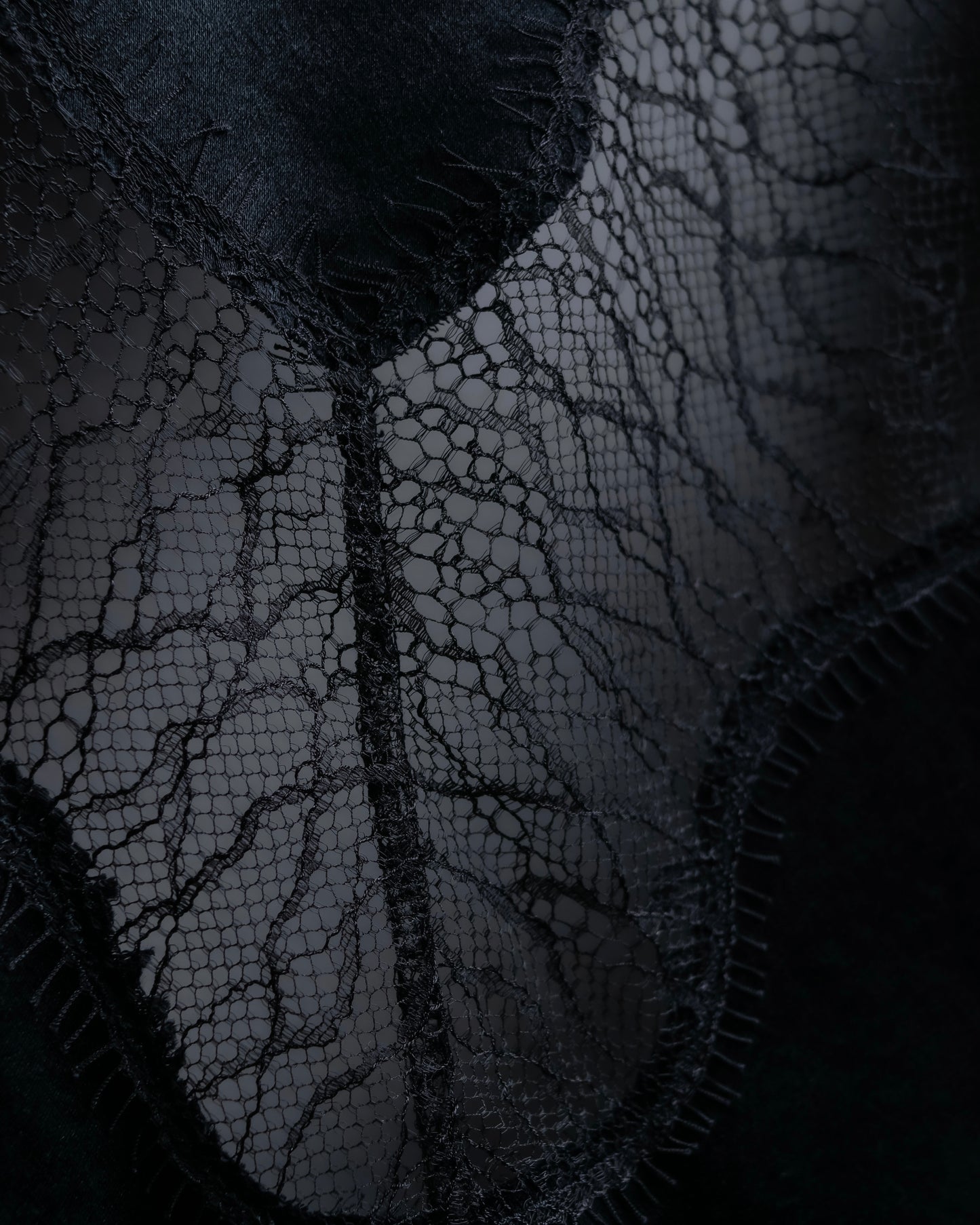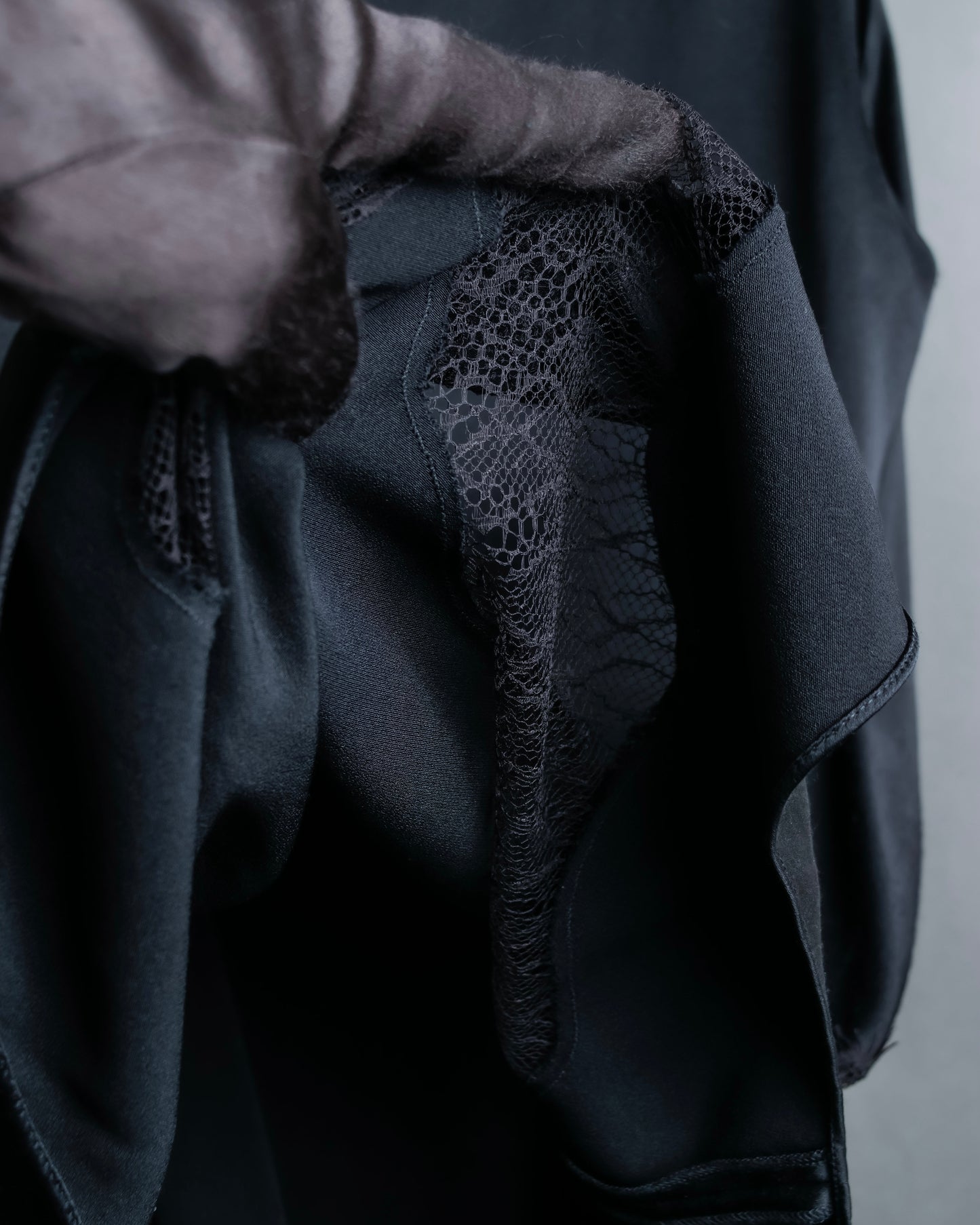 なっており、よりモードな印象を感じさせ、腰まわり部分にはレース生地に切り替わっているエンブロイダリーデザインとなっている為、細部までこだわりぬかれた