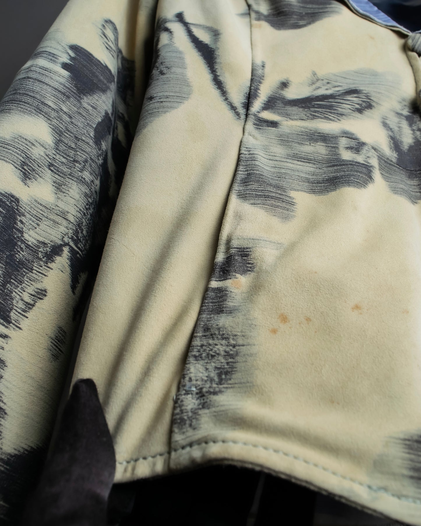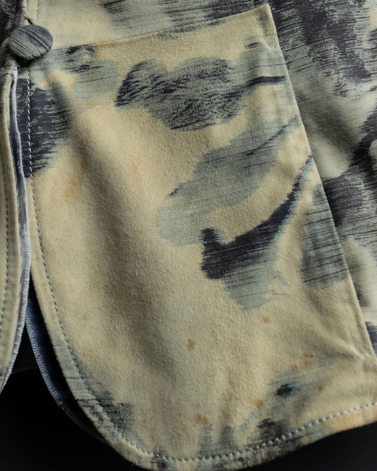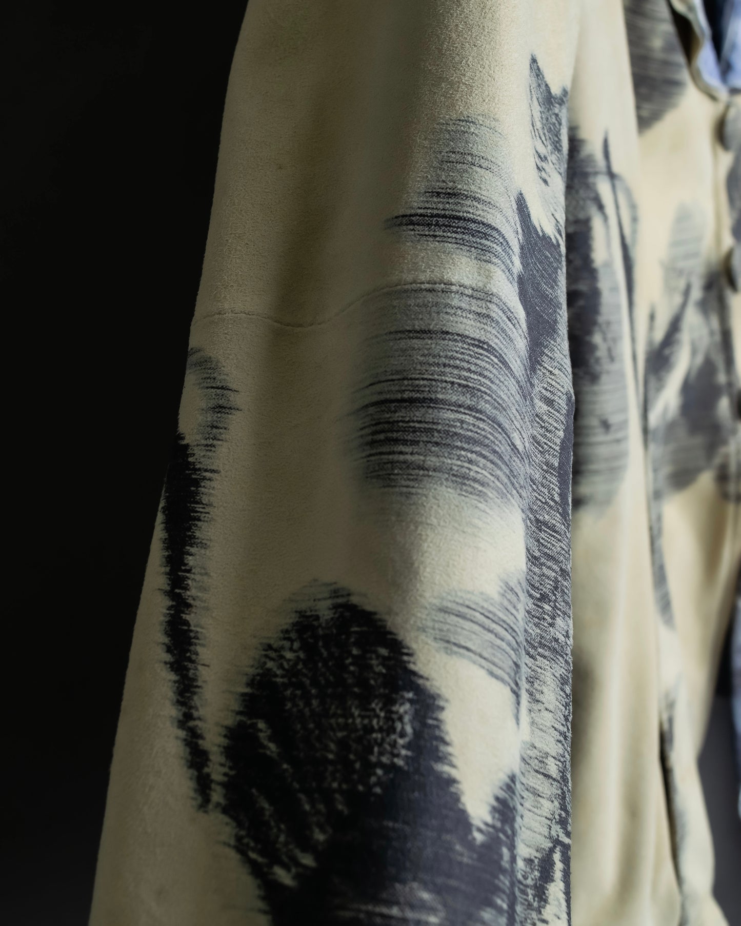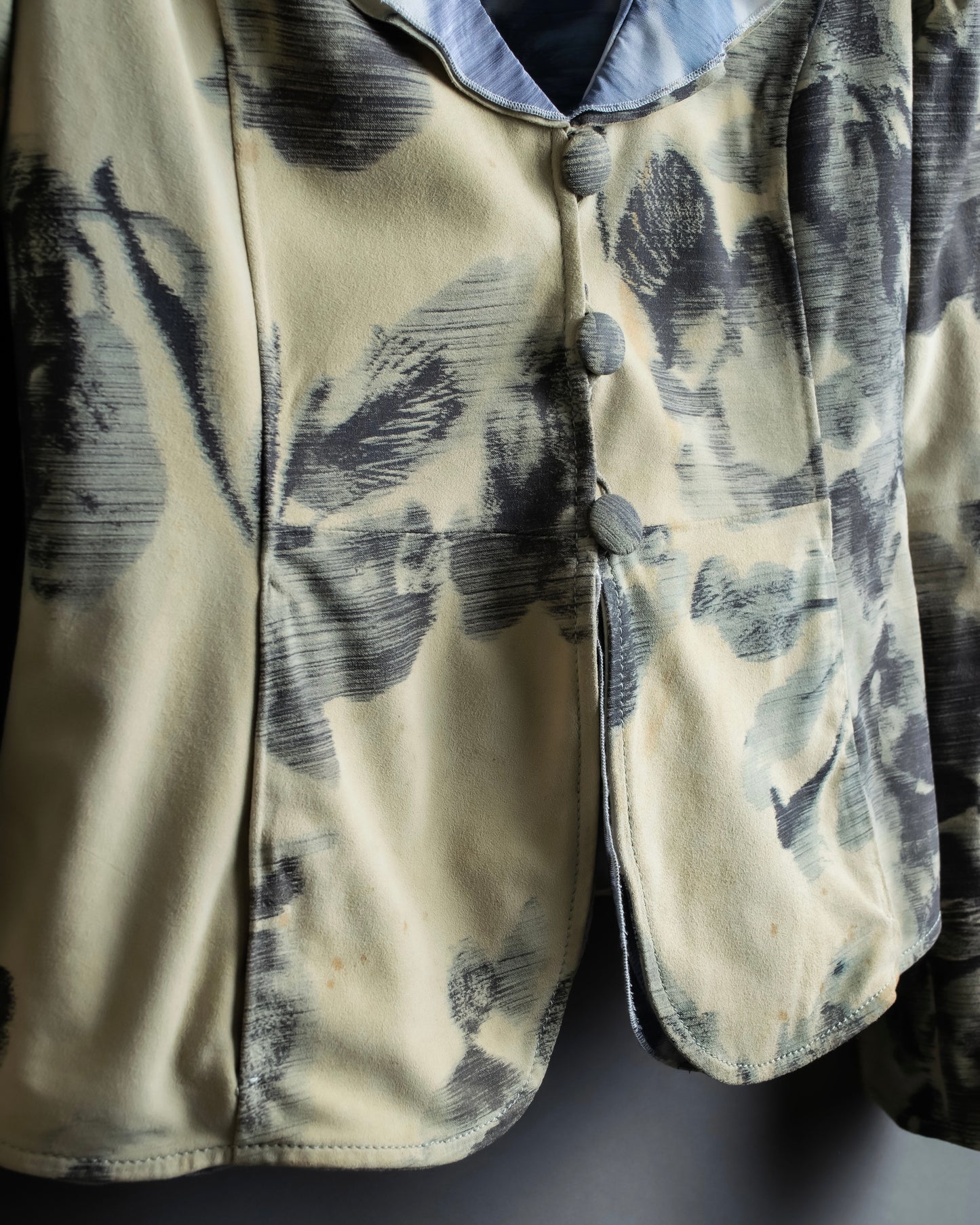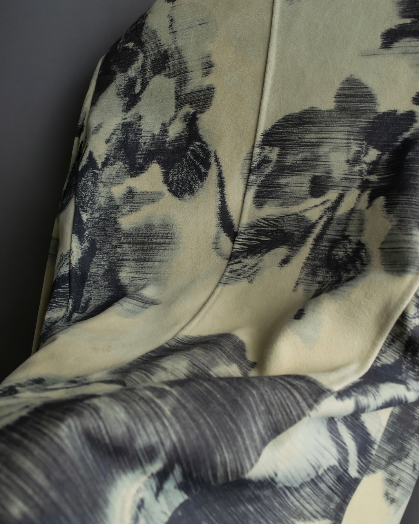 水墨画でぼかしたようなボタニカル柄となっており大変珍しいこちらの柄使いはジャケットのディテールと