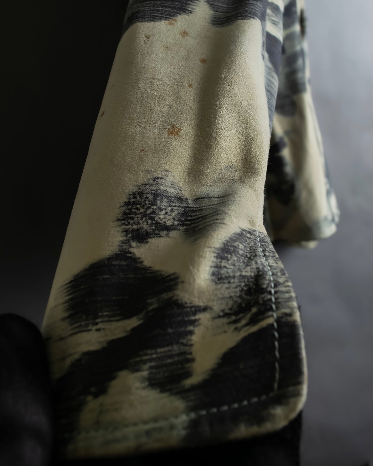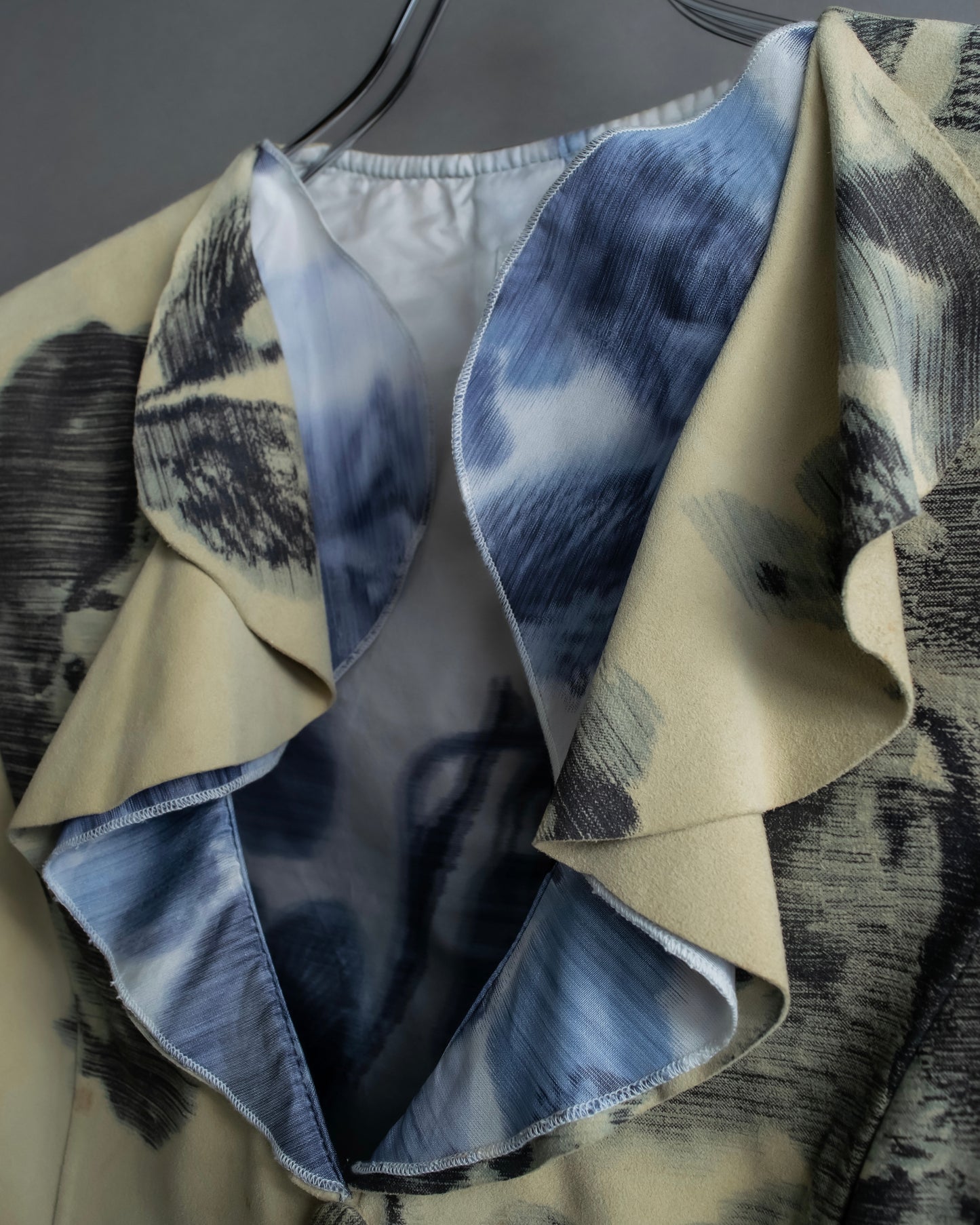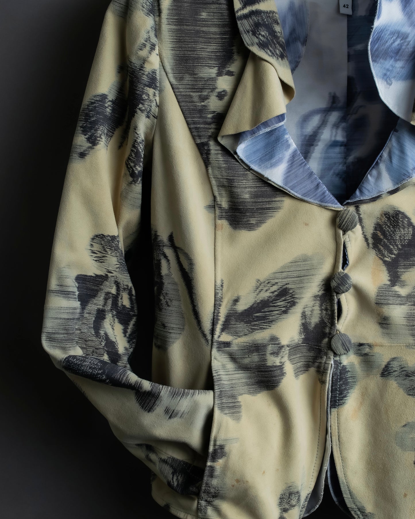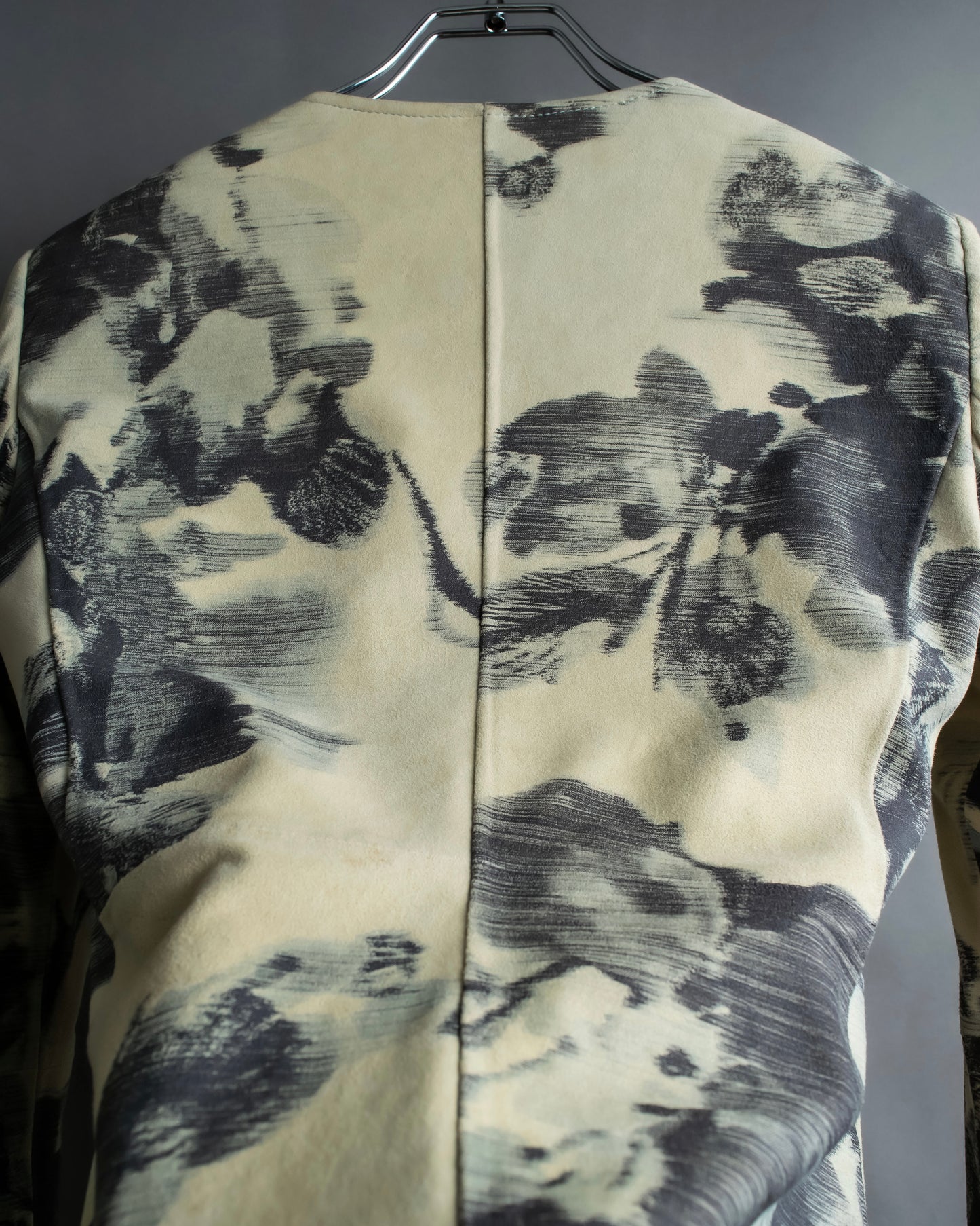 水墨画でぼかしたようなボタニカル柄となっており大変珍しいこちらの柄使いはジャケットのディテールと