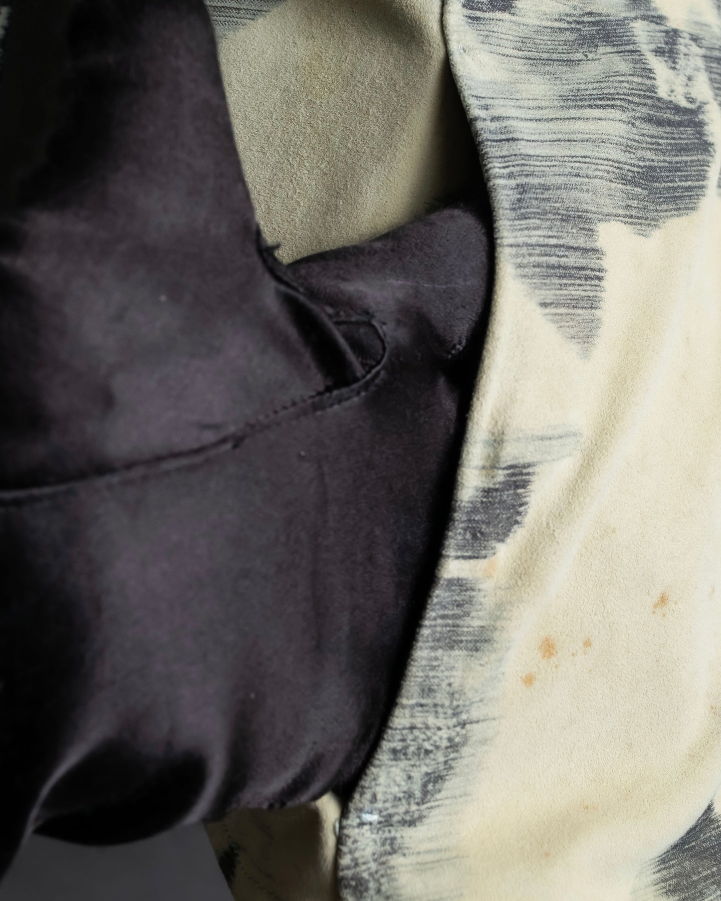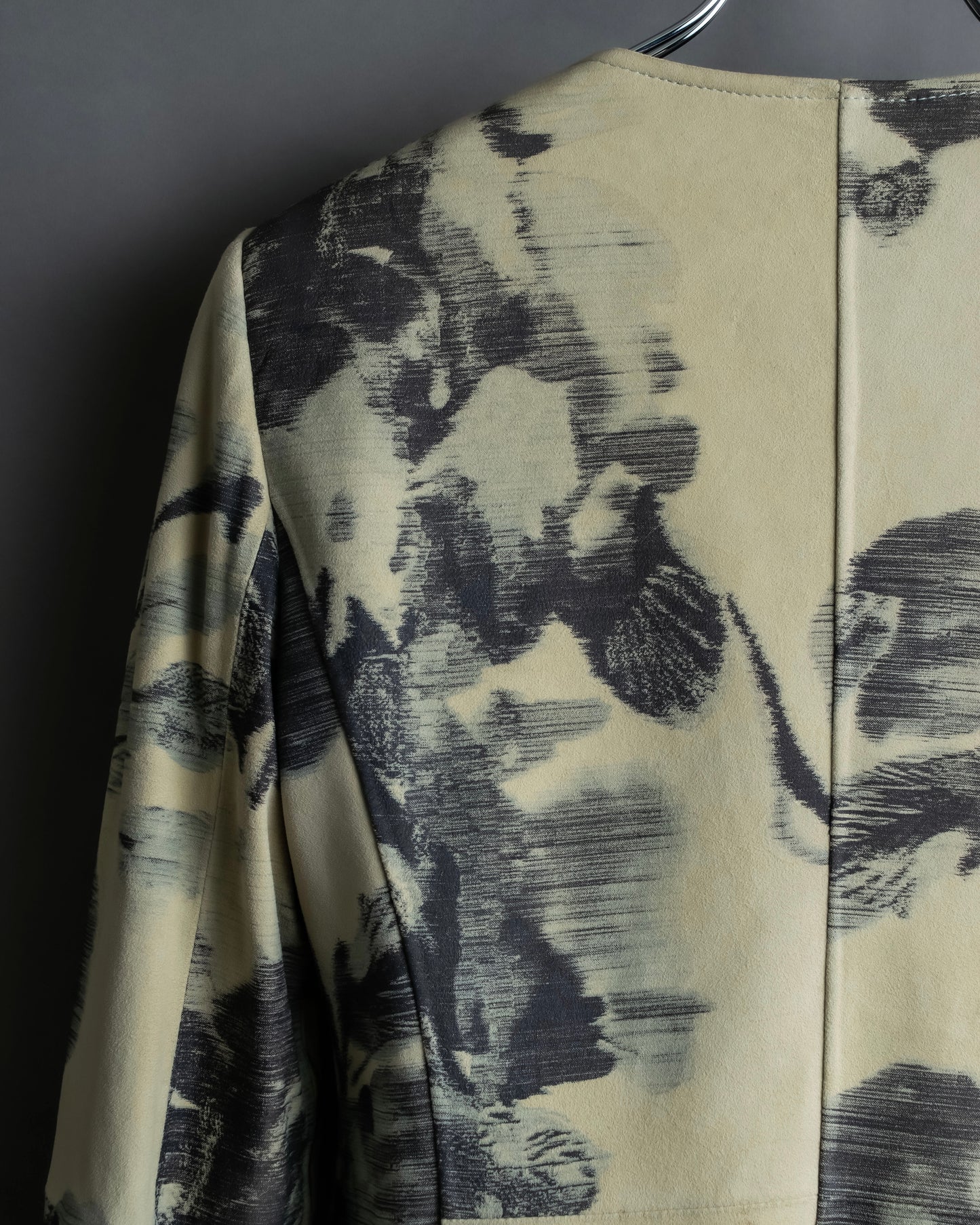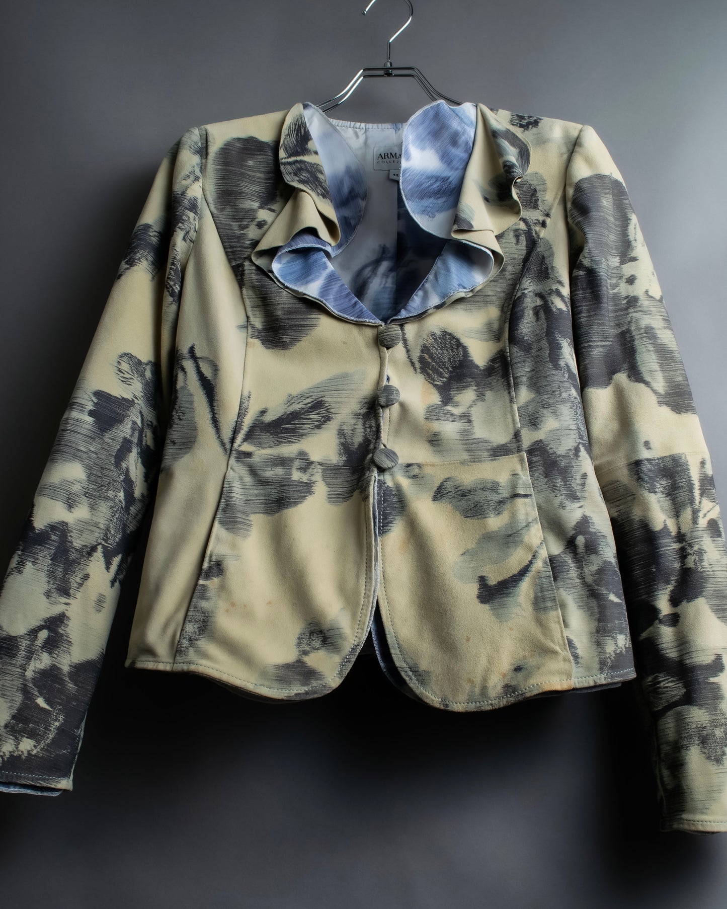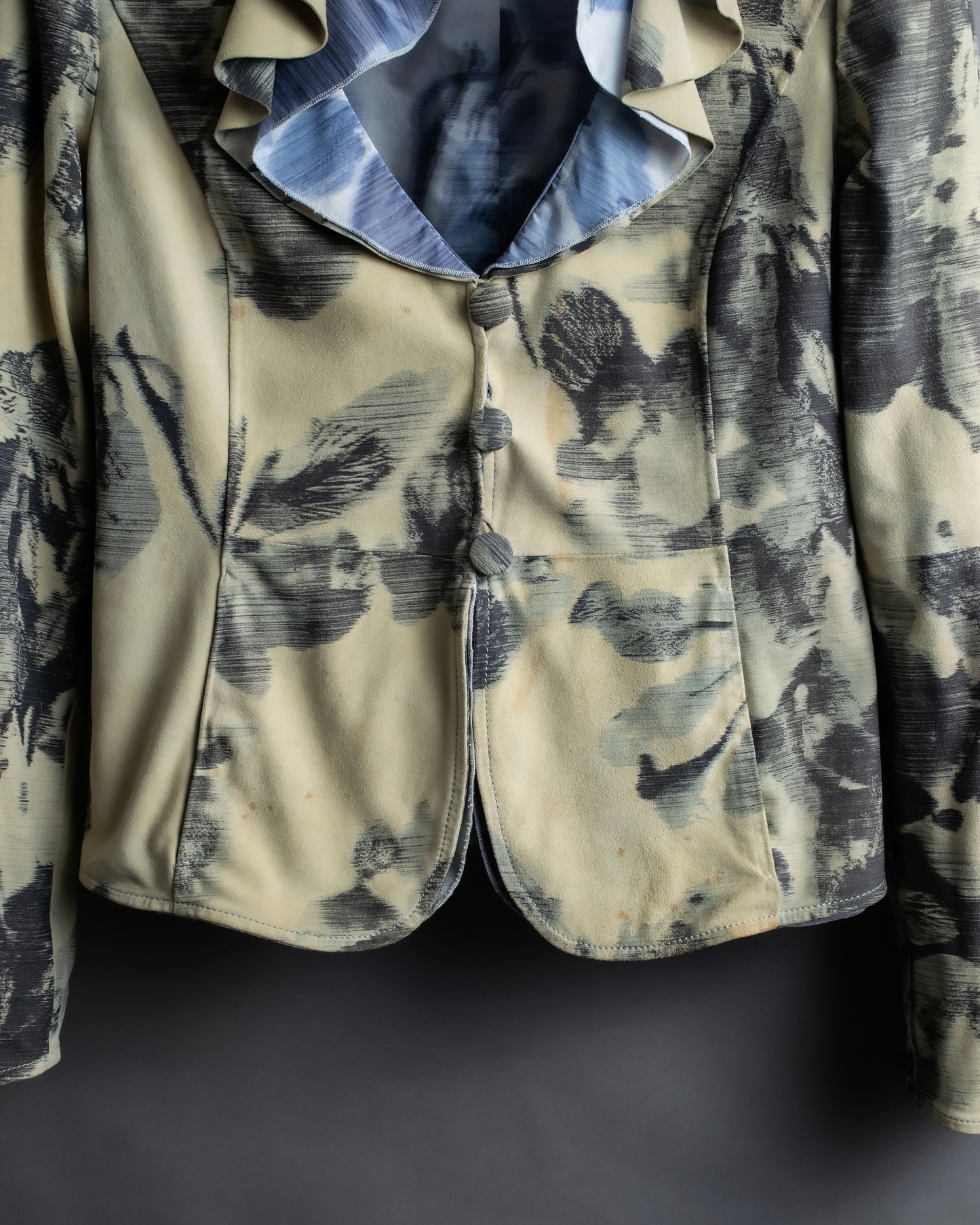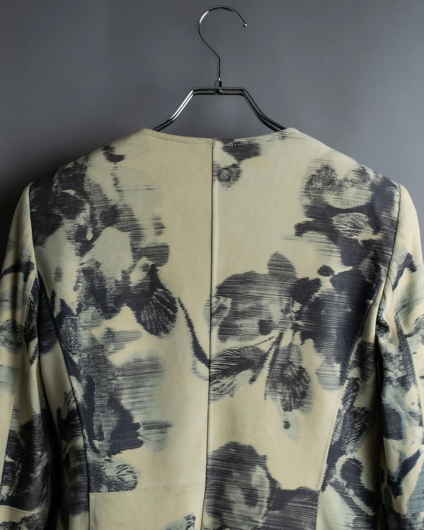 水墨画でぼかしたようなボタニカル柄となっており大変珍しいこちらの柄使いはジャケットのディテールと