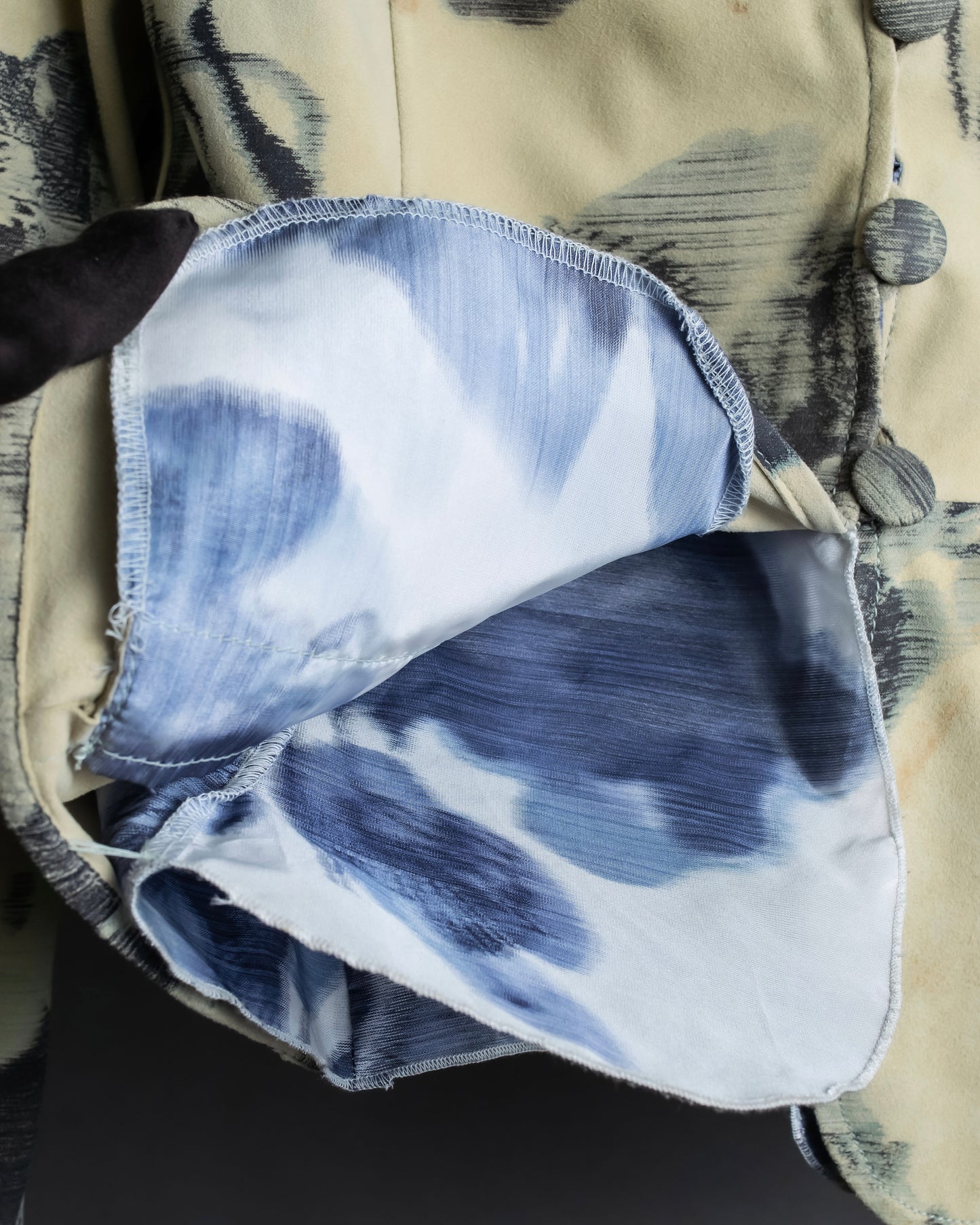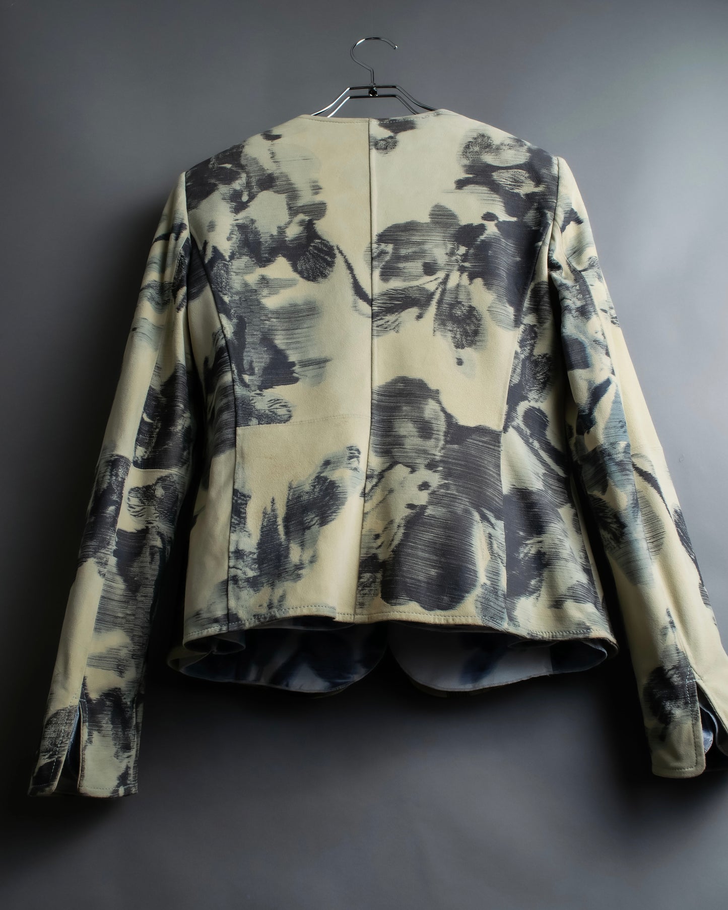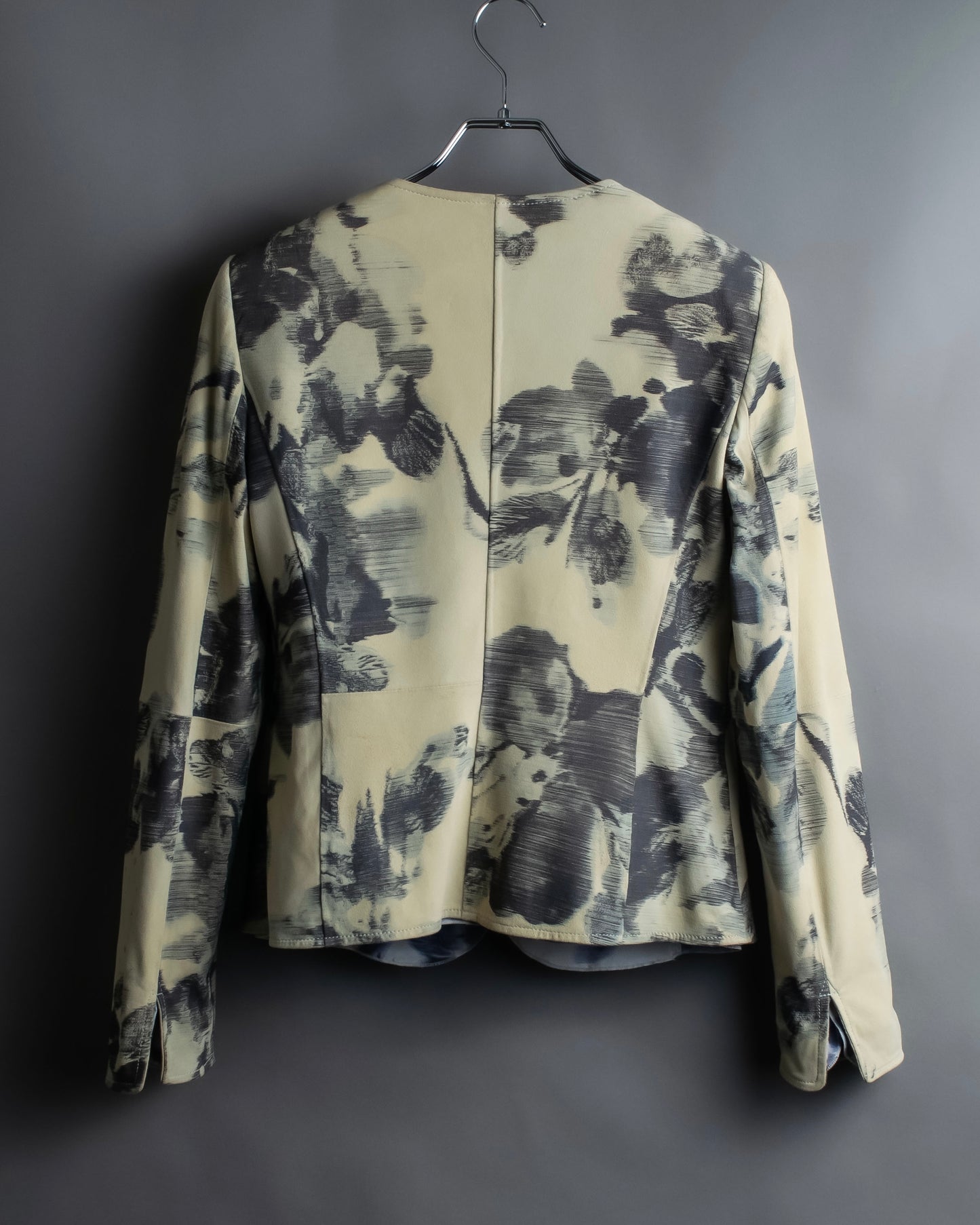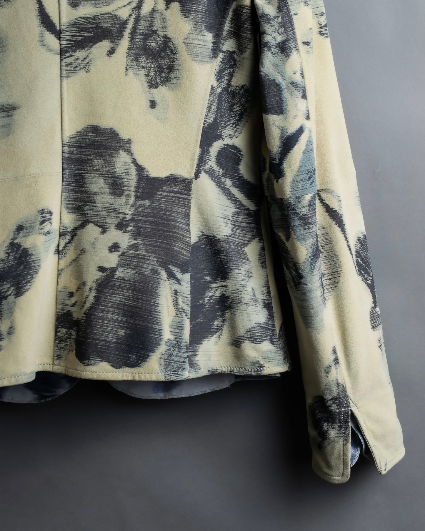 水墨画でぼかしたようなボタニカル柄となっており大変珍しいこちらの柄使いはジャケットのディテールと