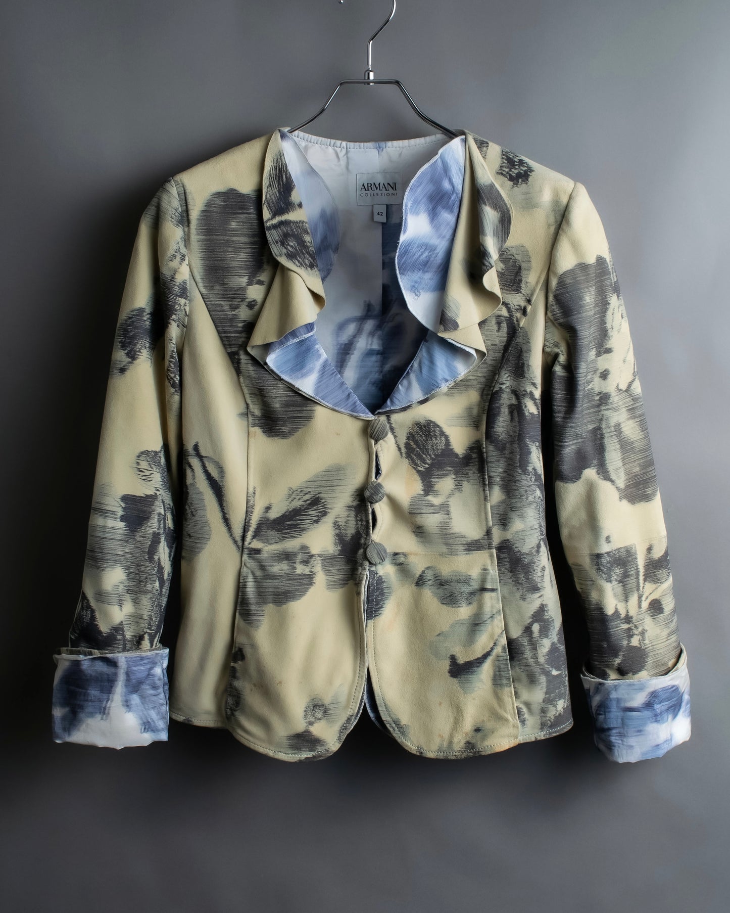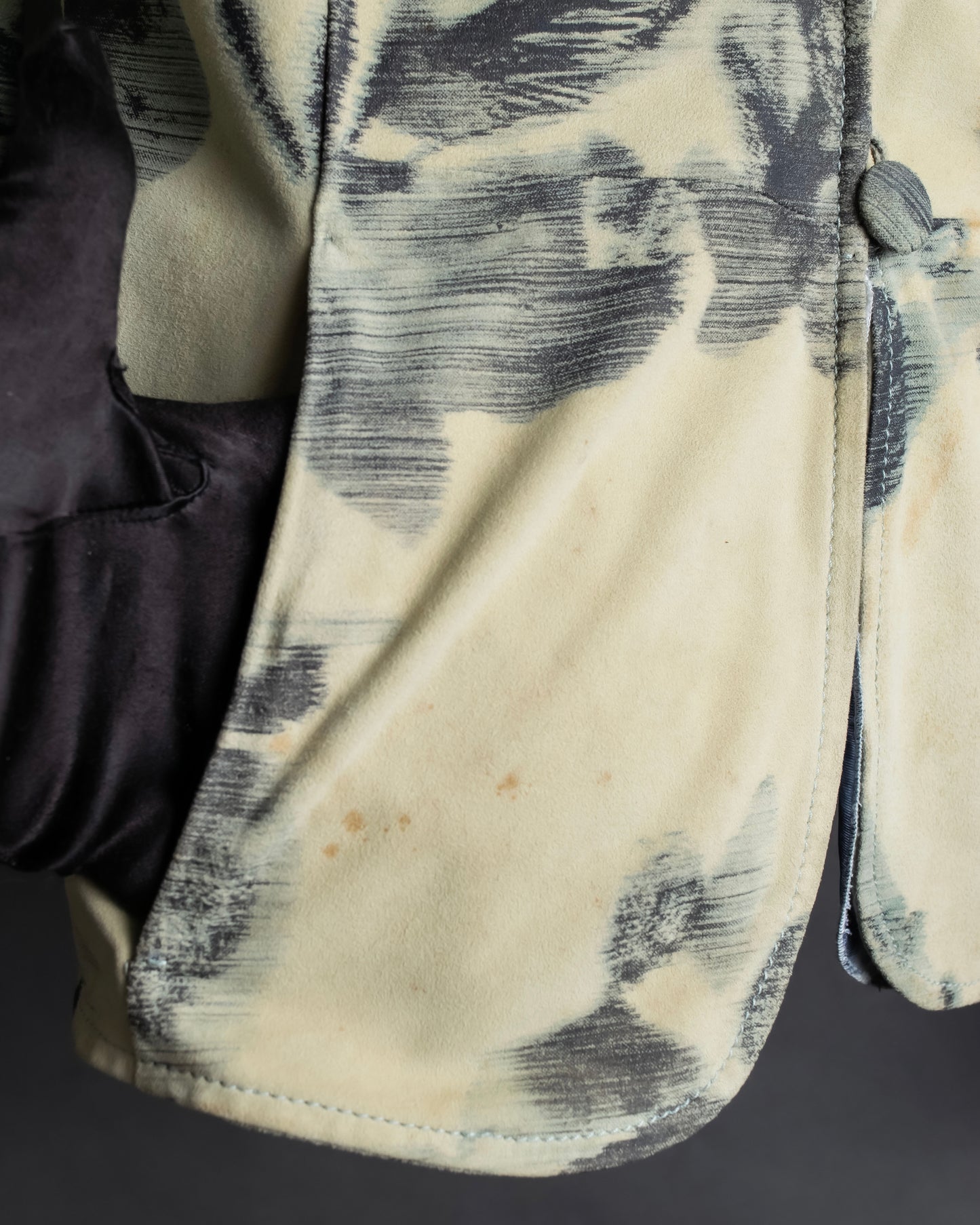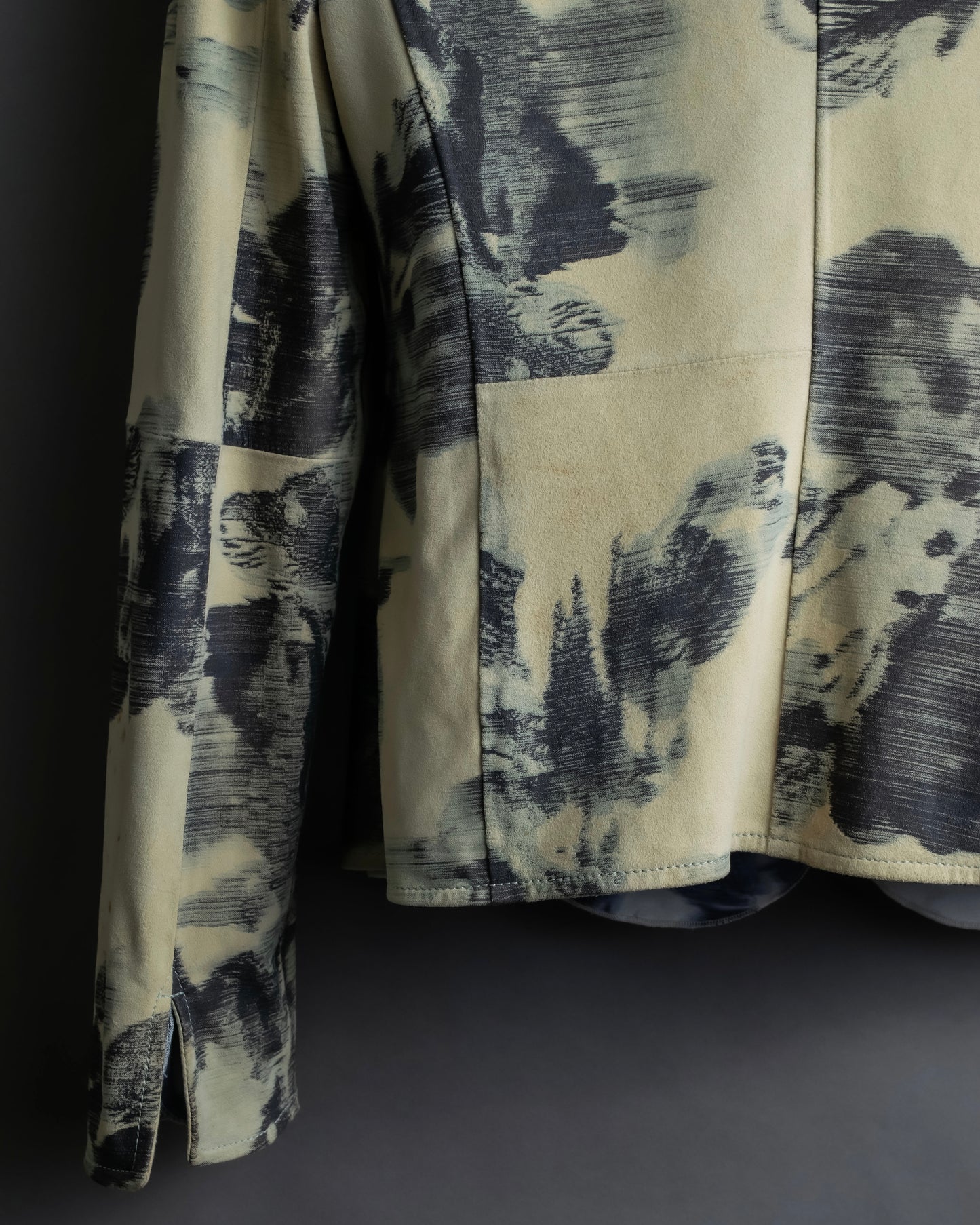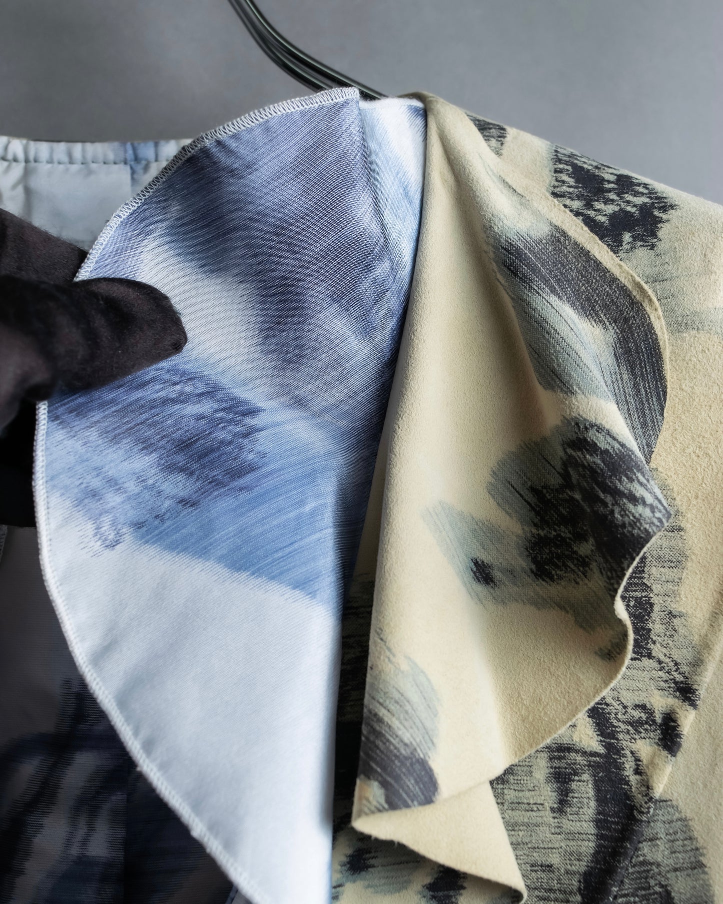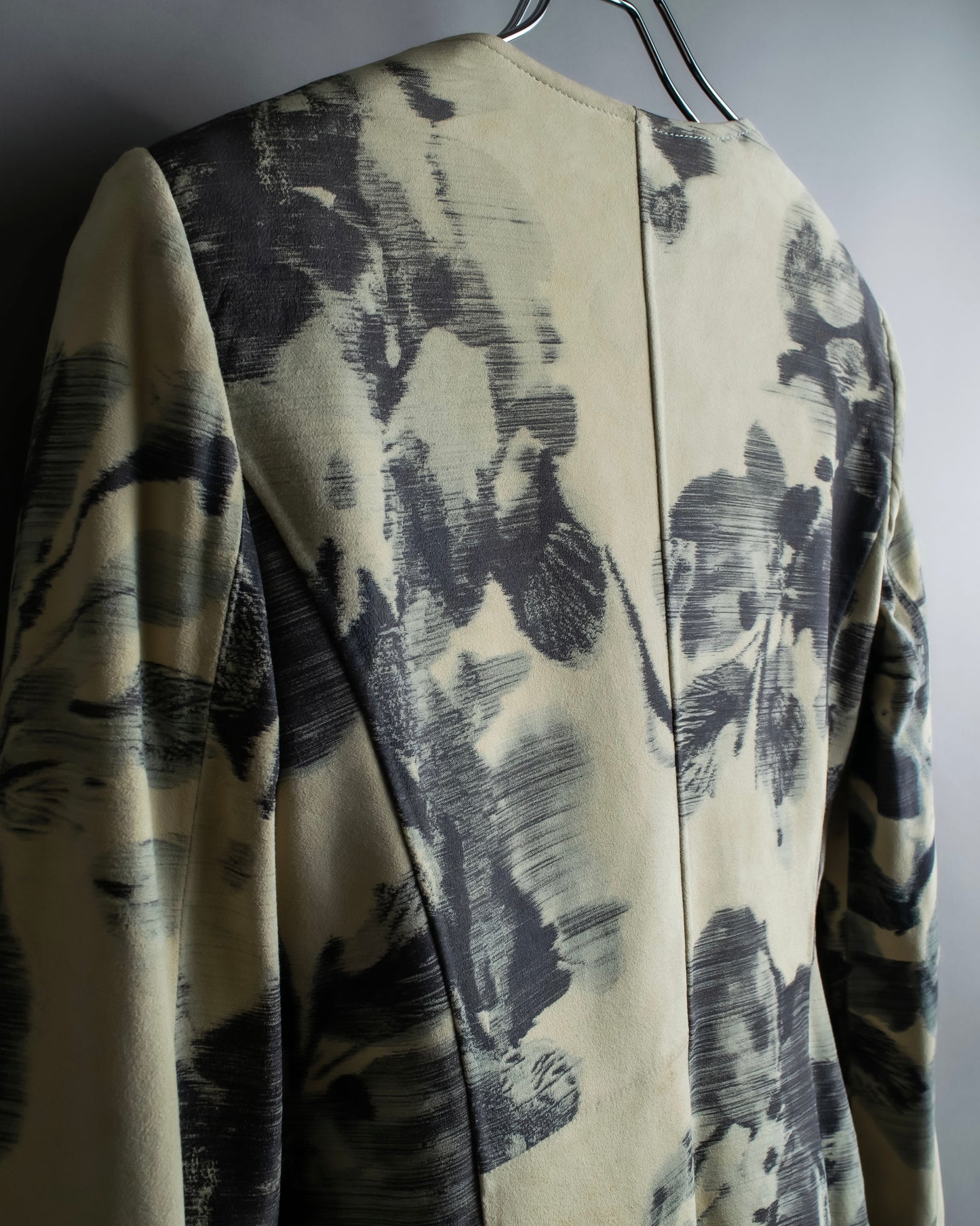 水墨画でぼかしたようなボタニカル柄となっており大変珍しいこちらの柄使いはジャケットのディテールと