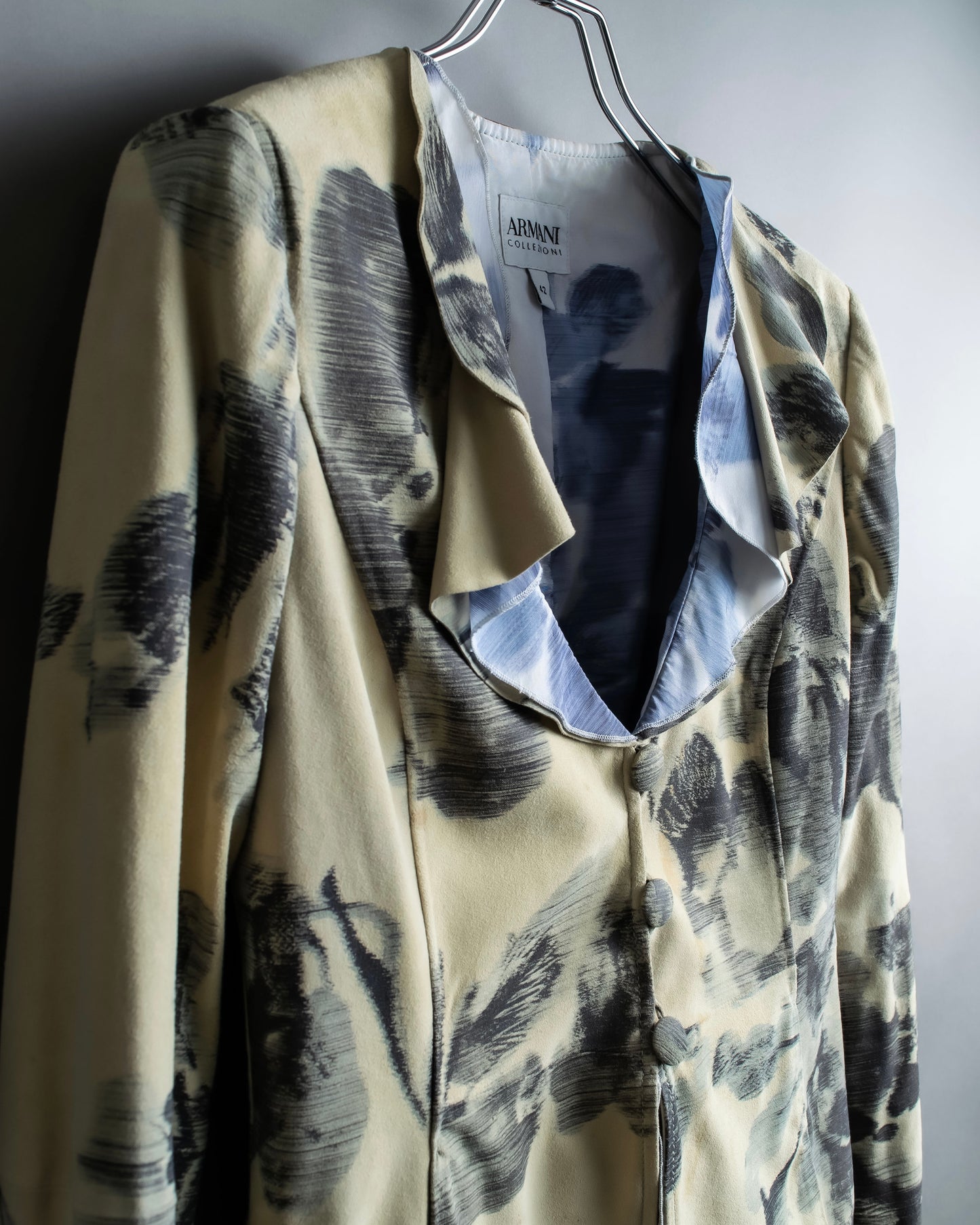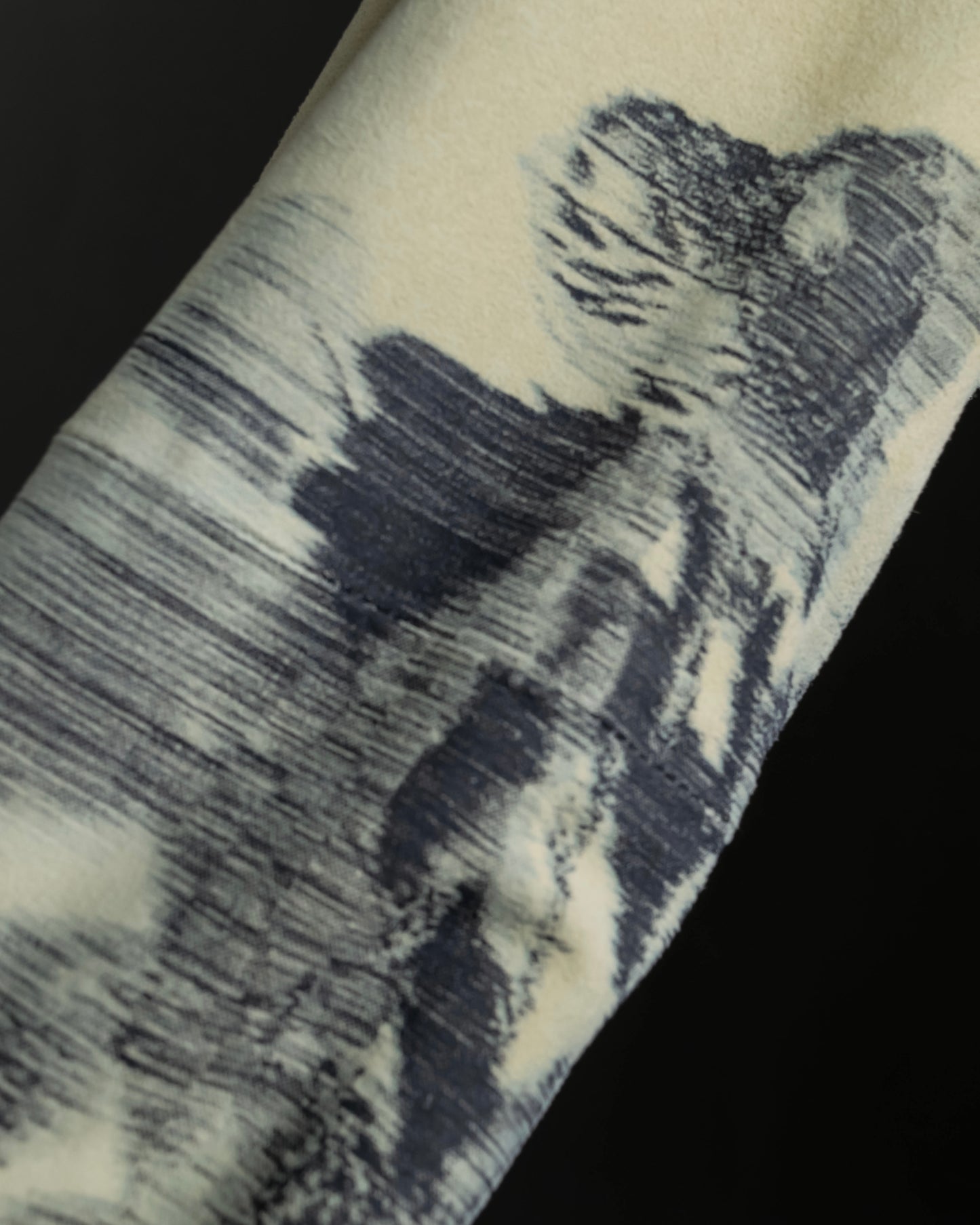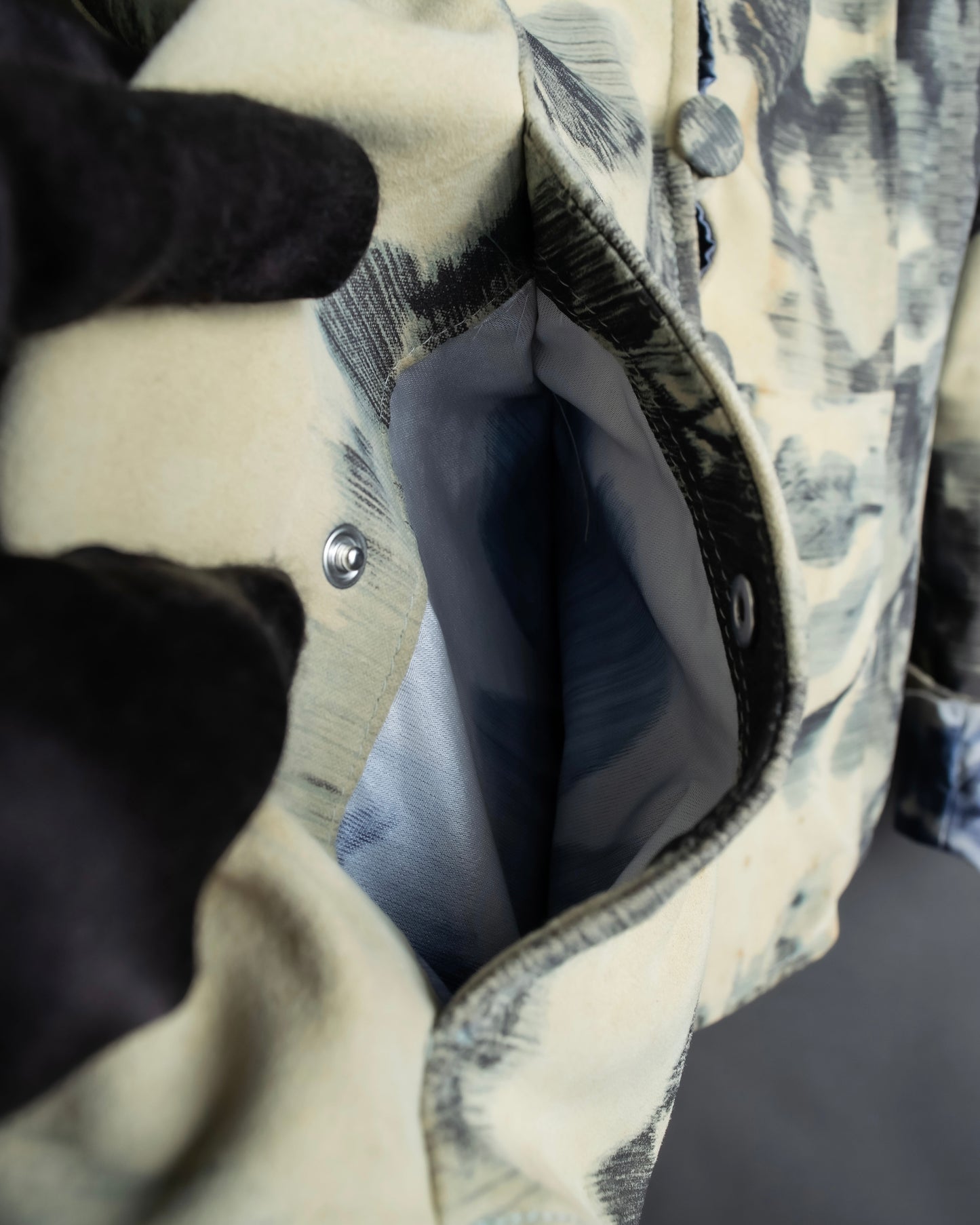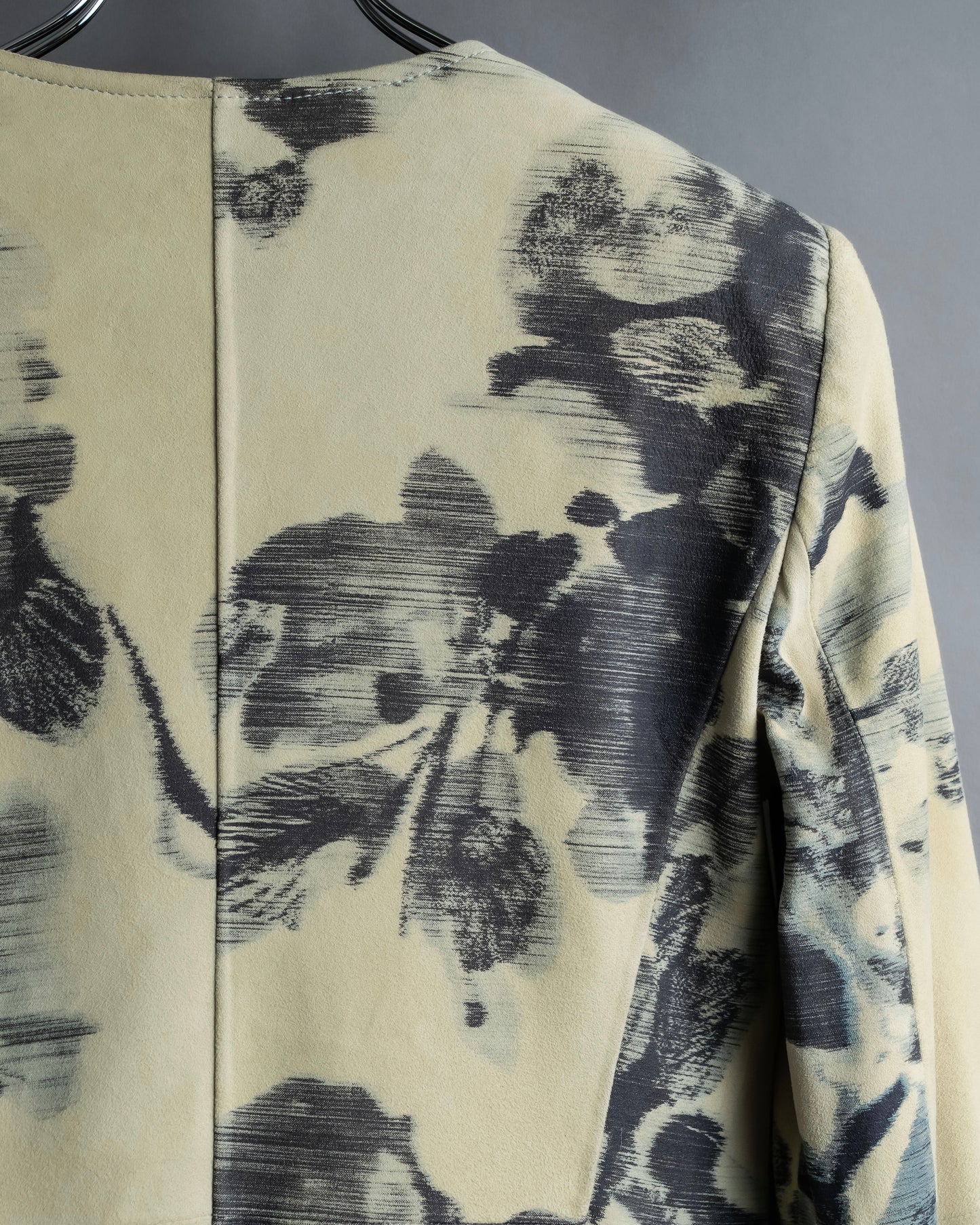 水墨画でぼかしたようなボタニカル柄となっており大変珍しいこちらの柄使いはジャケットのディテールと