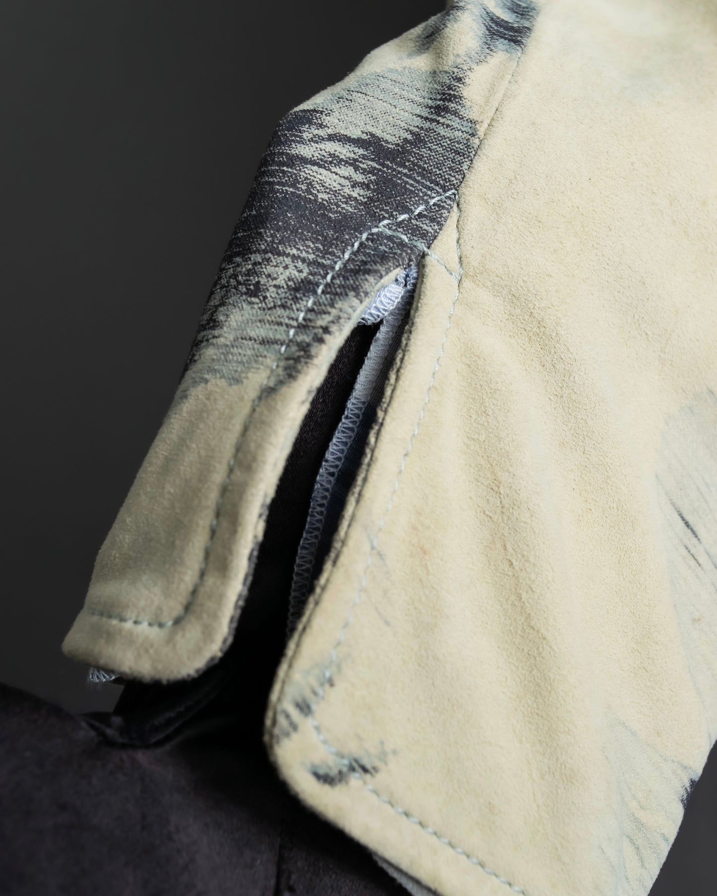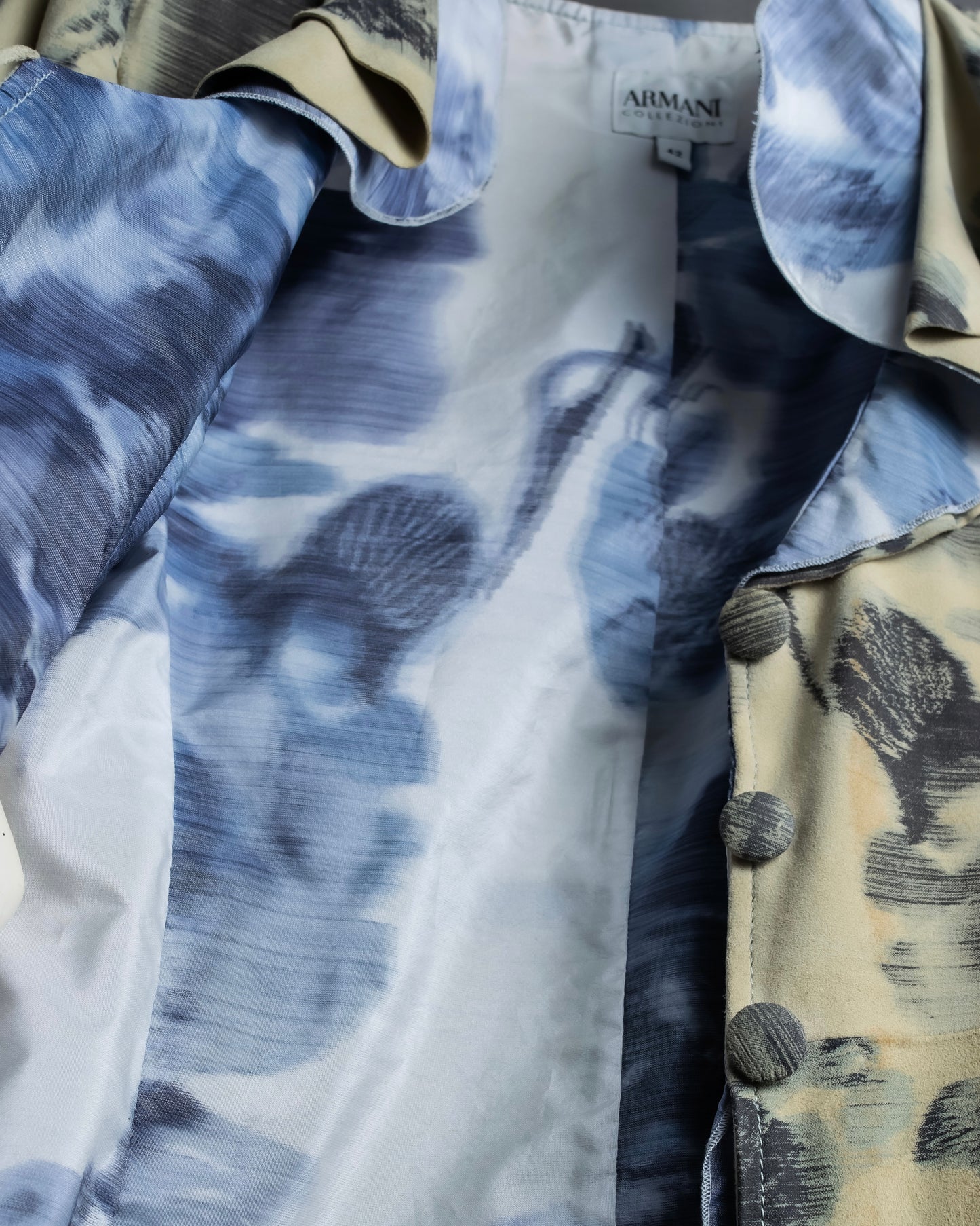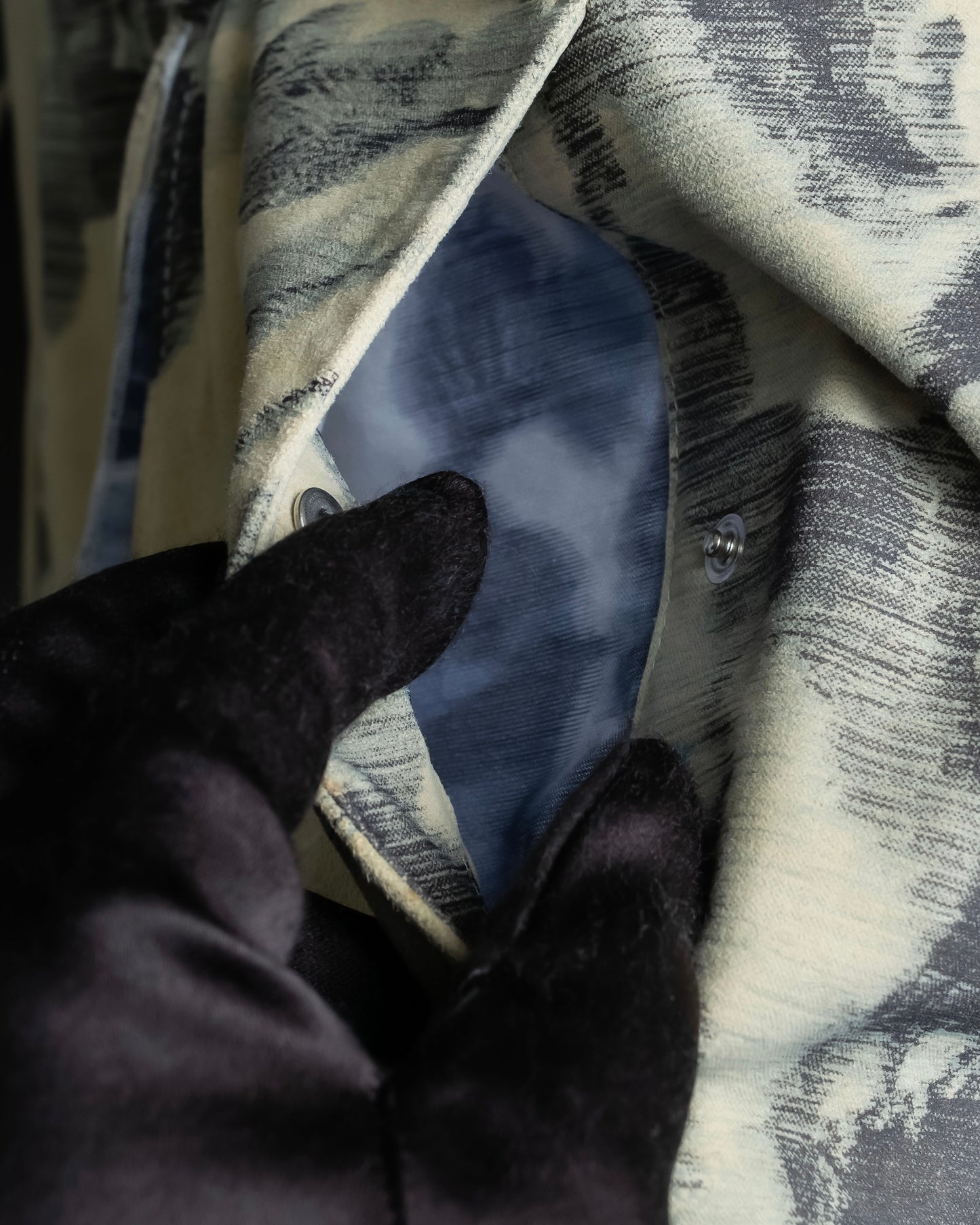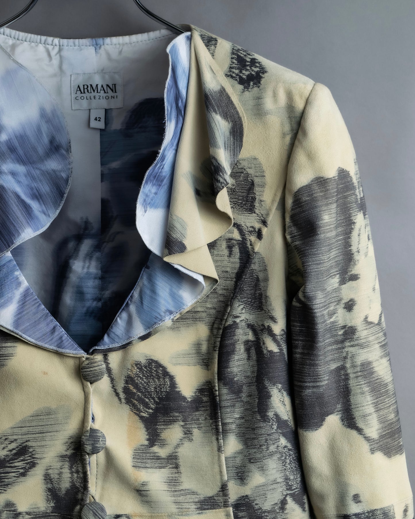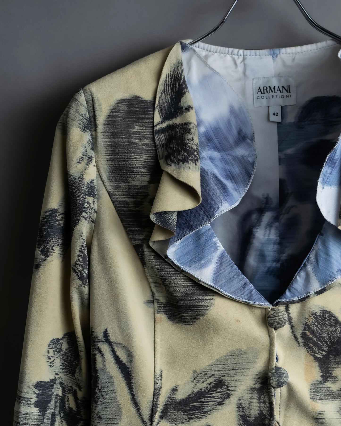 水墨画でぼかしたようなボタニカル柄となっており大変珍しいこちらの柄使いはジャケットのディテールと
