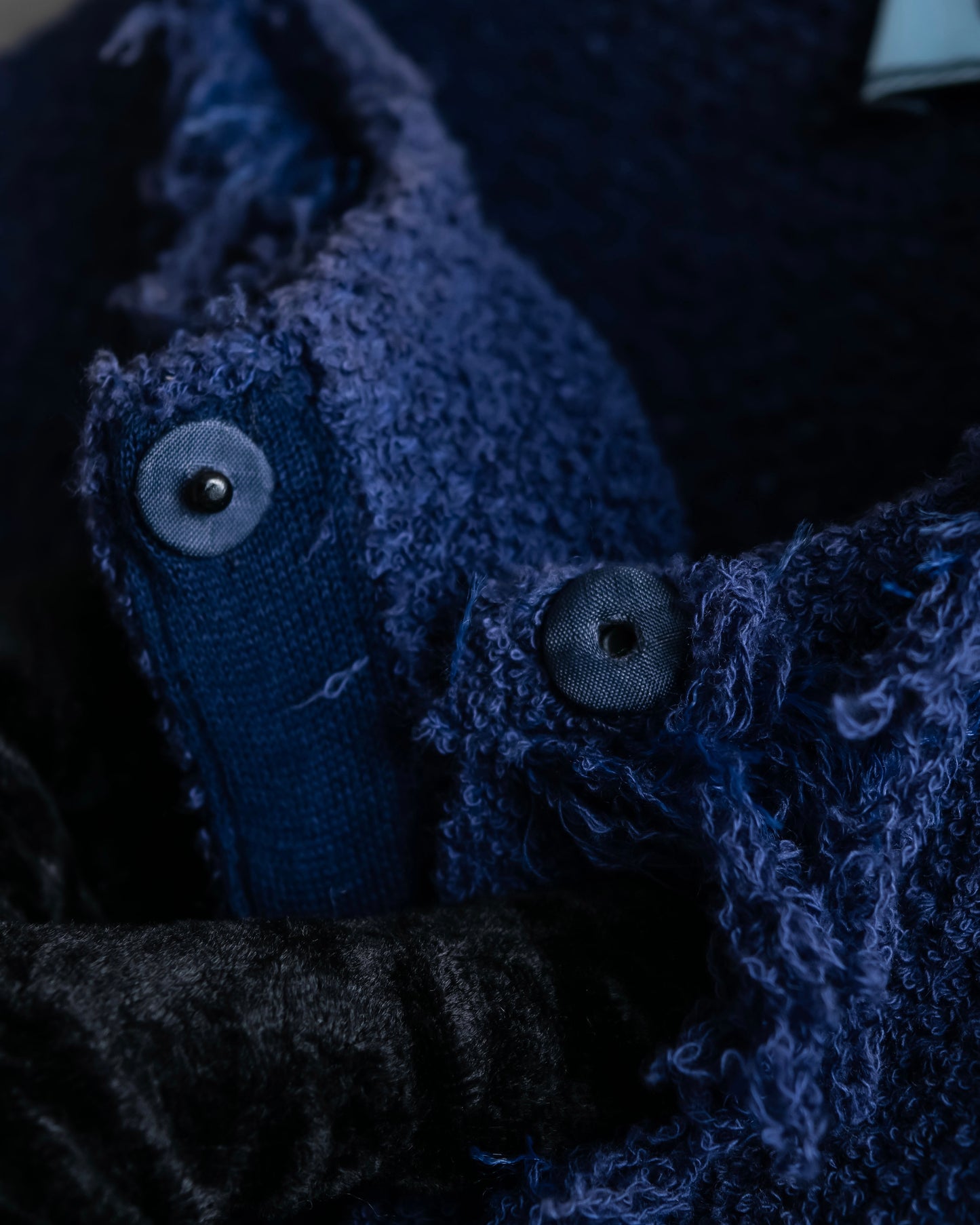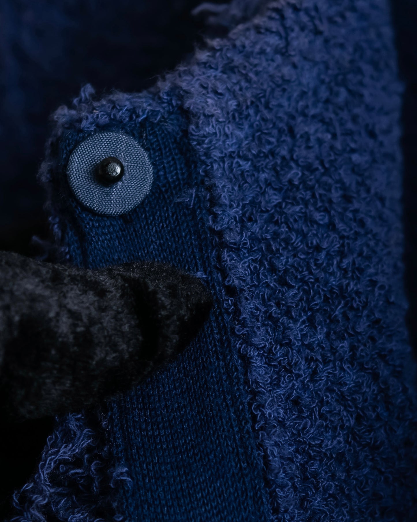 スタイリングとしては、インナーにバンドTシャツを着て頂き、ボトムスにはダメージの入ったデニムパンツを合わせることで、生み出させれるグランジテイストな風合いをこちらの逸品が持つネイビーのお色味で上品にまとめたスタイリングを推奨しております。
