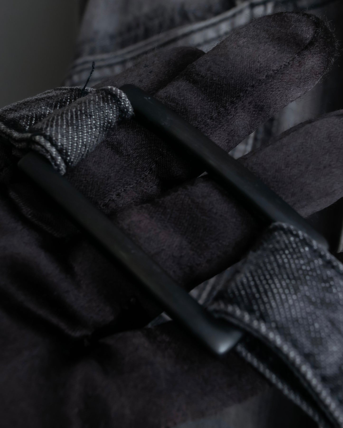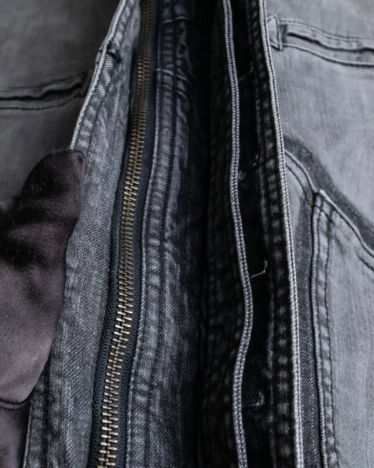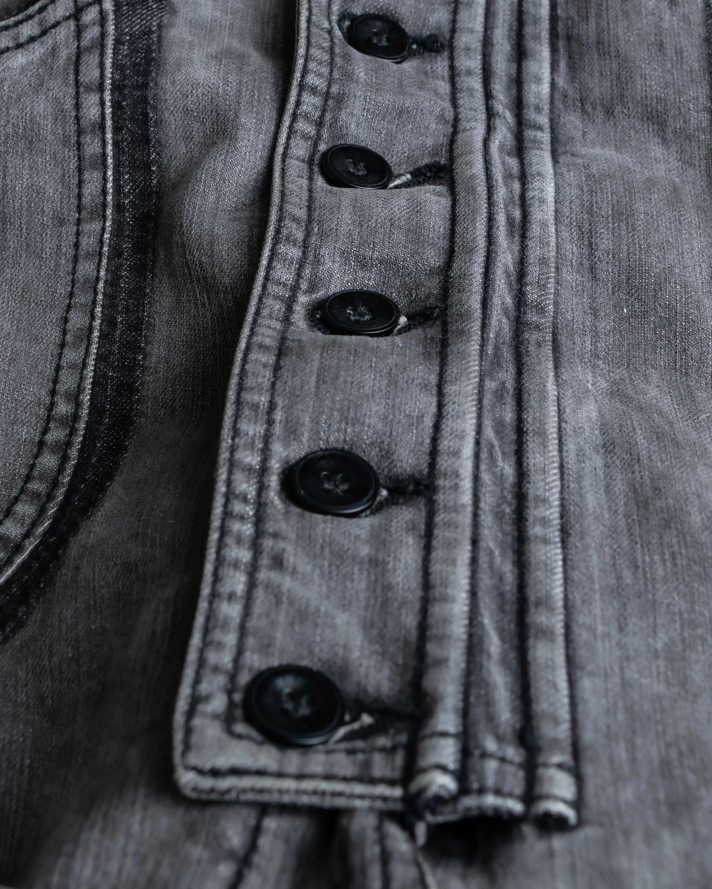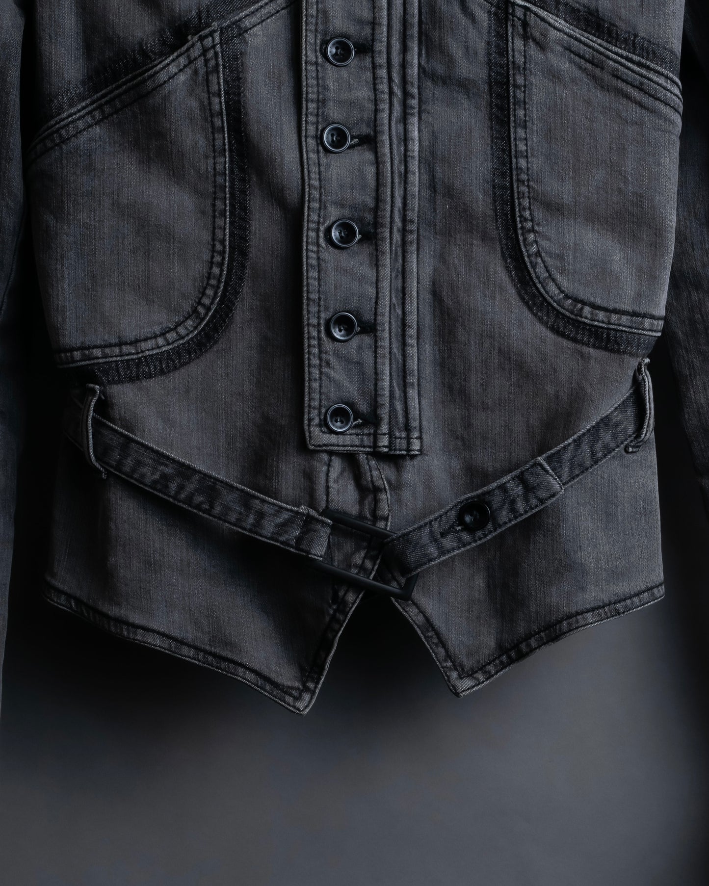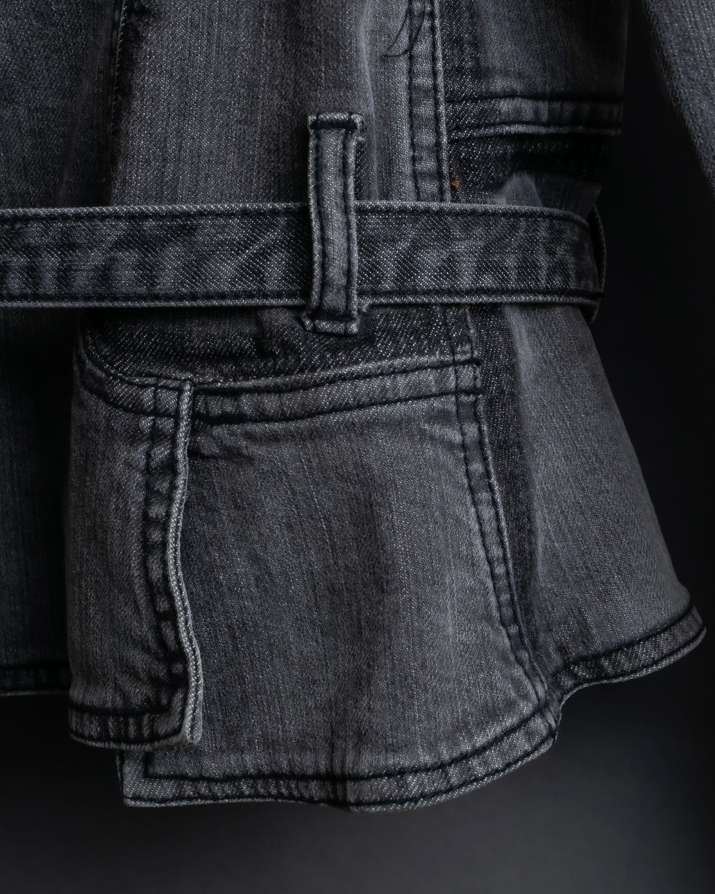 デザインが細部にまで施されている一方で、ポリウレタンの中でも伸縮性に極めて富んでいるスパンデックスを混紡したデニム素材となっている為、デニムならではの風合いはしっかりと感じられつつも着心地の良い素材感となっております。